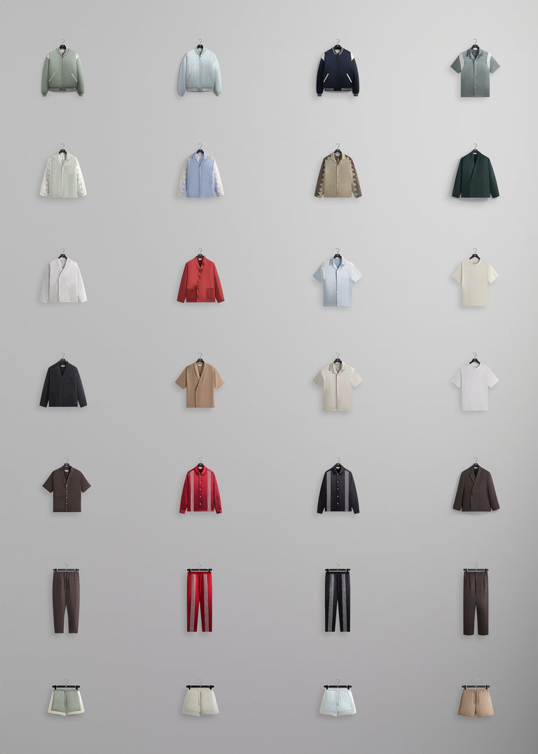 Set dressing defined by ease and versatility—from colorblocked styles like the Vance Satin Bomber and Dylan Short to solid executions like the Herringbone Linen Thompson Crossover Shirt and Active Short. Each piece is expressed in a range of seasonal hues exclusive to the Kith Summer 2024 Palette.