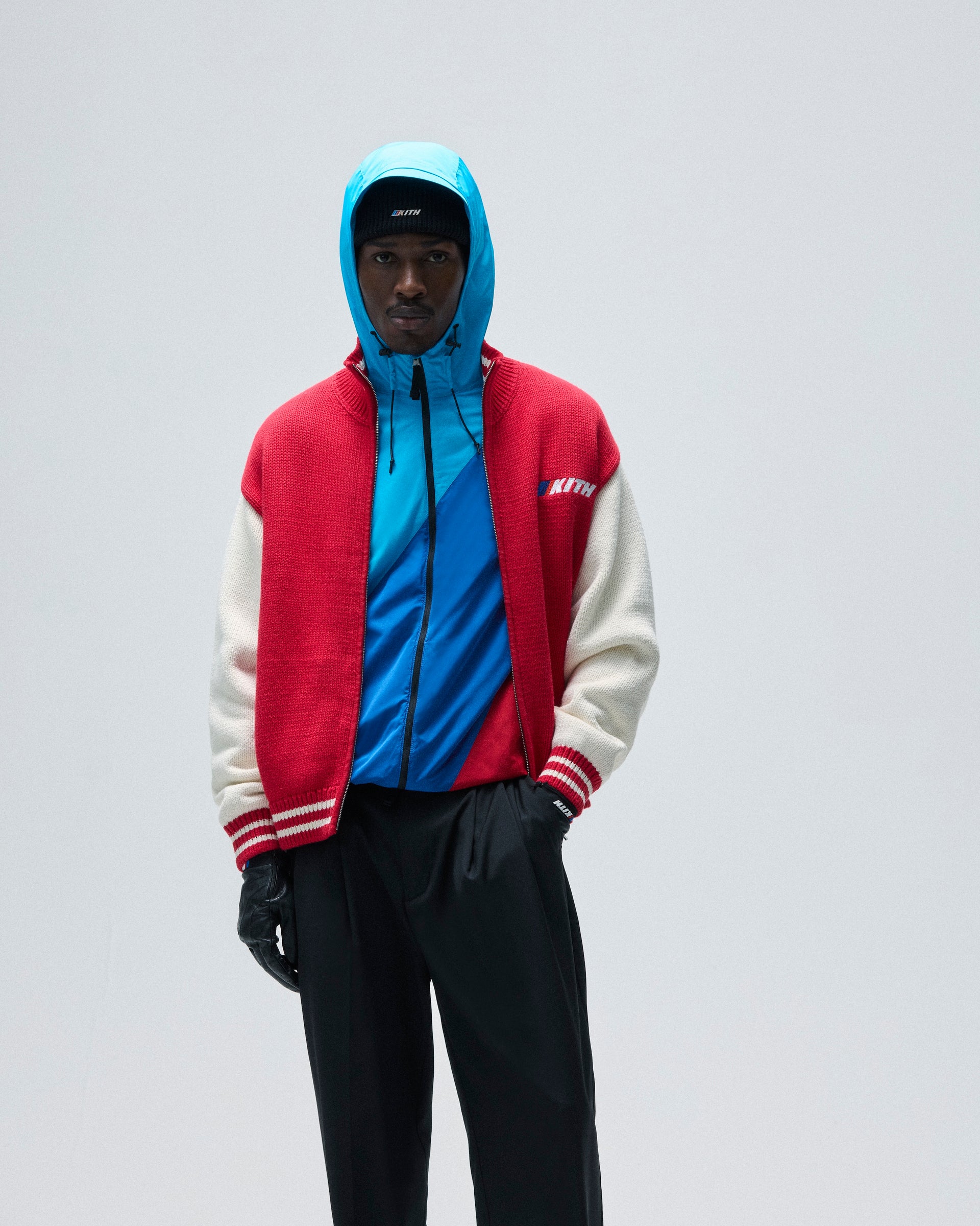 Our sweater silhouettes—like the Wyona Full Zip, Kai Blazer and Mock Neck—feature the Kith M-Series Badge logo with a chainstitch execution. Crafted from ultra-soft viscose yarn & super chunky cotton yarn.