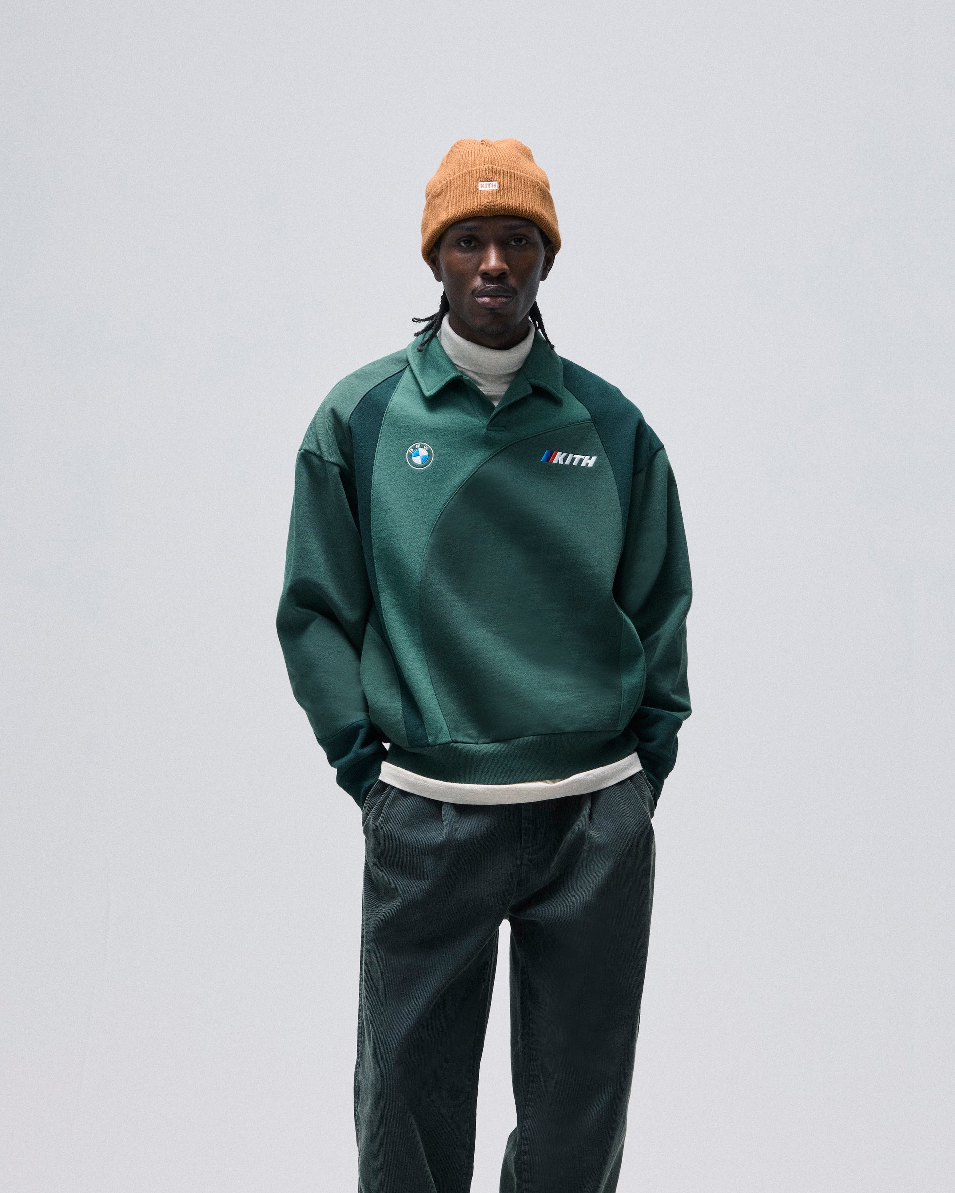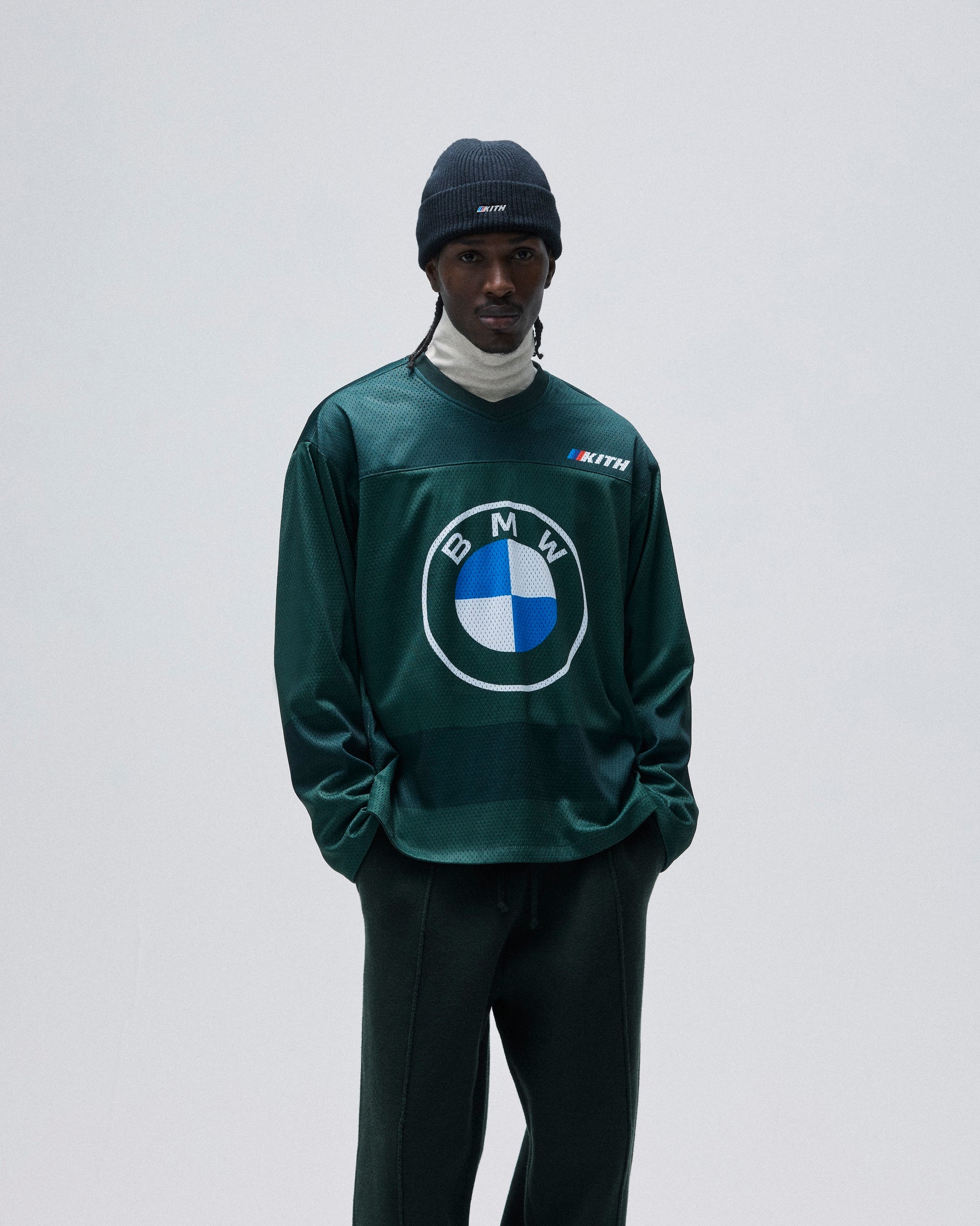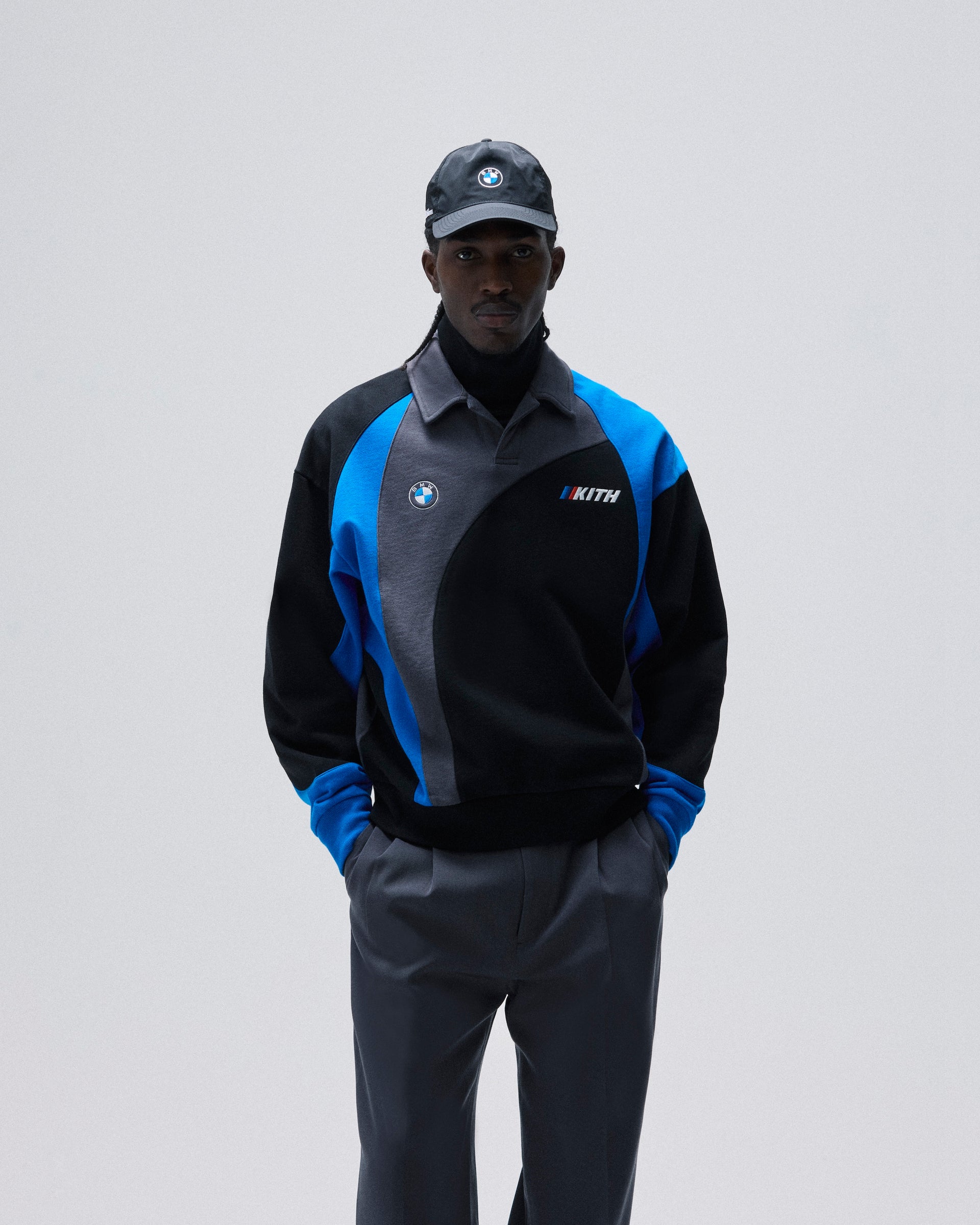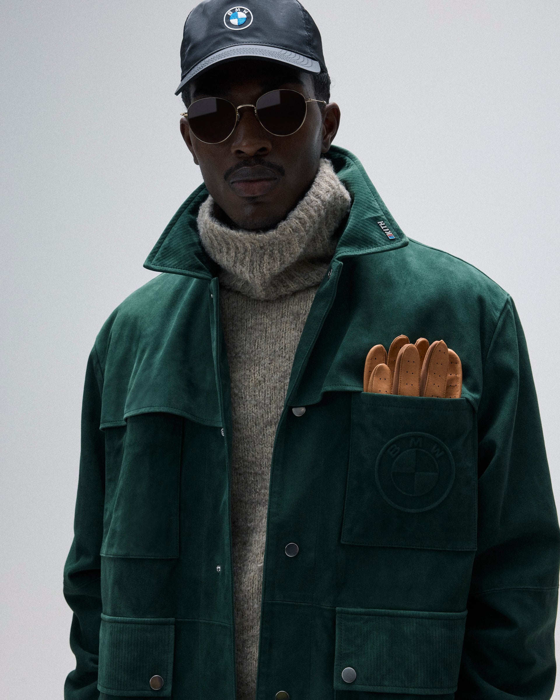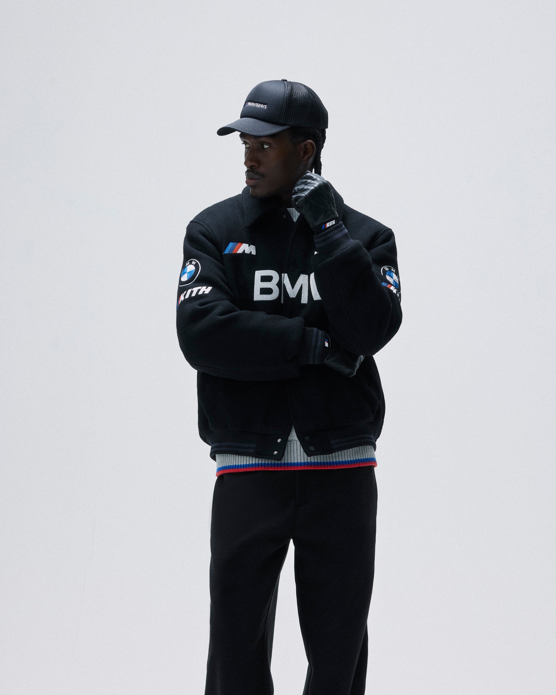 Signature outerwear silhouettes are updated with a variety of Kith for BMW collaborative logos and executed in premium fabrics like Italian lambskin leather, silky suede, and bonded microsuede. Standouts include the iridescent Kieran Coaches Jacket & Leather Hawthorne Flight Jacket.