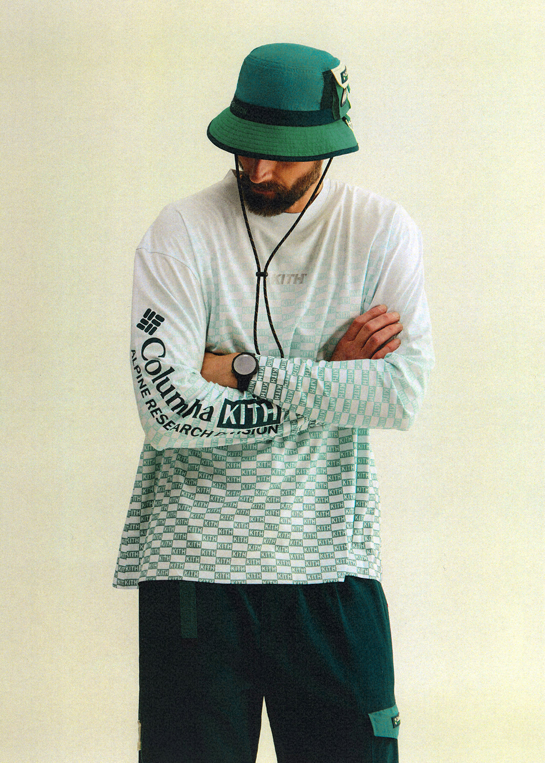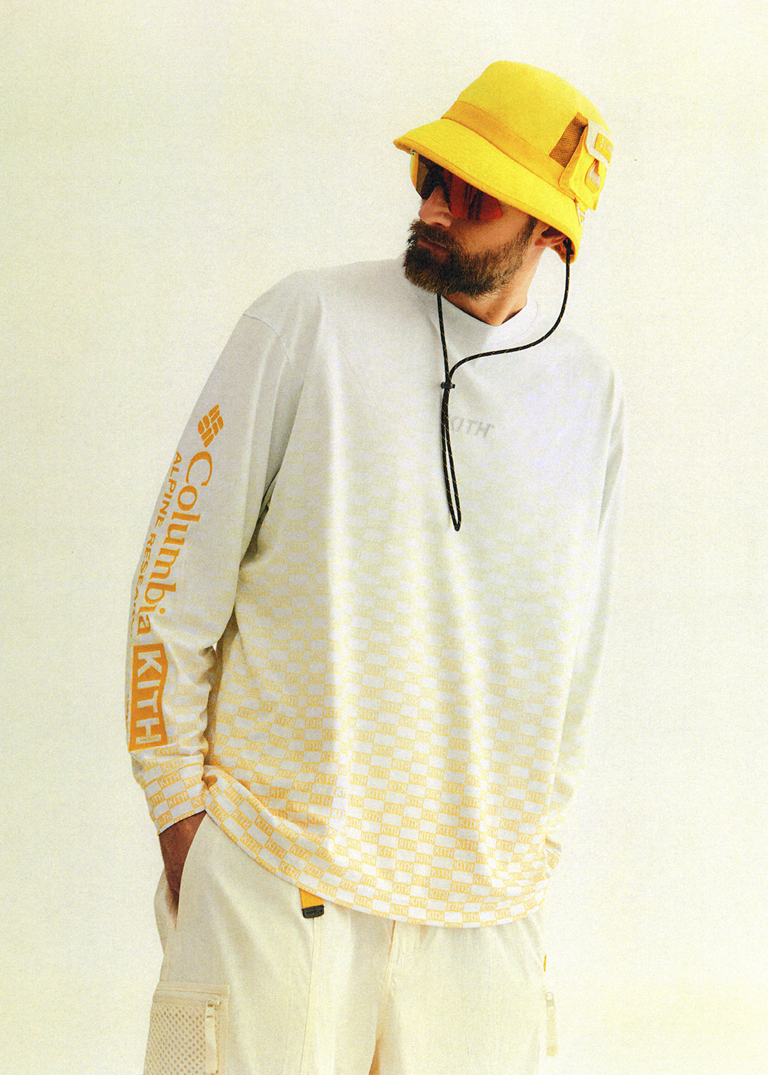 Camping-themed custom artwork featuring Lake Tahoe, Yosemite, Big Sur, and more is adorned on our signature graphic tees. The long-sleeve tops display Kith for Columbia Alpine Research Division designs in solid and ombré Kith Monogram iterations.