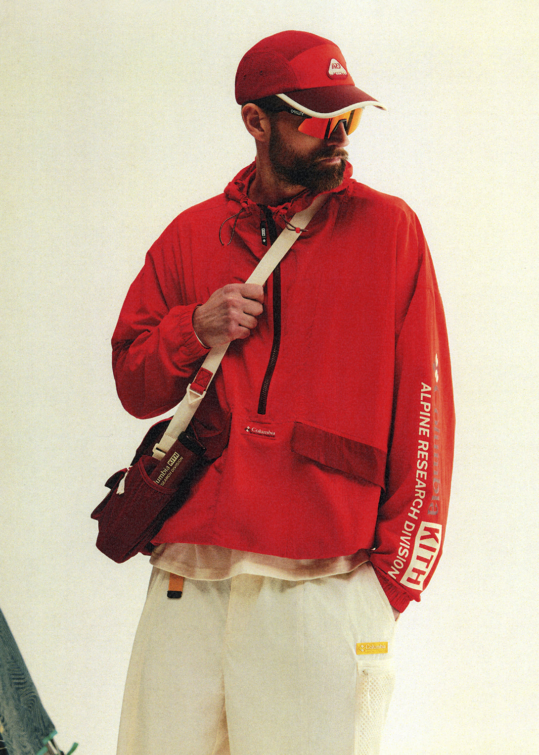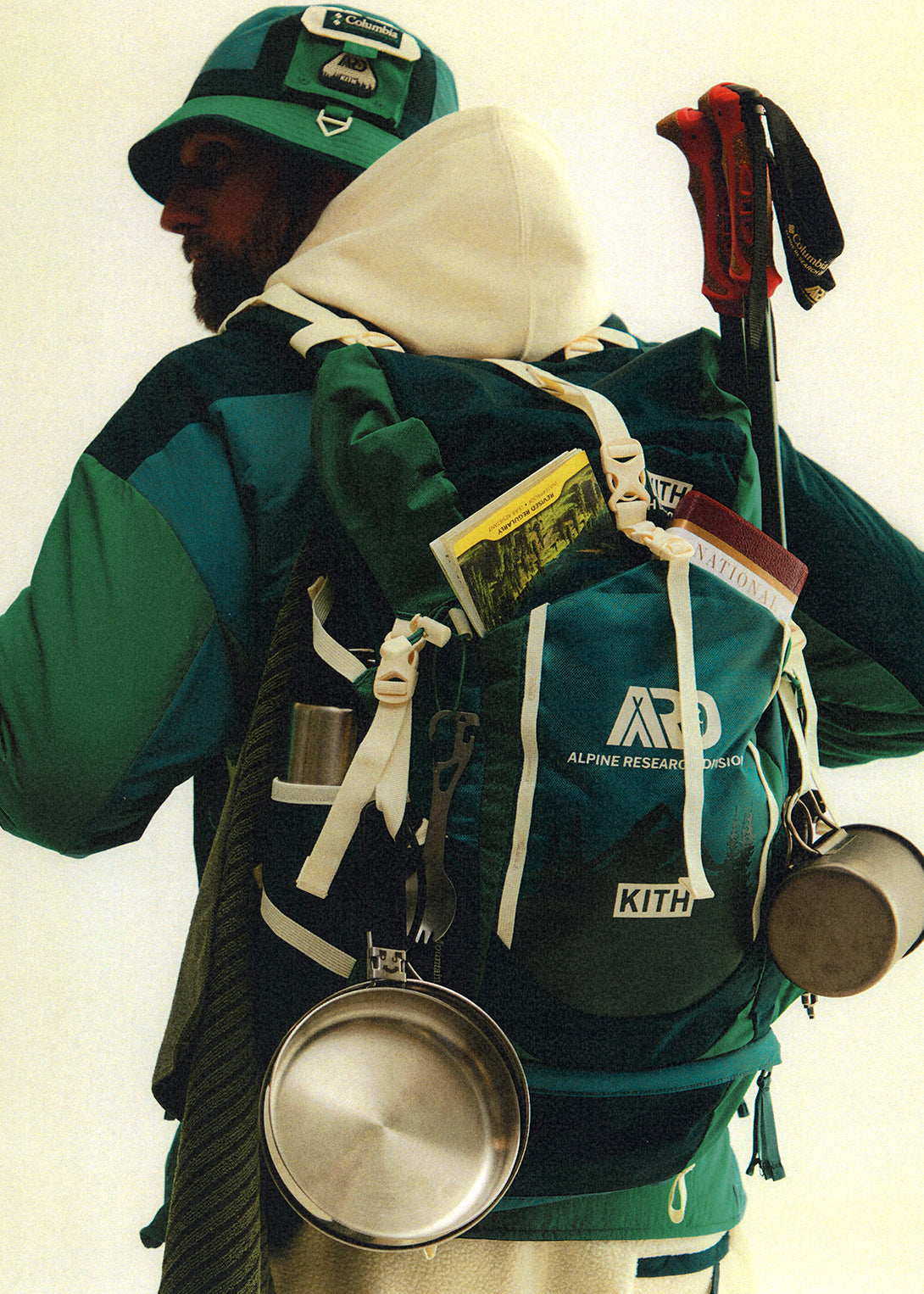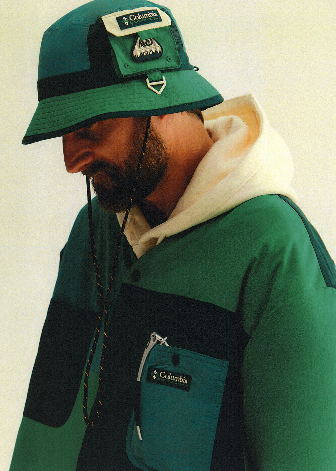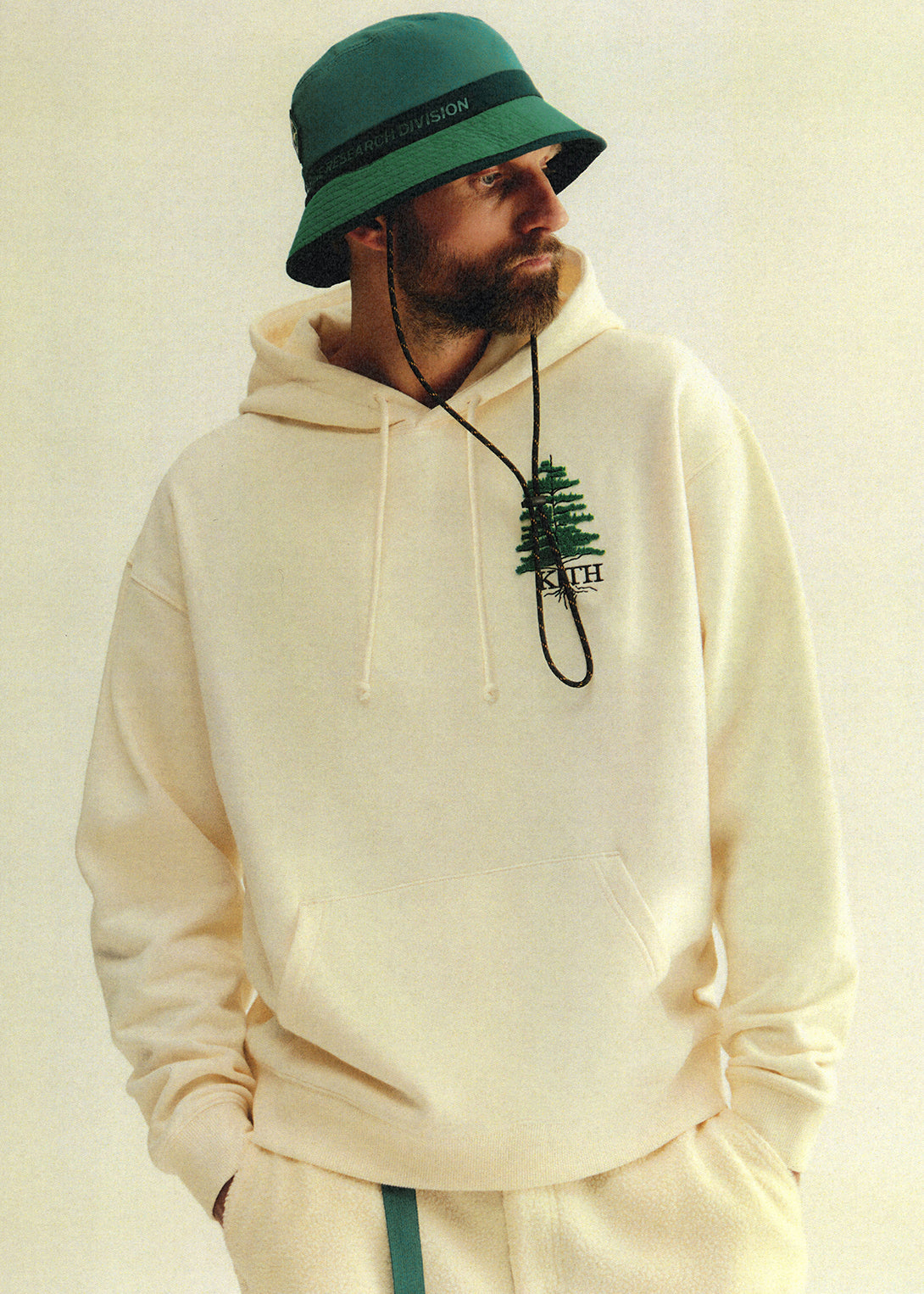 Our premium heavyweight cotton fleece silhouettes like the Williams III Hoodie and Nelson Crewneck showcase scenic landscape artwork alongside collaborative Kith for Columbia logos.