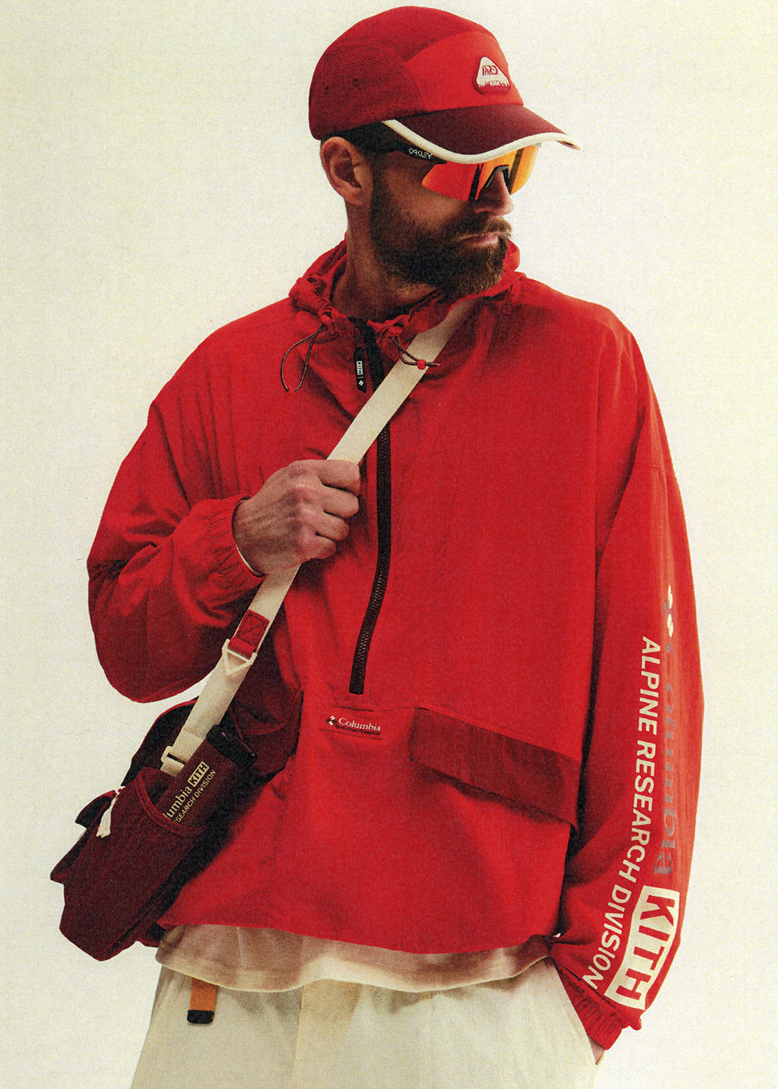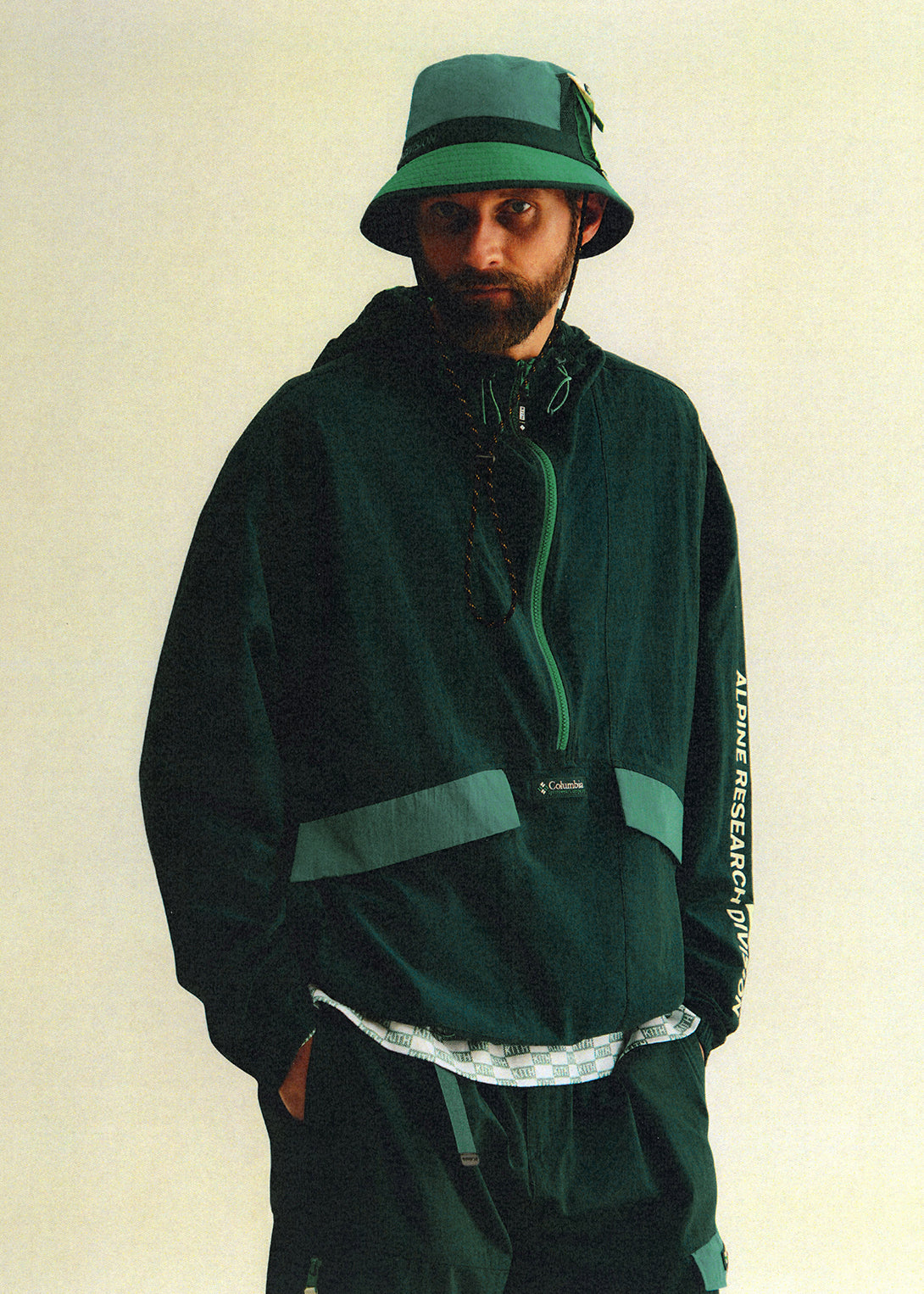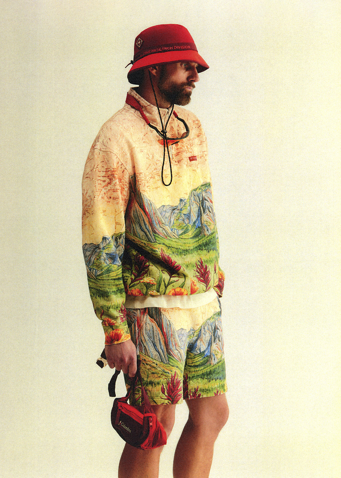 Our premium heavyweight cotton fleece silhouettes like the Williams III Hoodie and Nelson Crewneck showcase scenic landscape artwork alongside collaborative Kith for Columbia logos.