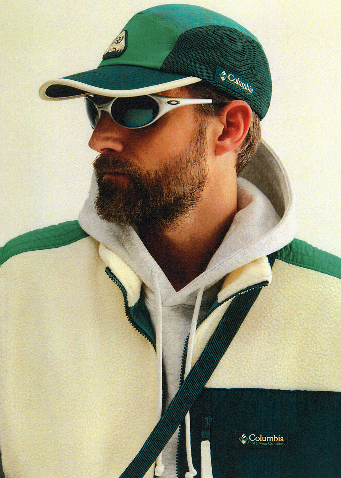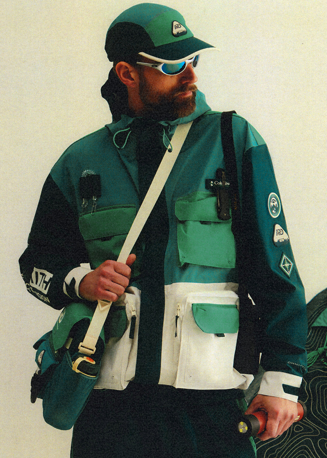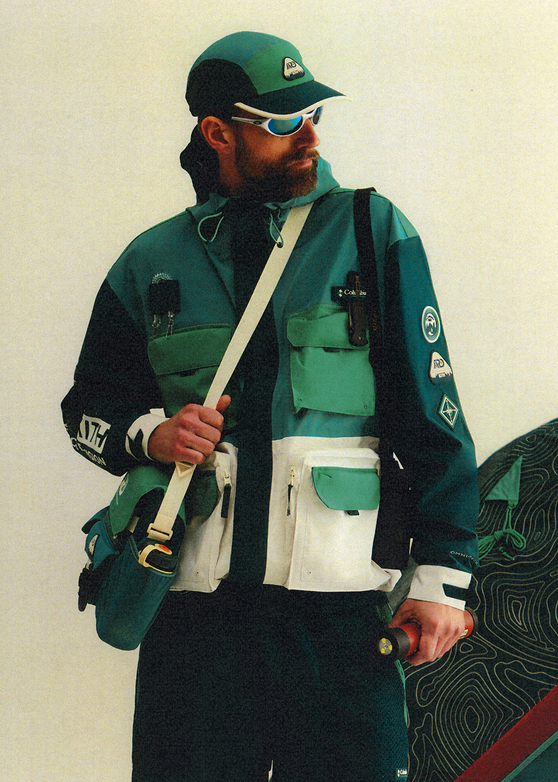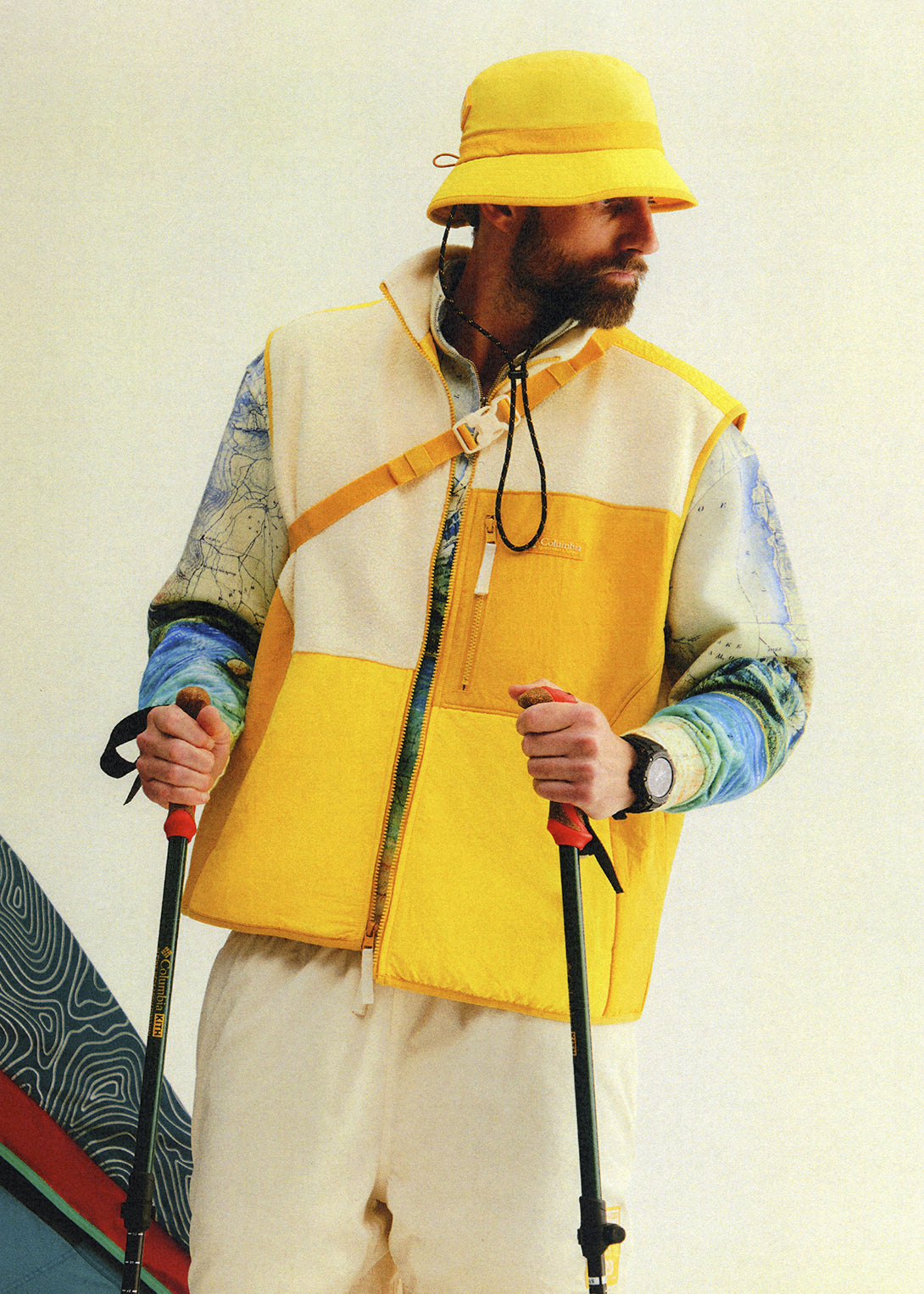 Our premium heavyweight cotton fleece silhouettes like the Williams III Hoodie and Nelson Crewneck showcase scenic landscape artwork alongside collaborative Kith for Columbia logos.