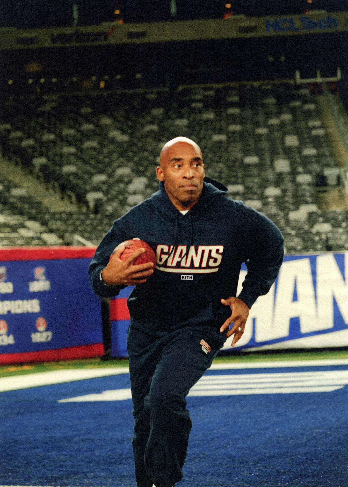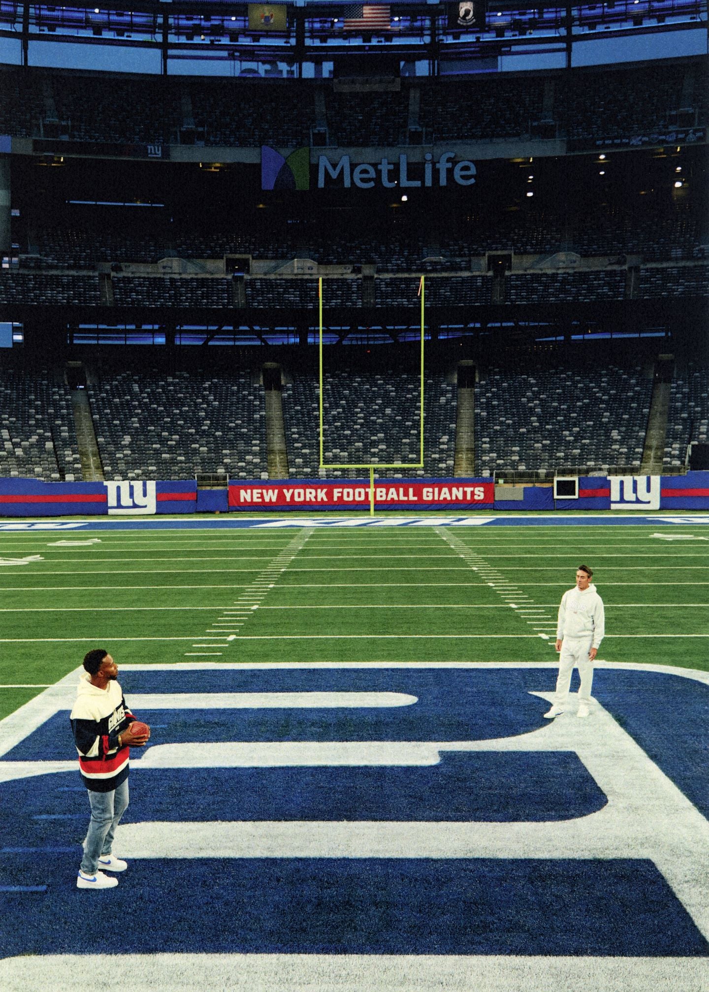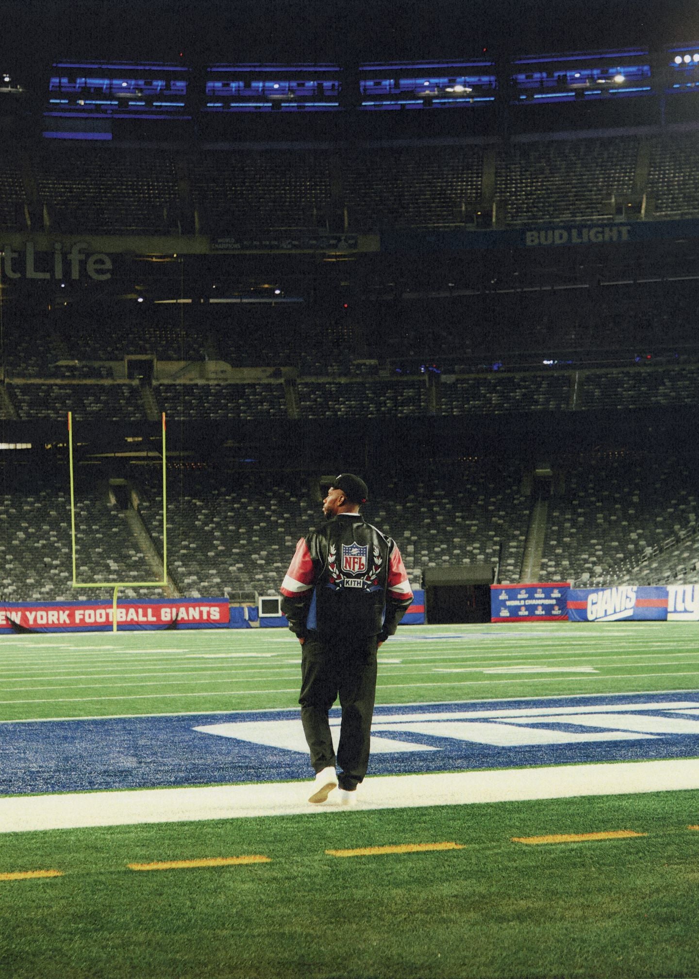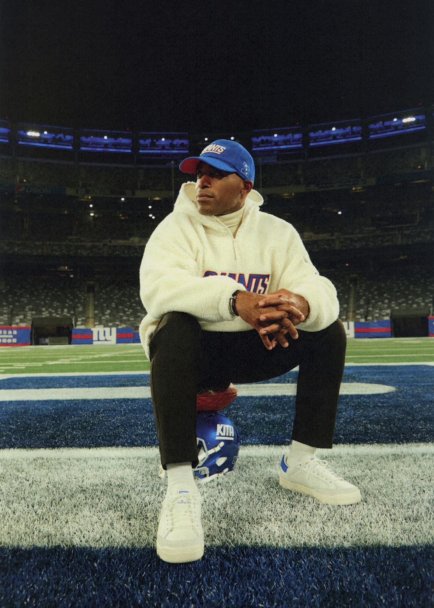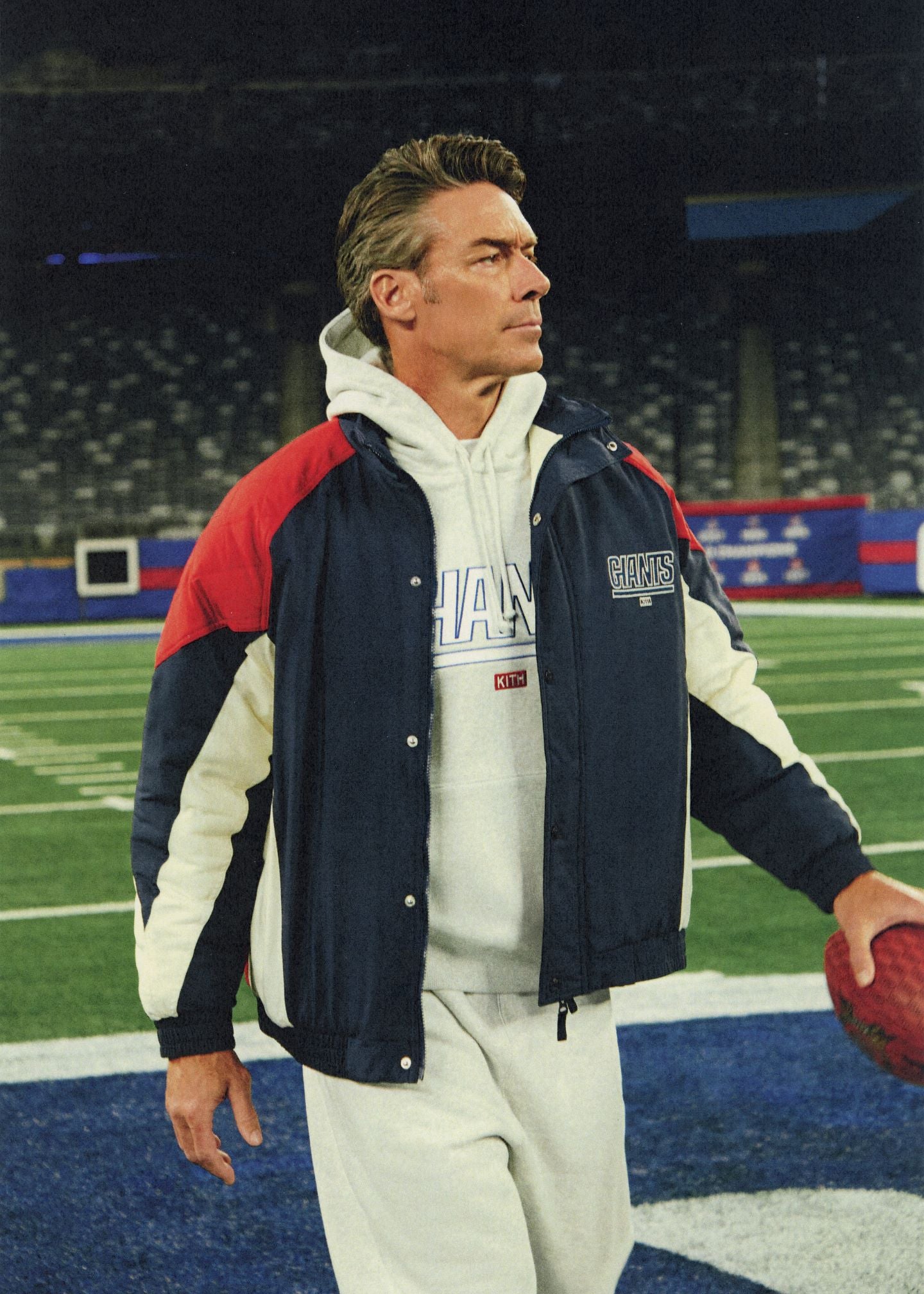Our headwear assortment—beanies, snapbacks, and fitted caps—is complimented by unique co-branded lifestyle pieces like our handcrafted all-over Kith monogram Wilson football, and our one-of-a-kind Giants replica helmet designed in partnership with Riddell.