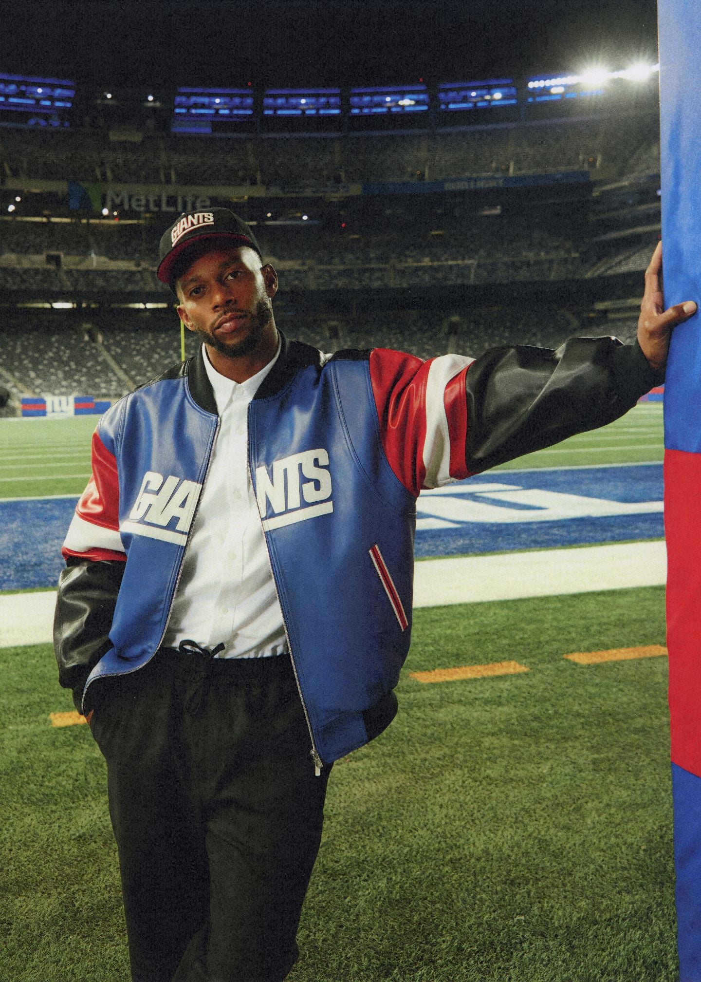 Classic outerwear silhouettes, available in heavyweight fabrications, receive a co-branded Giants treatment. Custom patches & embroidery artwork embellish our Leather Jacket, crafted from Italian Nappa Leather, and Coaches Jacket, executed in Manteco wool. Ideal for keeping warm on game day.