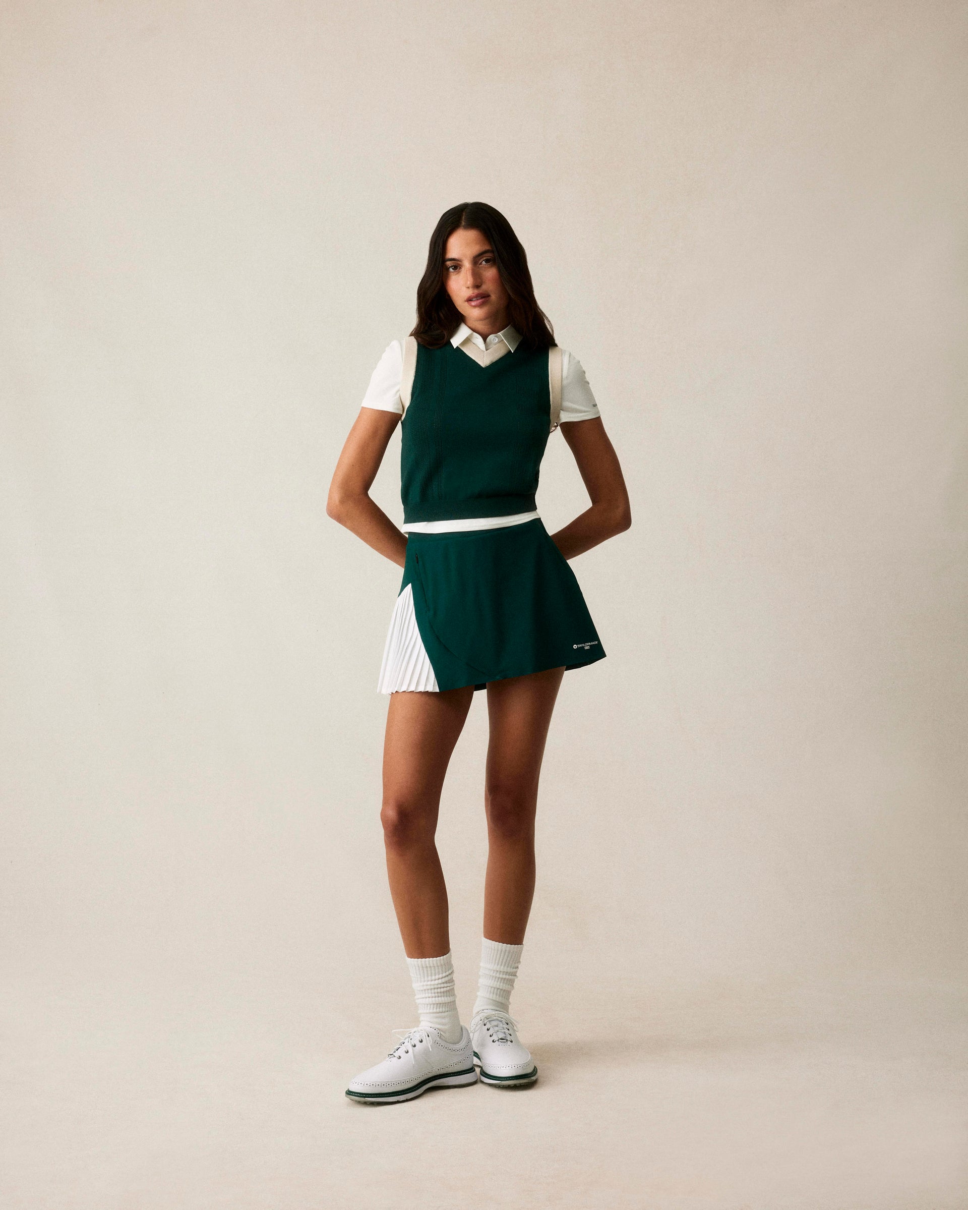 Elevated silhouettes like the Par Dress and sets like the Fairway Polo & Ace Skort showcase subtle co-branding and are crafted from premium fabrics designed for comfort.