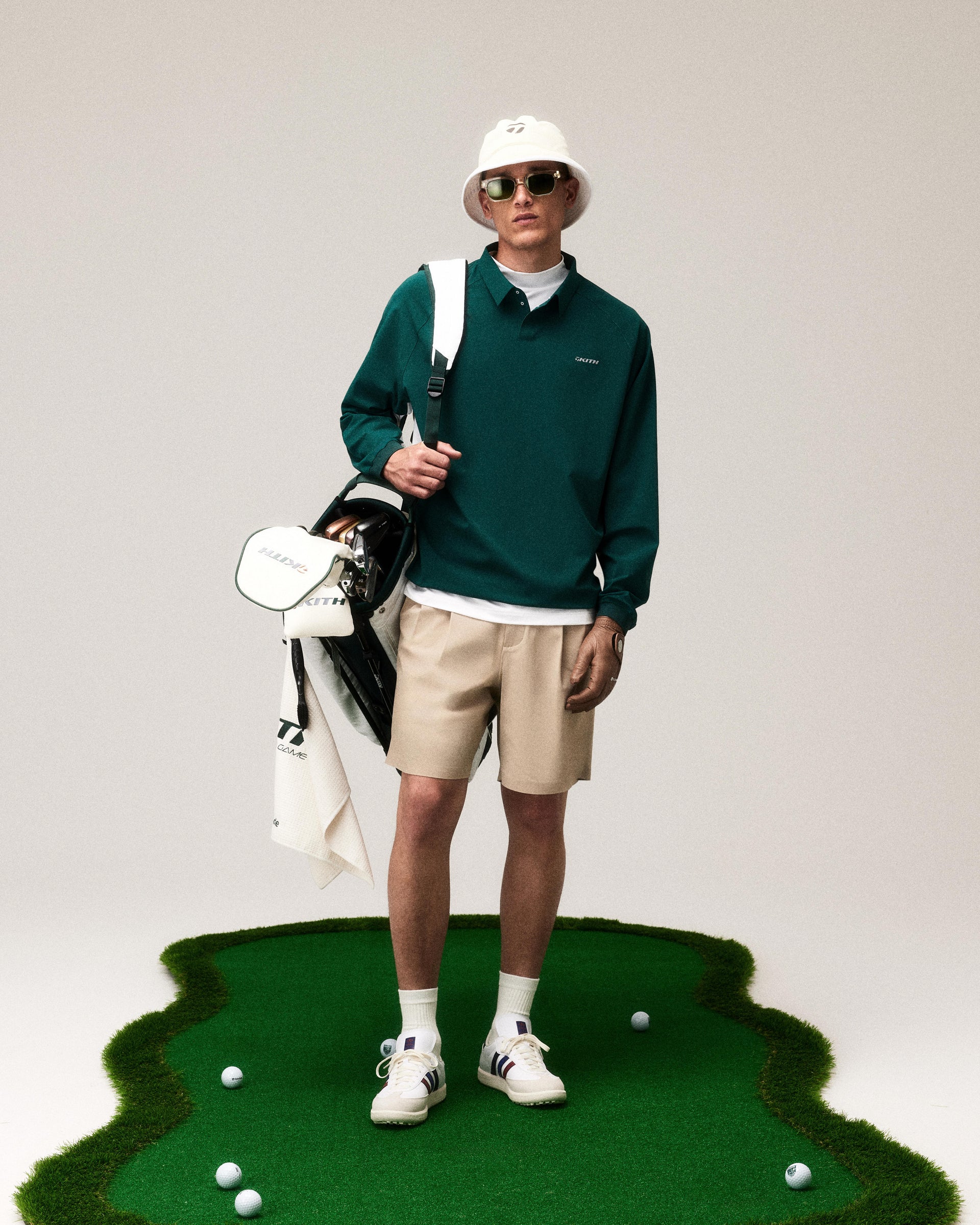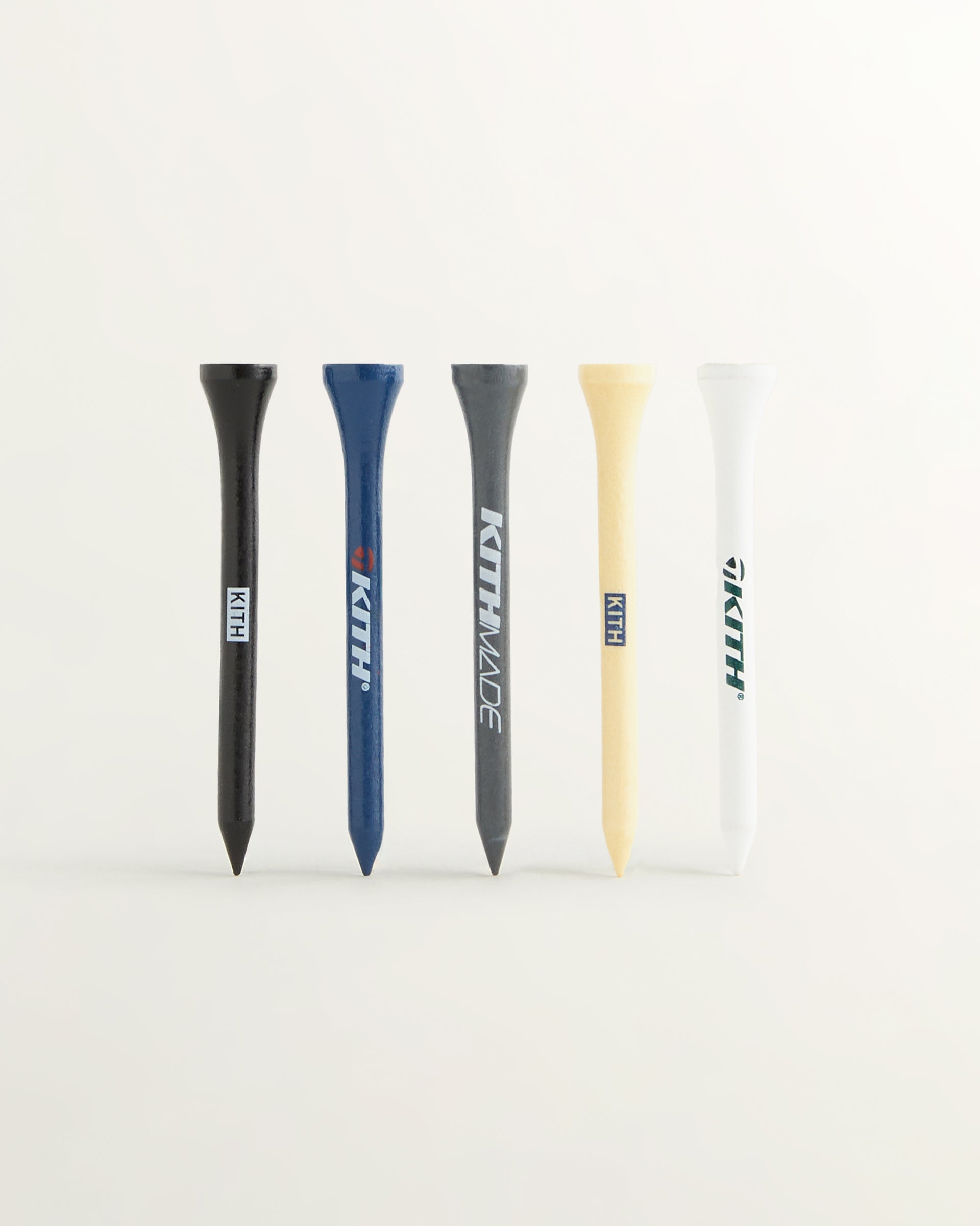 Kith signature silhouettes are adorned with golf-themed custom artwork. The Tips Camp Collar Short Sleeve Shirt is crafted from 100% silk and features an all-over golf course design. The Find Your Game Crewneck highlights a new Kith for TaylorMade logo along with the ‘Find Your Game’ tagline. The offering is complete with an array of vintage tees.