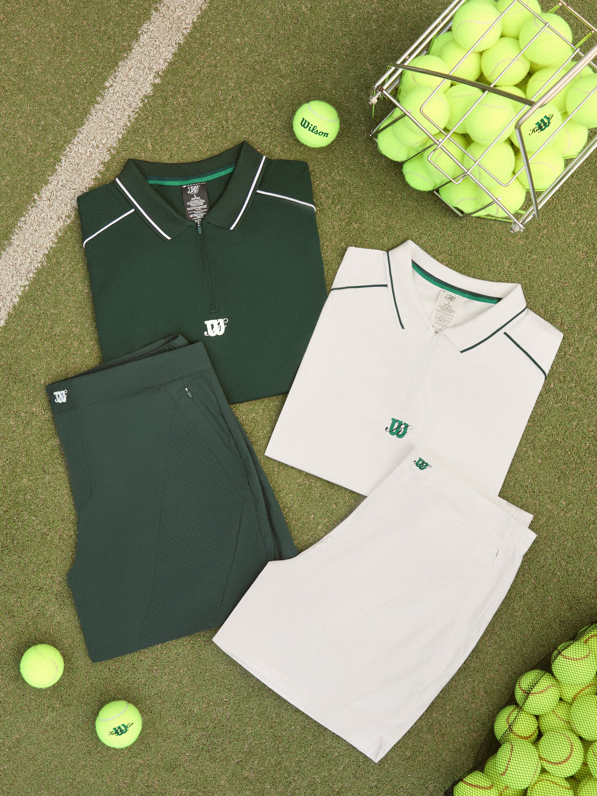 Our technical on-court assortment features matching polos, shorts, tees, jackets, and cardigans. Crafted from breathable materials and built for high-impact movement.
