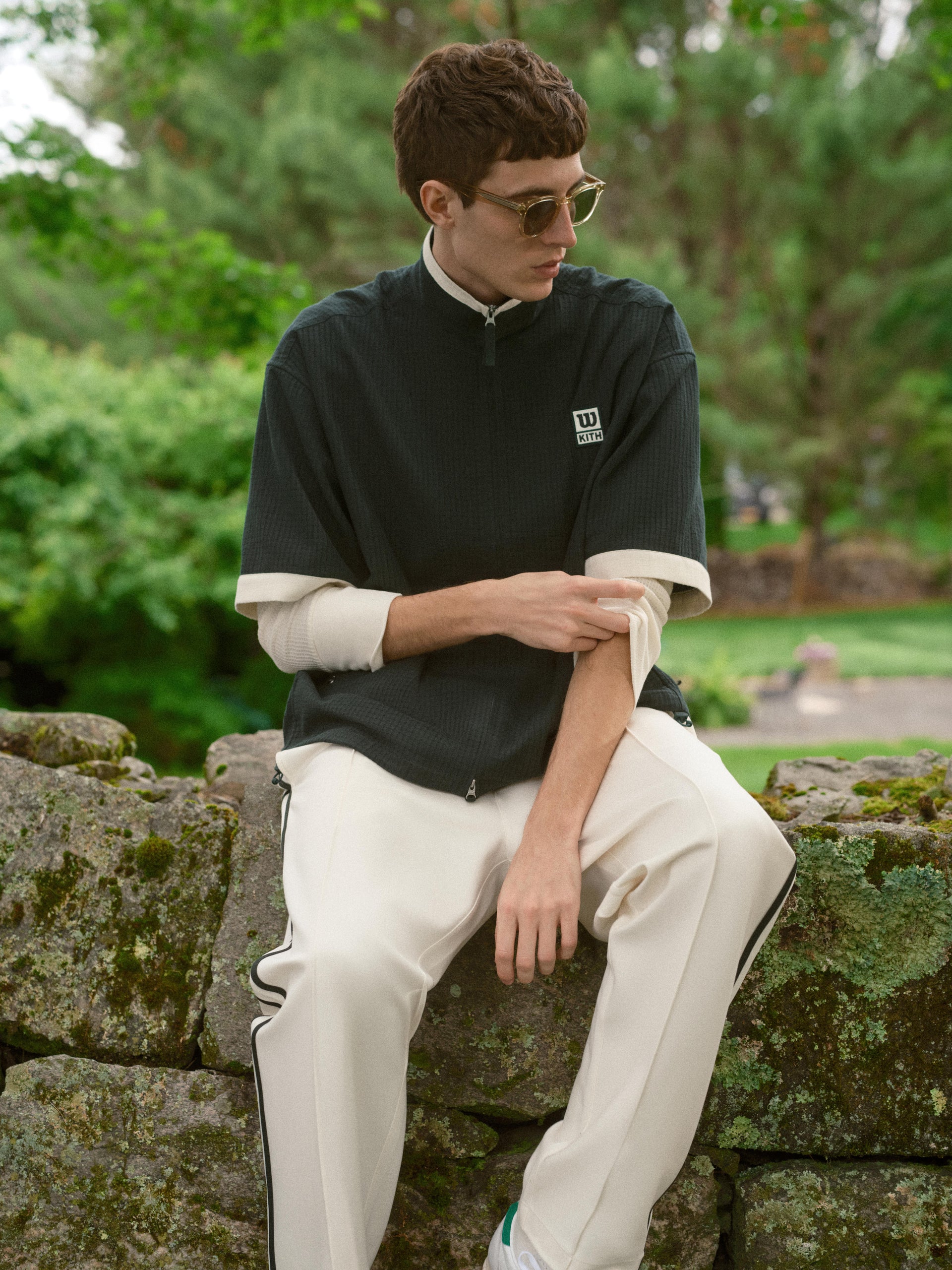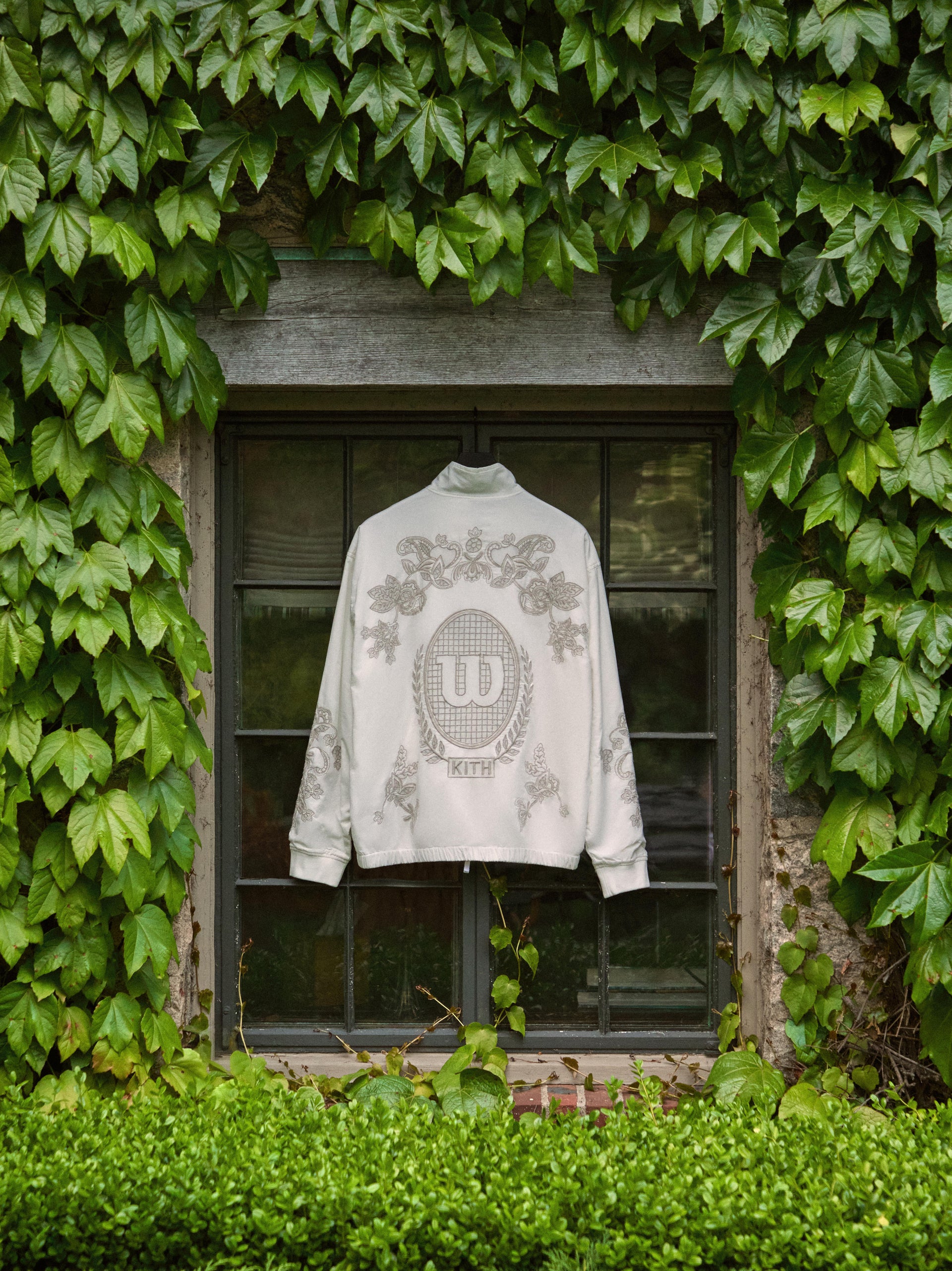 Signature jacket silhouettes, crafted from premium materials, are updated with Kith for Wilson 2025 embroidered co-branded logos and debut tennis-inspired artwork.