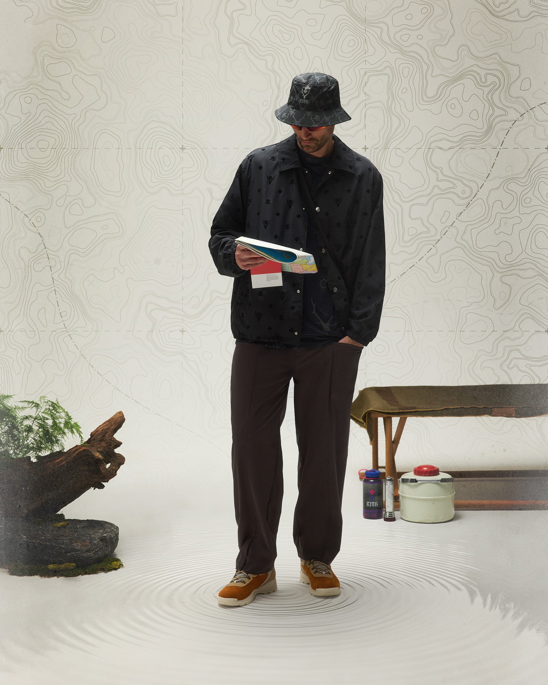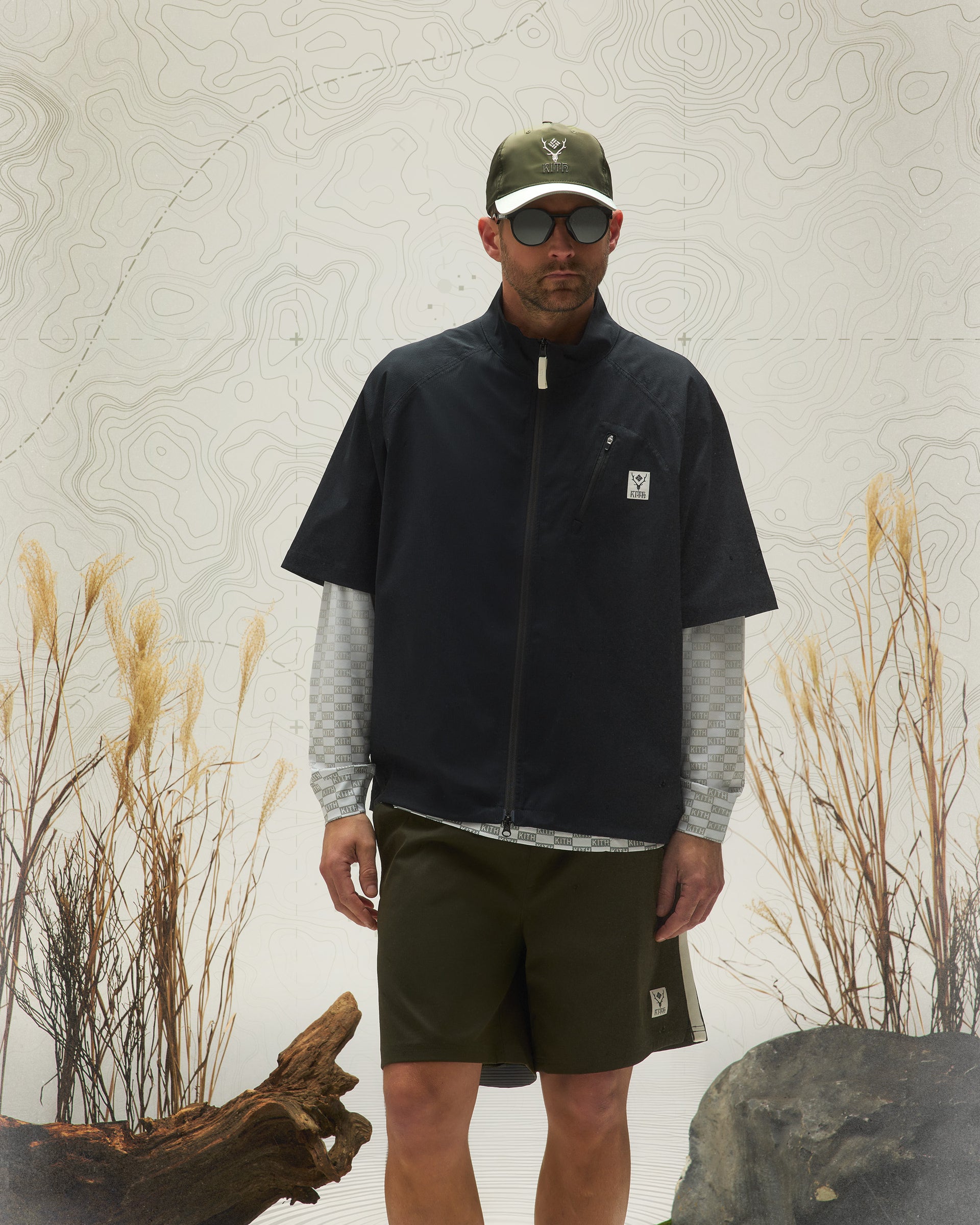 Lifestyle and utility outerwear silhouettes, crafted from premium nylon and polyester, include the Tapestry Coaches Jacket, Flocked Monogram Coaches Jacket and Multi Pocket Jacket. Each style features a different variation of the all-new tri-branded Kith & South2 West8 for Columbia logo.