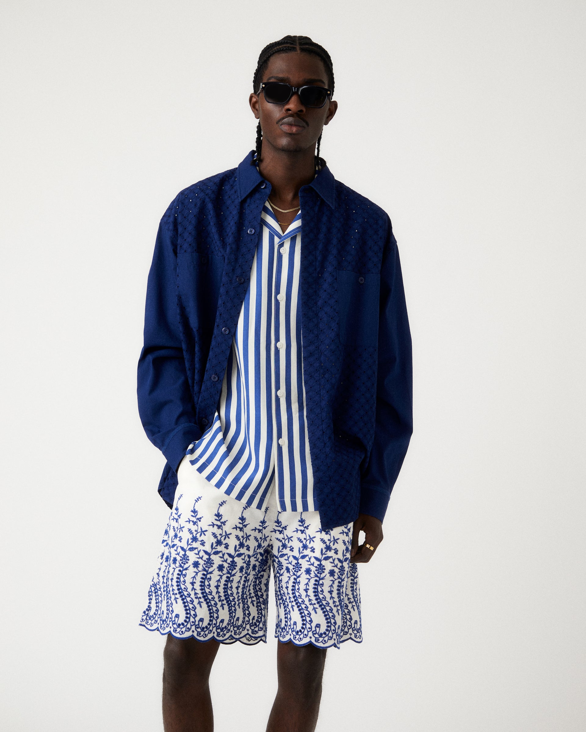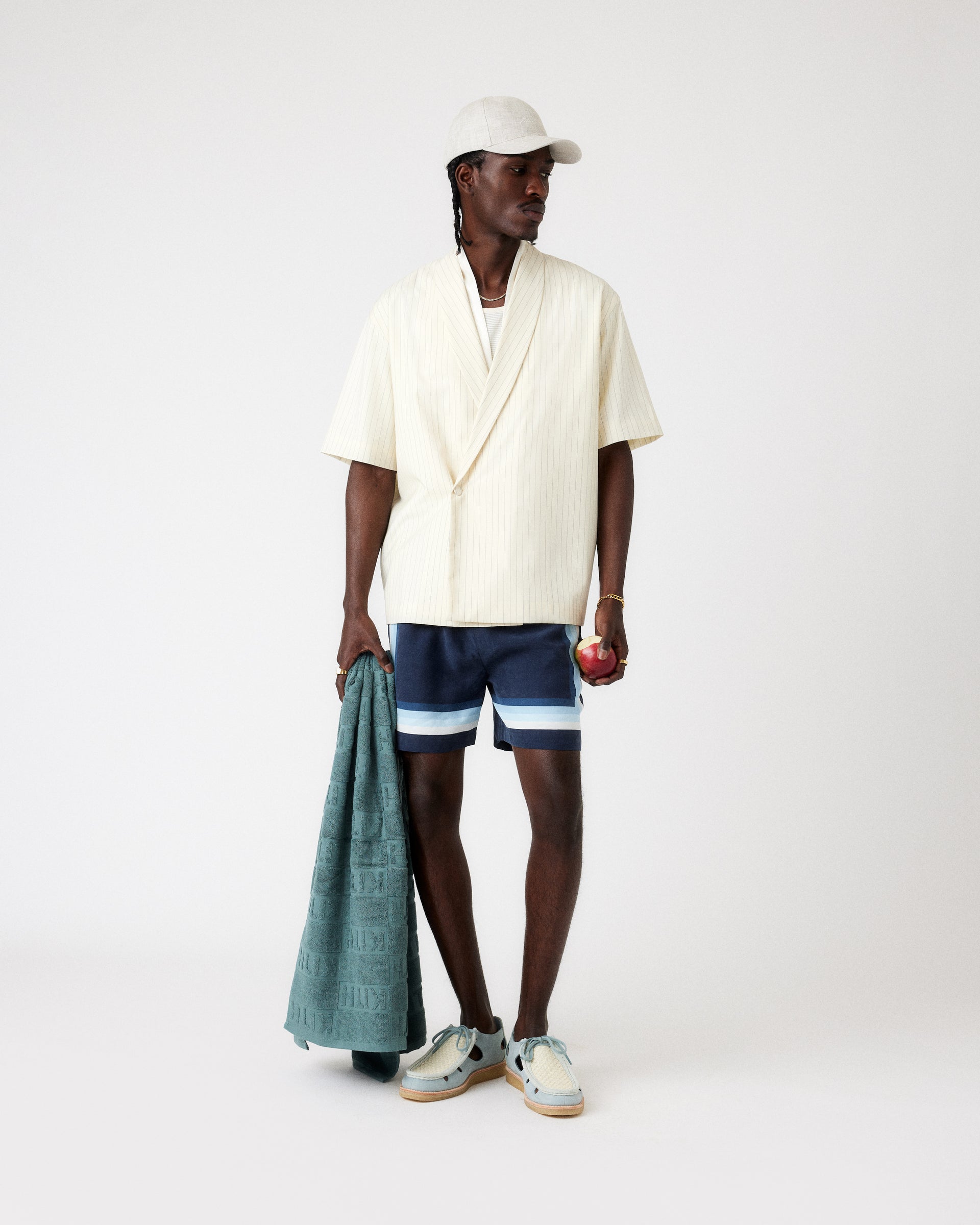 Coordinating sets featuring geometric, striped, and solid designs in premium fabrics like crochet, Turkish denim, silk, cotton eyelet, and more. Complete with subtle Kith branding adorned on each style.