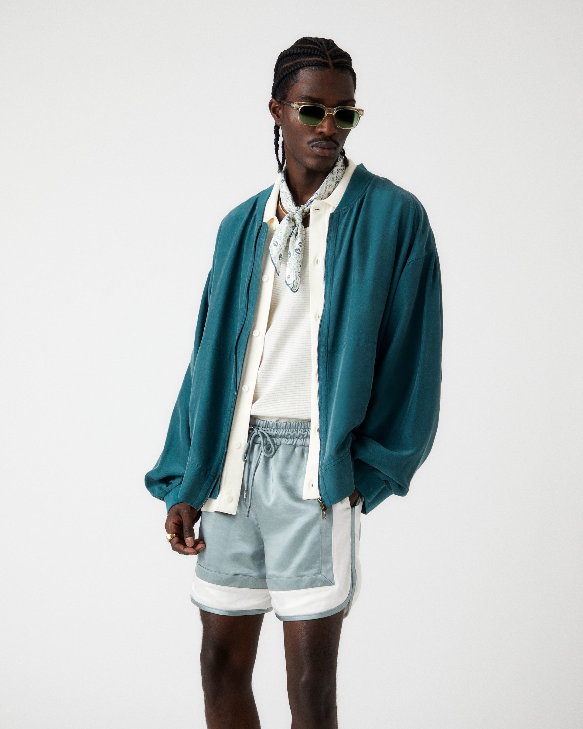 Introducing an all-new silhouette, the Koen Washed Silk Bomber—an elevated and minimalistic jacket crafted from 100% silk and offered in two exclusive colorways. For a more utilitarian style, explore the Madden Patchworked Field Jacket, a paper-touch nylon style equipped with two deep front pockets.