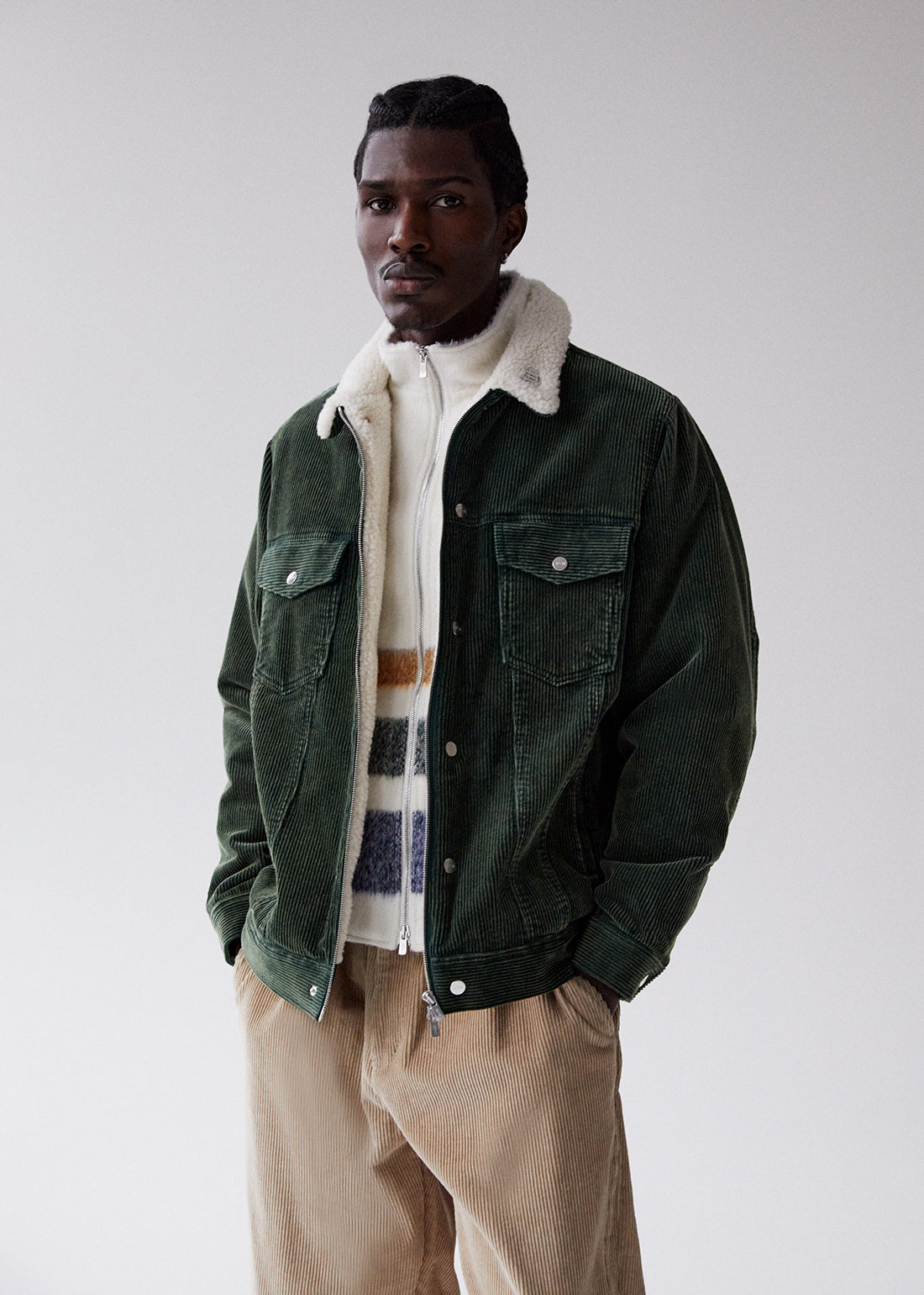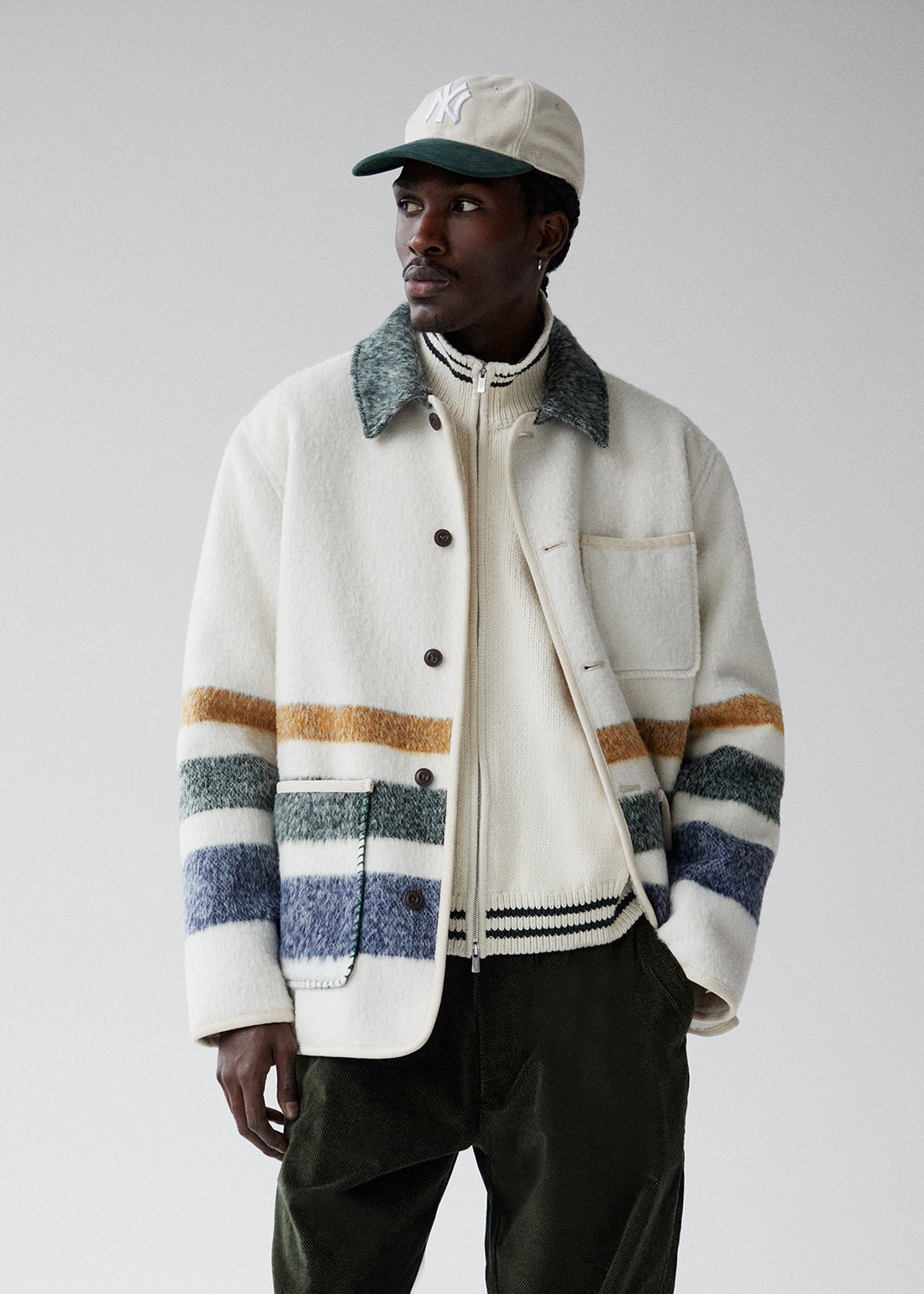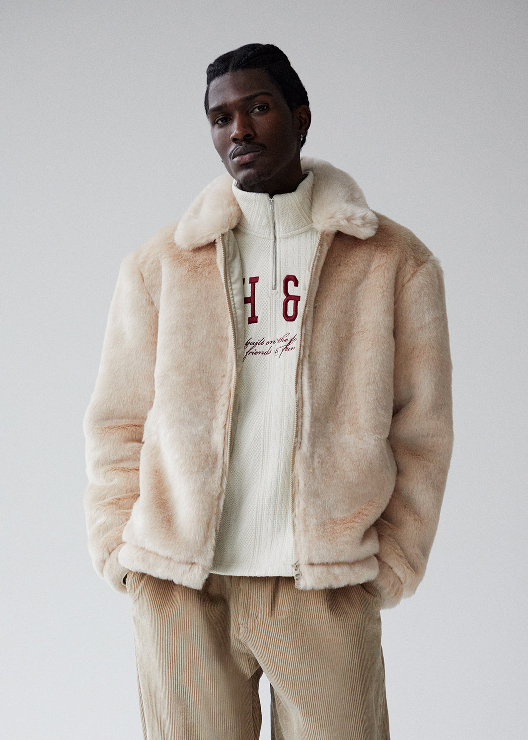 Explore signature styles in heavyweight, premium fabrications—from our Hawthorne Flight Jacket & Nylon Coat, executed in Italian Herringbone wool, to our Lloyd Track Jacket crafted from custom jacquard faux fur.