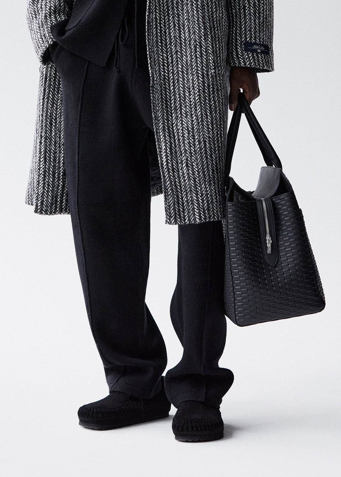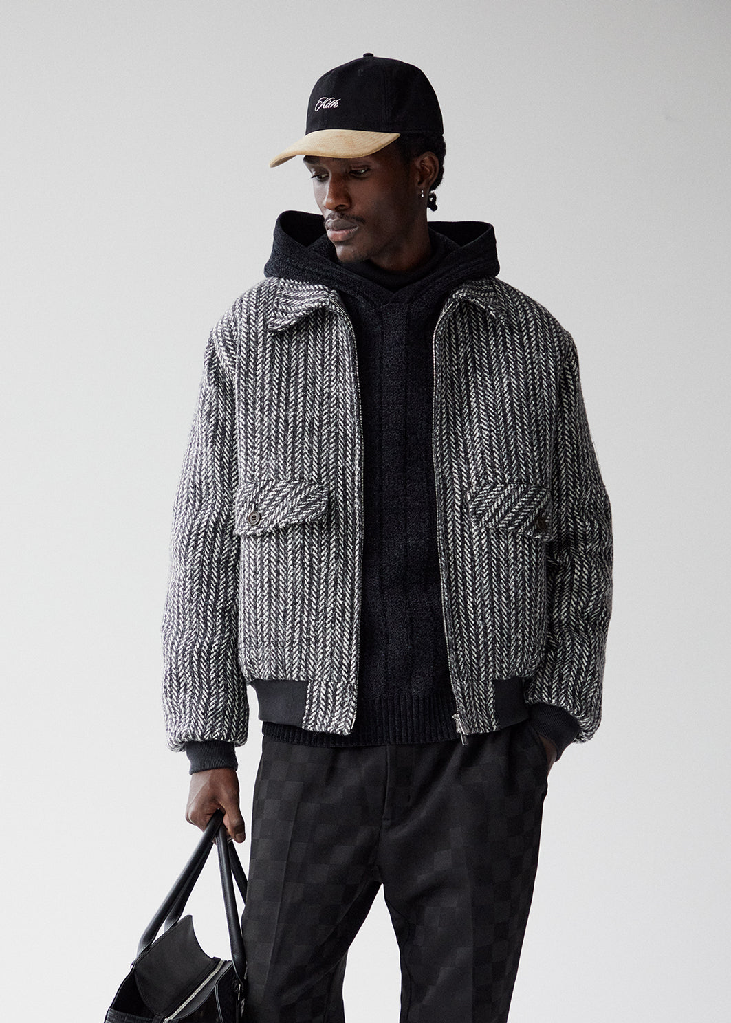 Elevate your look with our Delivery II accessories—Saffiano leather Kith Monogram Duffle Bag & Crossbody, alongside the Woven Tote executed in premium leather and suede iterations.