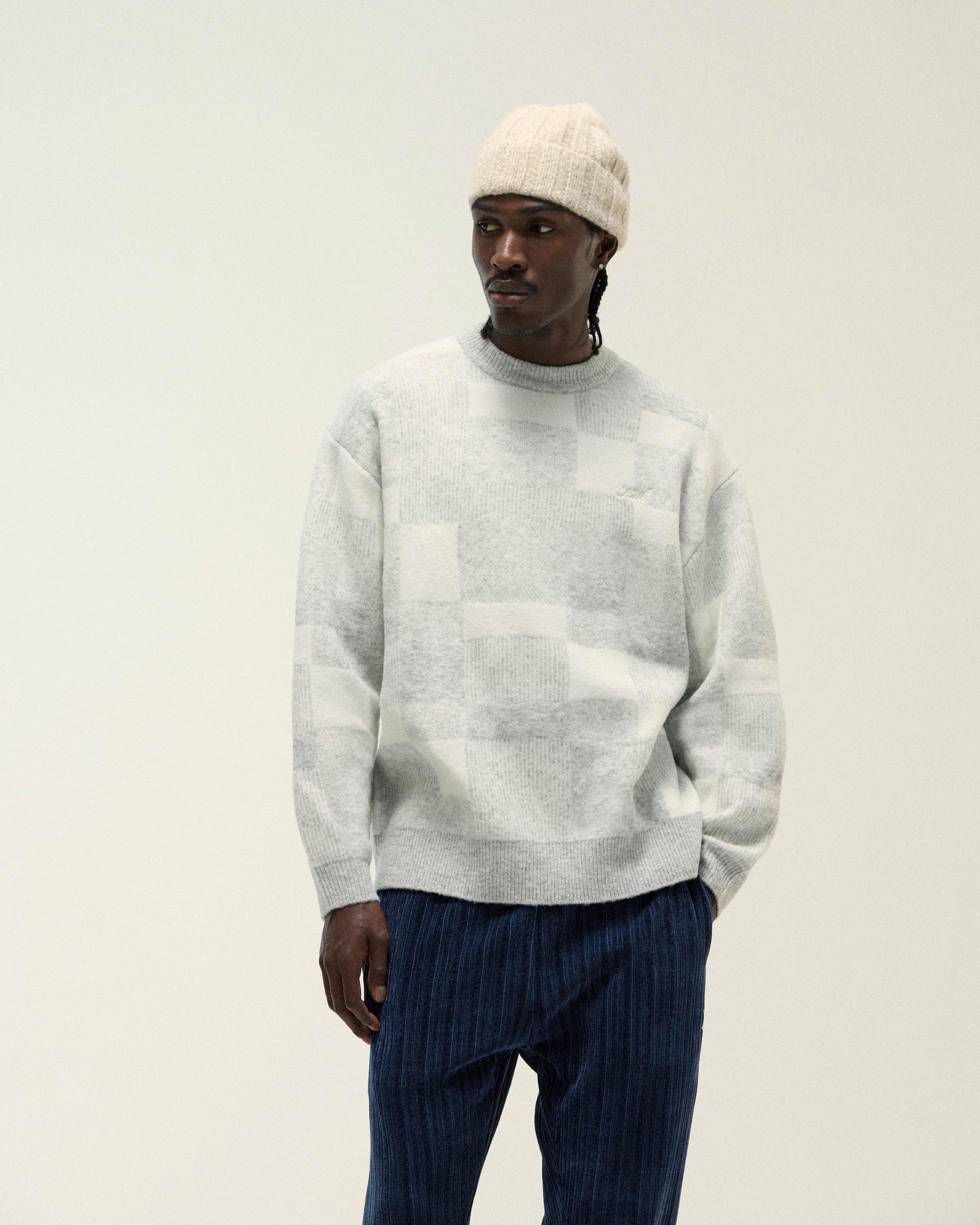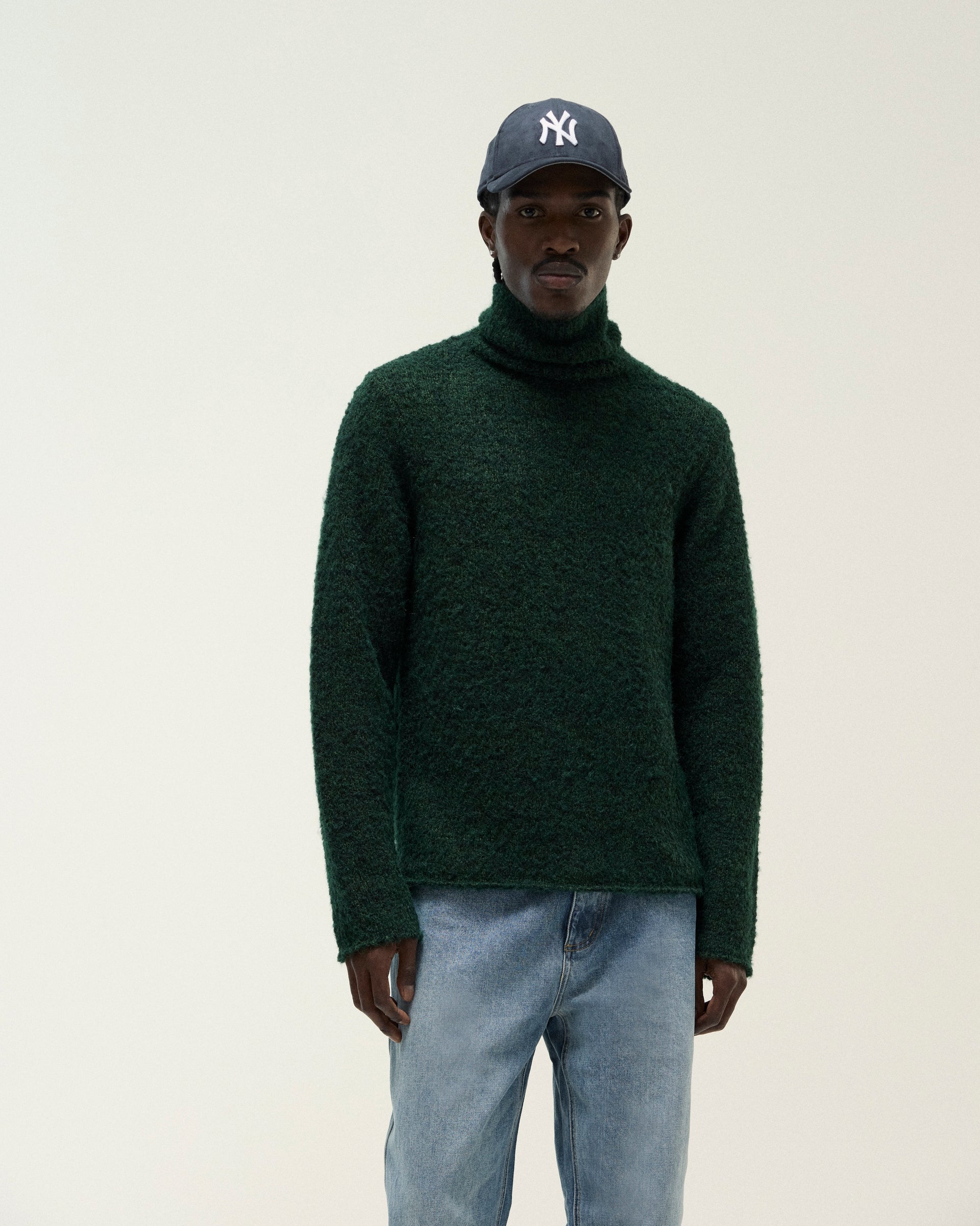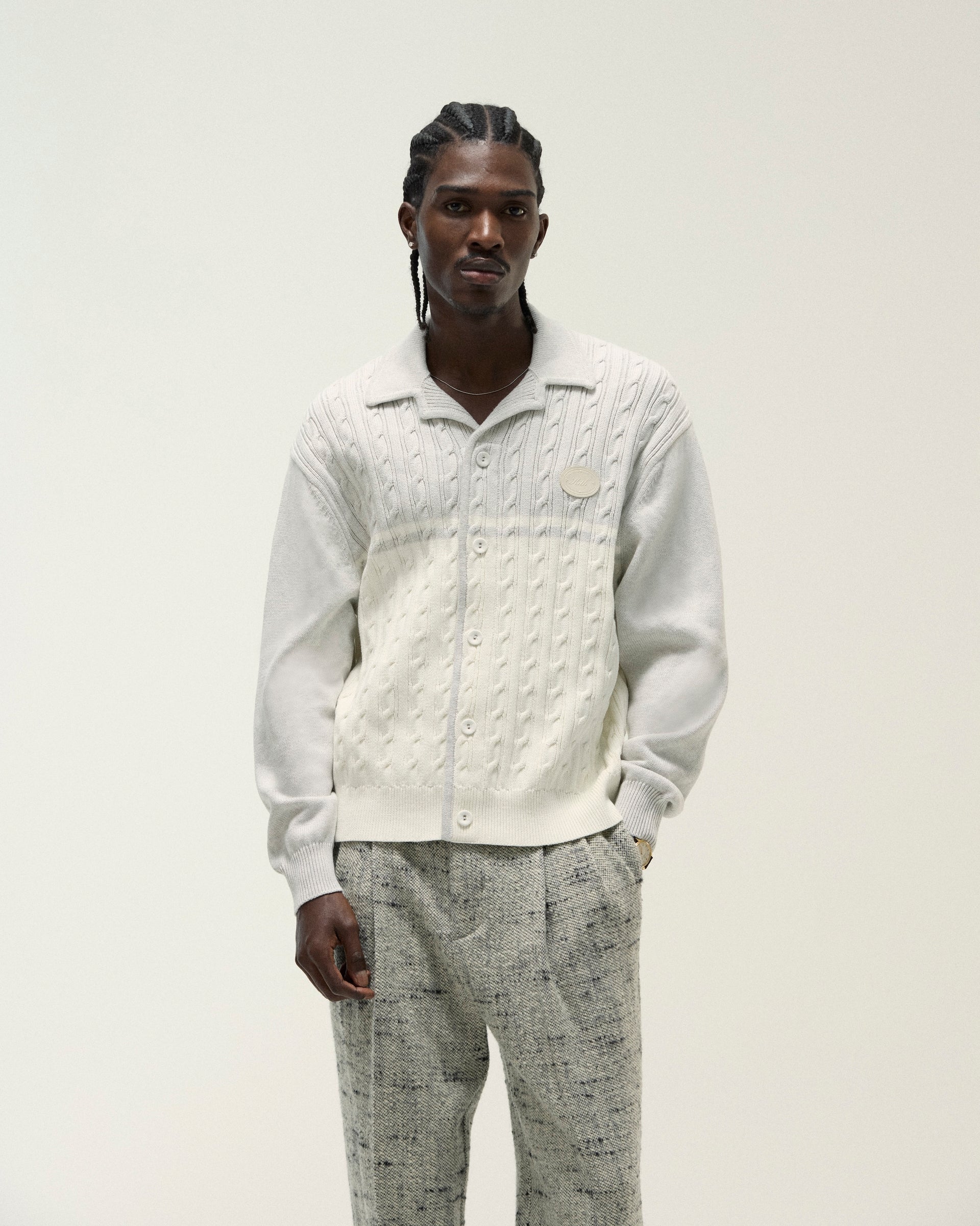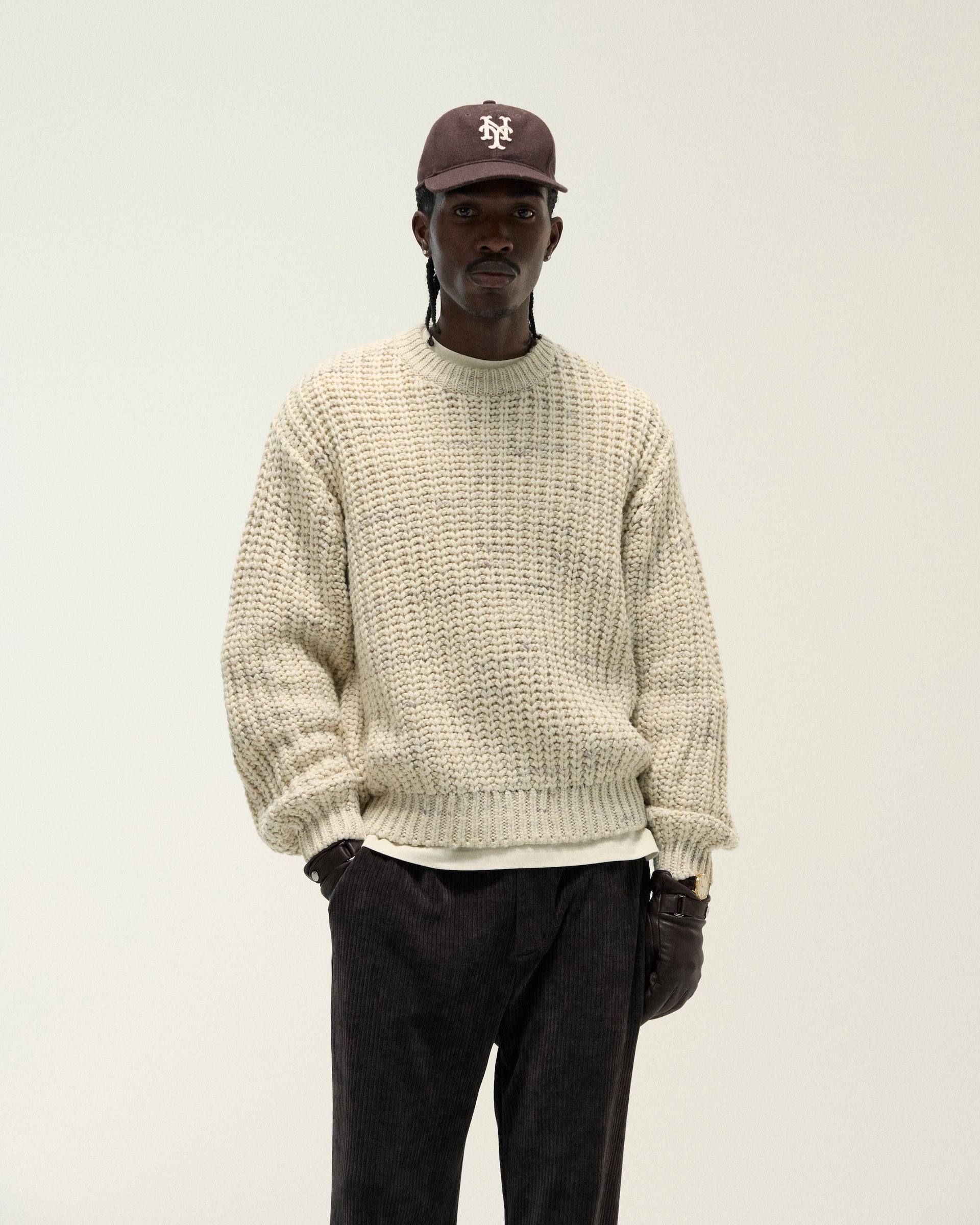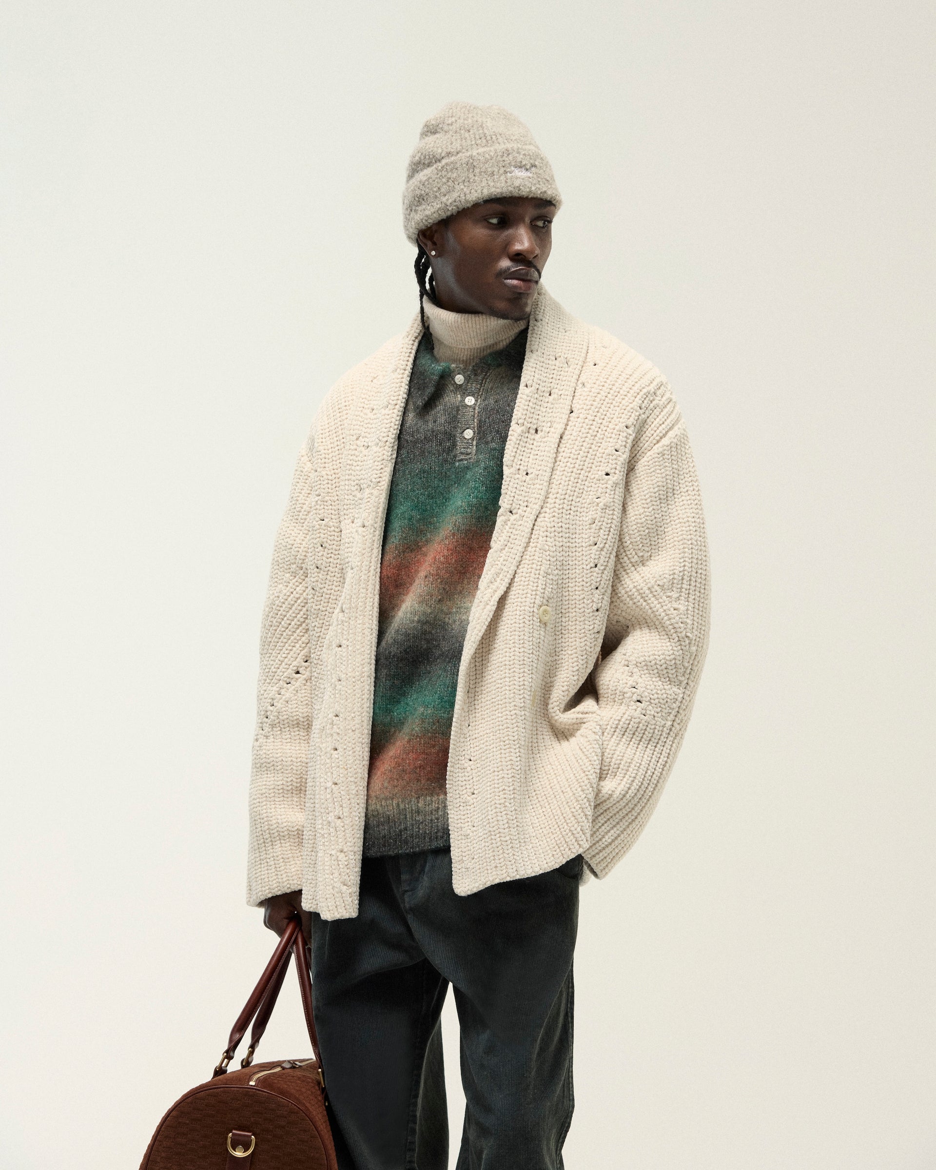 Our latest offering comprises the Ginza Cardigan in super chunky yarn and the Walker Turtleneck crafted from custom speckled boucle yarn. Offered in a variety of neutral tones.