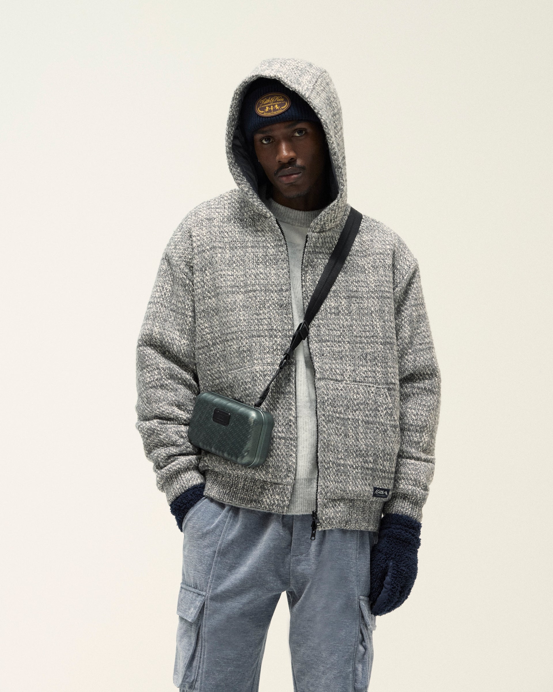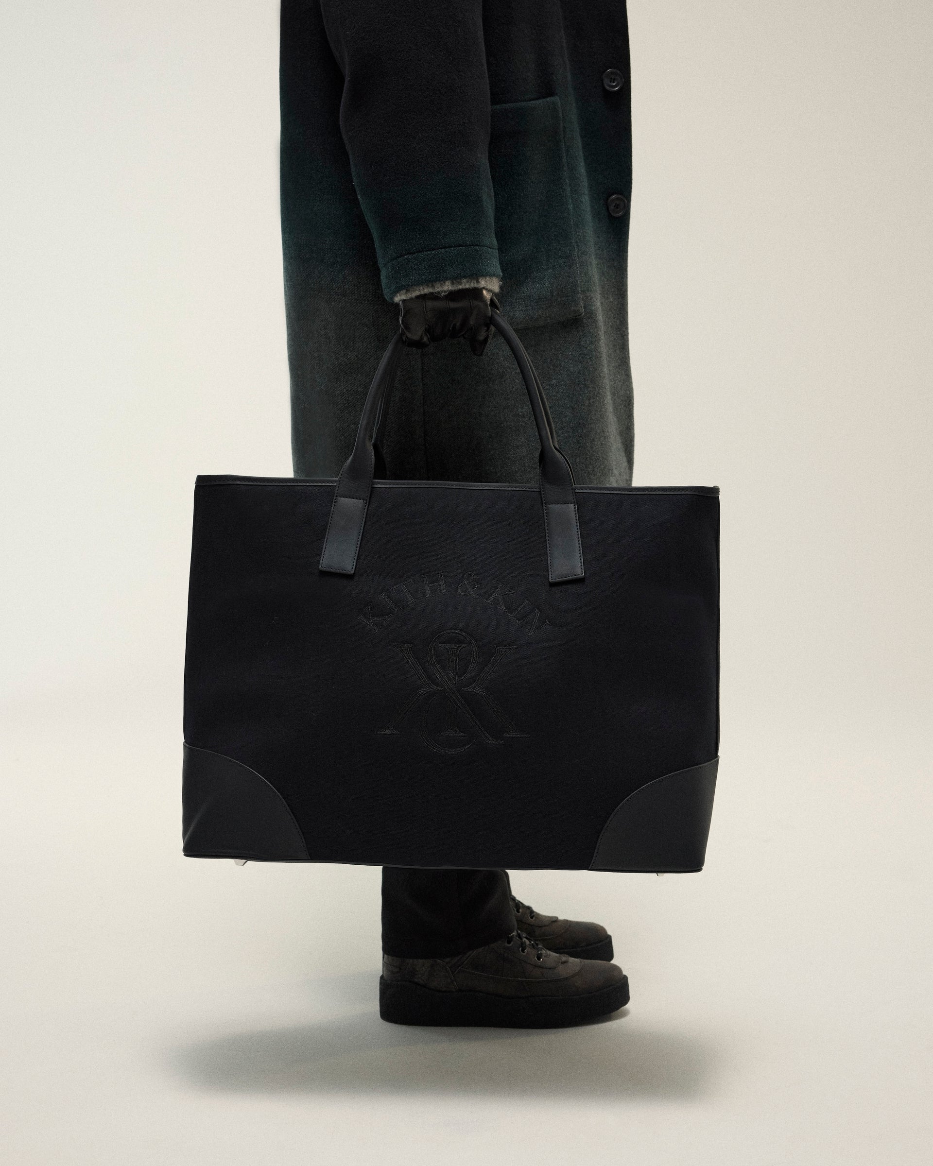 Winter accessories include a range of headwear, scarves, gloves, and more—with each piece designed in matching materials and hues to our main collection. This season introduces leather-trimmed cotton canvas tote bags with our new Kith & Kin logo as well as a new nylon camera bag. Our classic monogram duffle bag also makes a return.