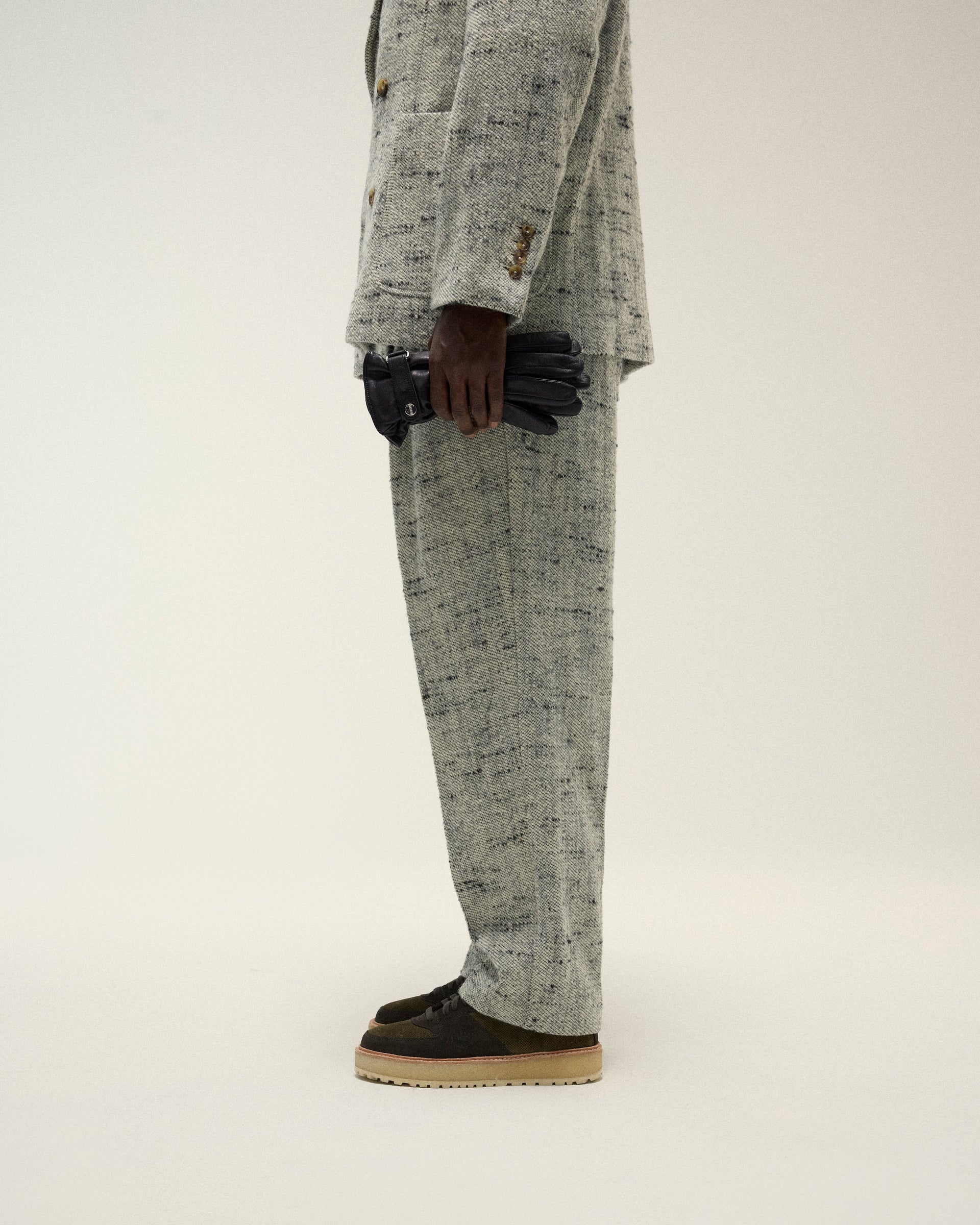 This season sees the debut of the cashmere Raya Blazer and the return of the Julius Blazer in Italian tweed, designed to be paired with the Kylan Pleated Trouser. These suiting silhouettes are seen in sophisticated neutral hues.