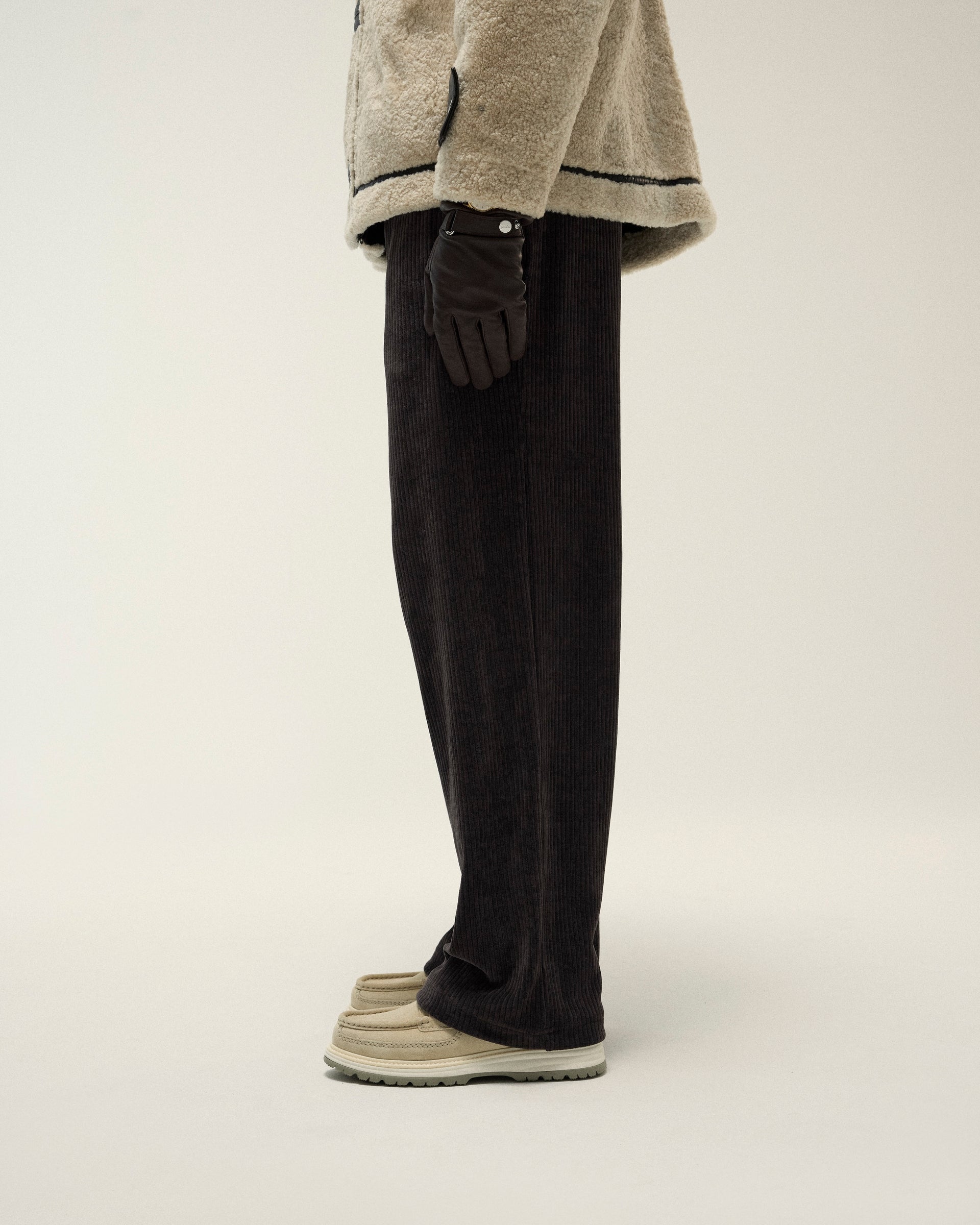 Seasonal sets designed for effortless wardrobing are seen in a variety of elevated fabrics. Standouts include the Ali Track Jacket & Damon Pant in velvet corduroy and the Midi Vest & coordinating Centre Pant in bonded microsuede.