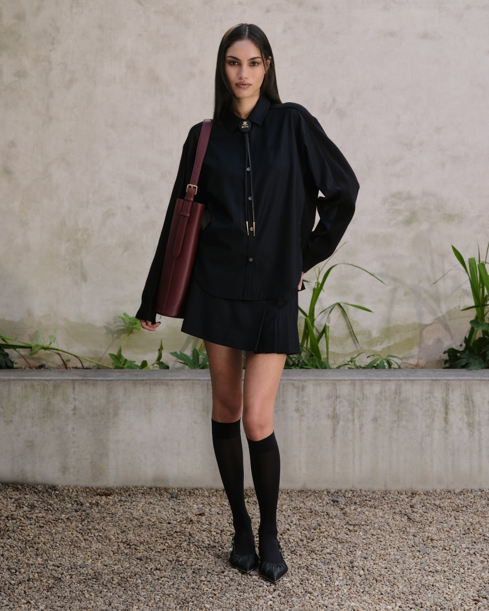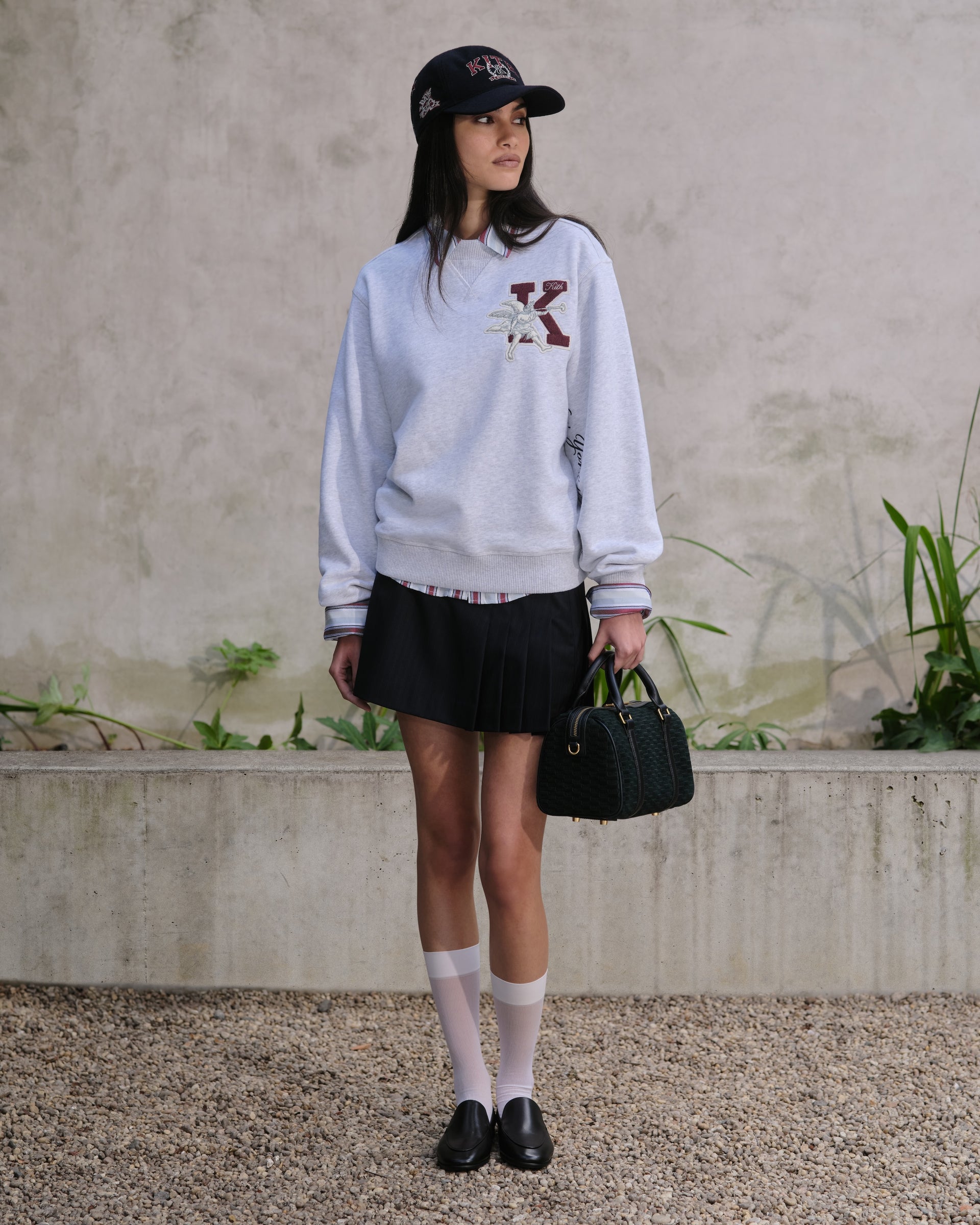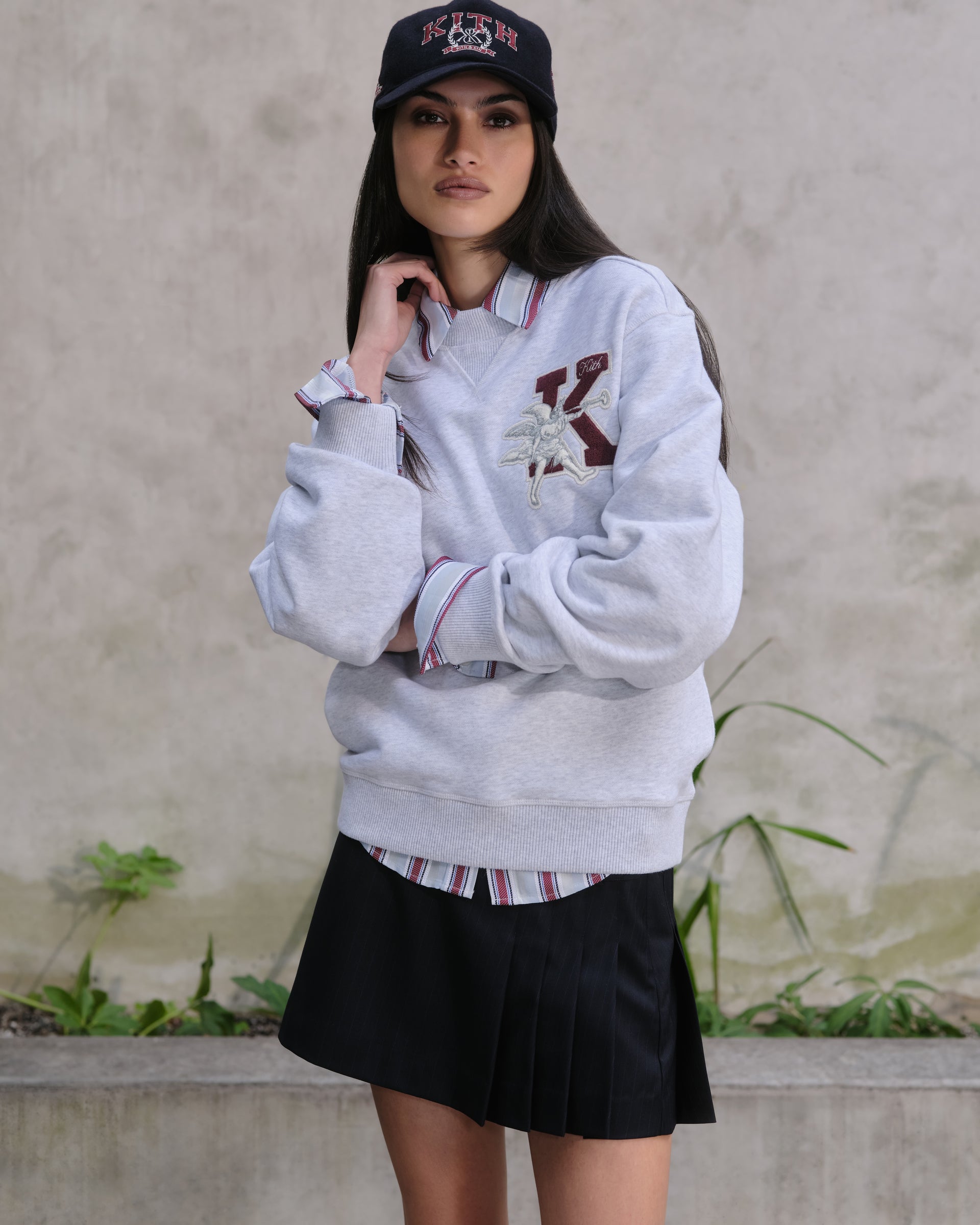 Matching sets from Kith Women Fall 2025 feature versatile styles for laid-back wardrobing and elevated nights out, featuring tailored selects such as the Emira Pleated Micro skirt & Ora II Sweater Shirt, made of double-stripe twill, and the ultra-soft Faryn Hooded Zip Sweater & Hana Pleated Sweater Skort, made of a technical sweater blend.