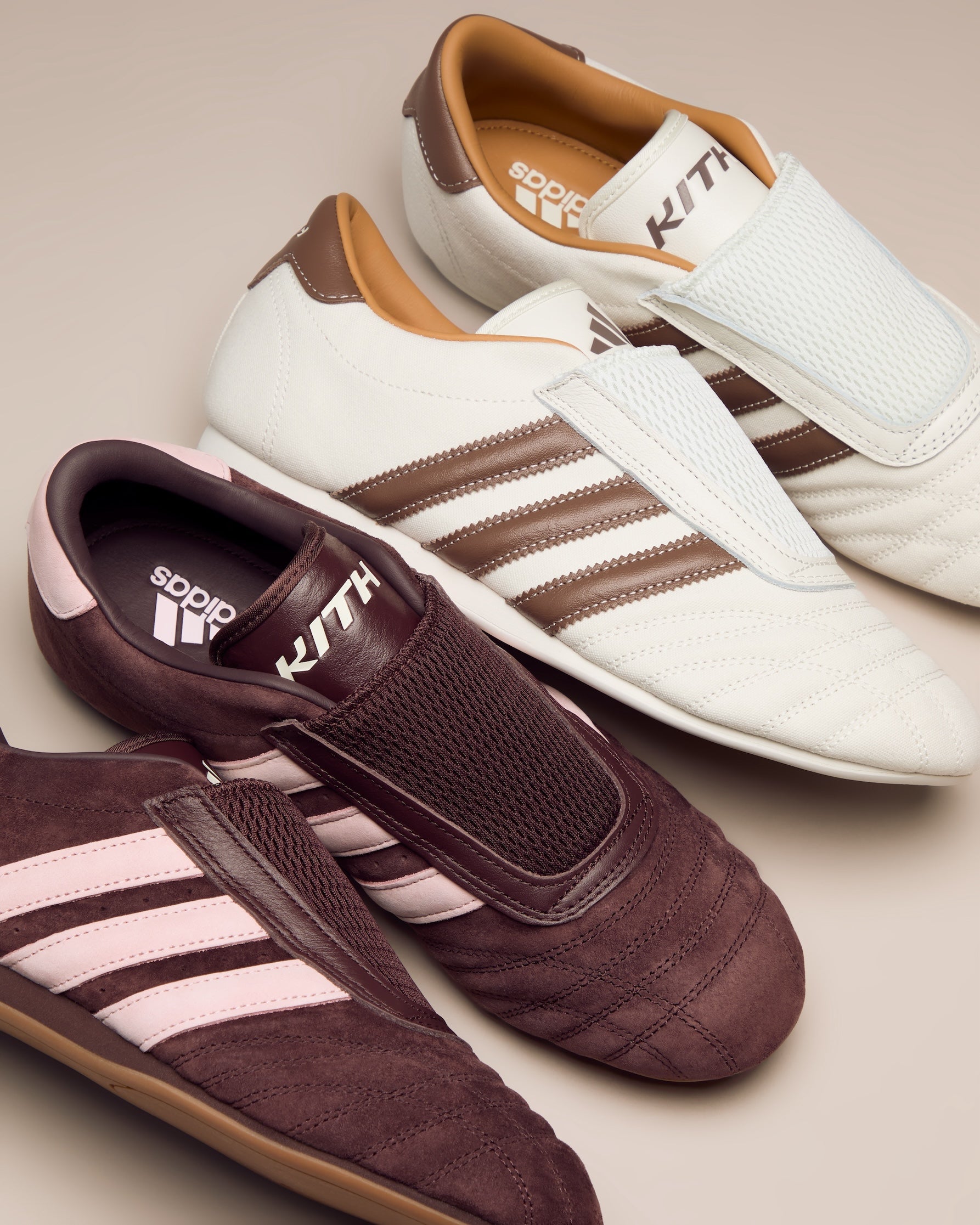 Kith and adidas Originals reprise their partnership to introduce the latest collaborative slip-on Taekwondo silhouette, designed in two color-blocked hues—Natural Canvas & Coffee Quartz made of durable canvas, and Shale & Corsage made of premium suede.