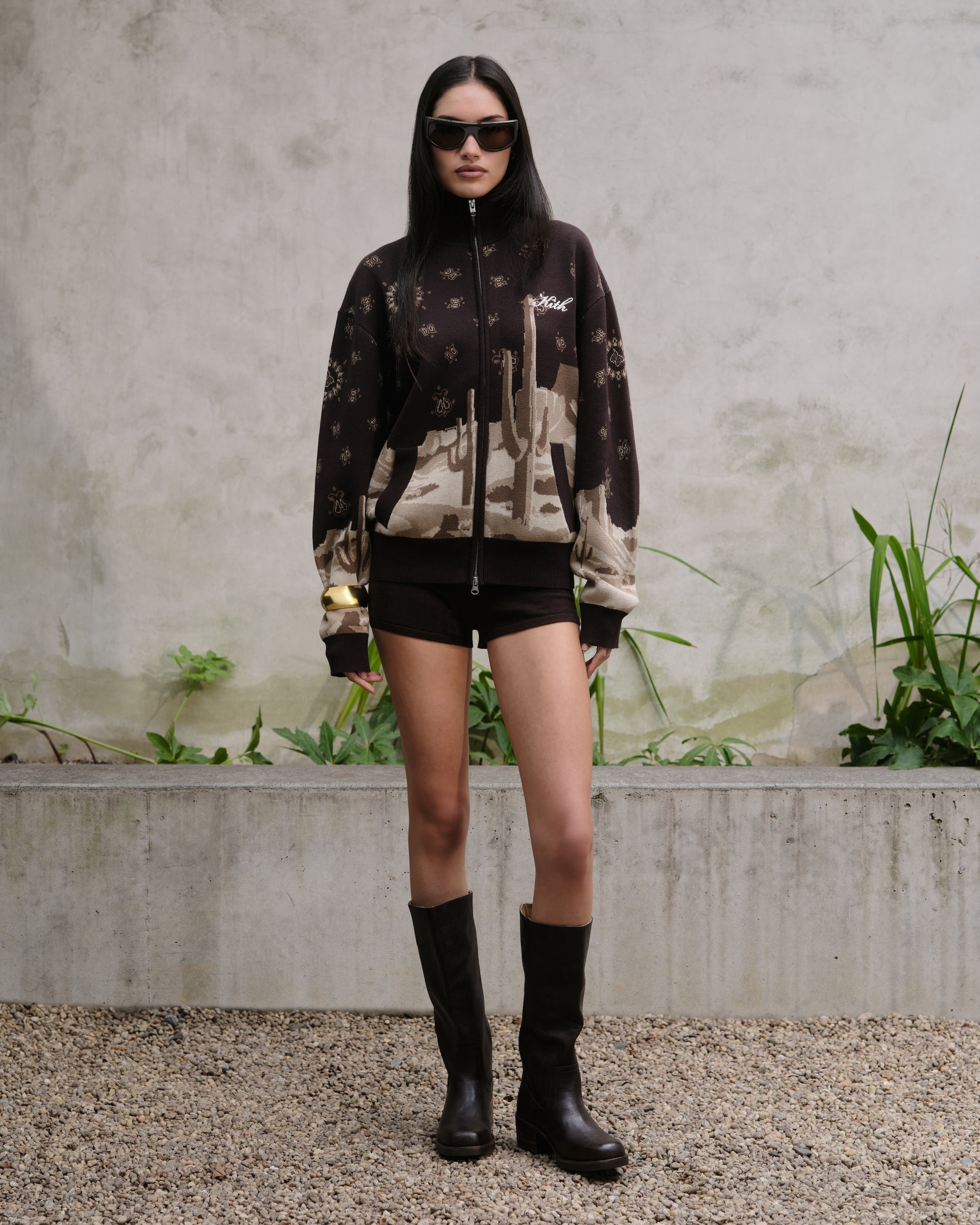 Corresponding monogram belts, seasonal beanies, snapbacks designed with ‘47 and New Era, and classic Kith Women brimmed hat silhouettes comprise this season's accessories. The collection is completed by Western-inspired statement pieces to pair with the apparel—such as the Crest Bolo Tie and the Vintage Western Buckle Leather Belt.