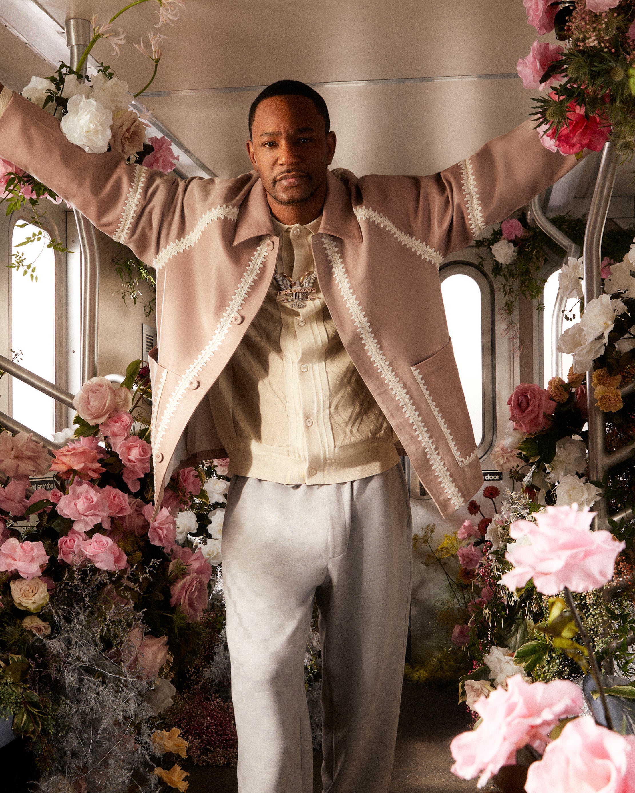 The set for the campaign and film is staged in a New York City subway car with flowers by Venus et Fleur.