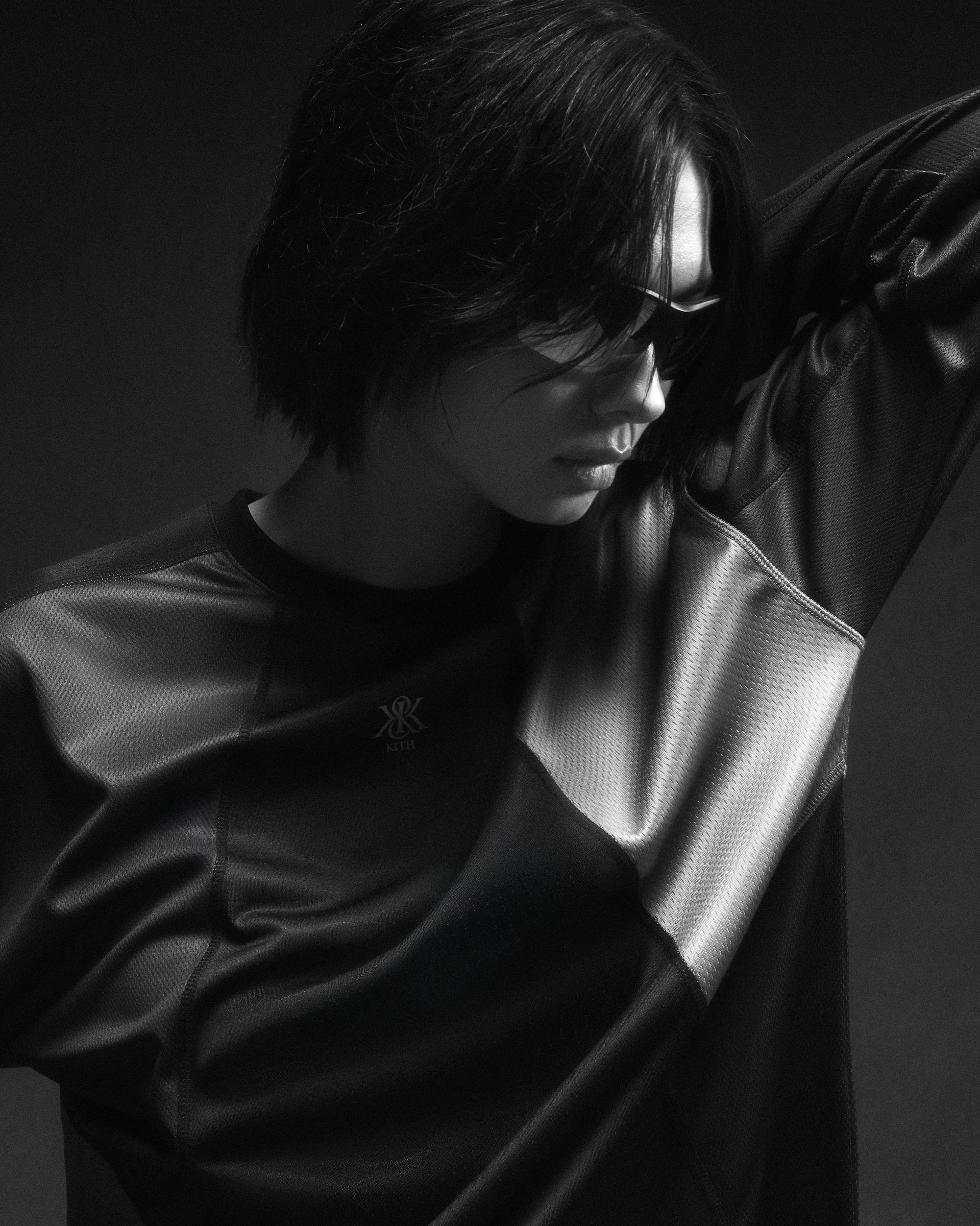 Standouts include the Nylon Bolt Shell Jacket, Panelled Donovan Tee, Engineered Slate Tee and Honeycomb Tech Heathrow Tee. The Nylon Bolt Shell Jacket is crafted of water-resistant wrinkle nylon, featuring a breathable mesh lining, bungee-adjusters at the side seams, and reflective artwork throughout. Crafted of active moisture-wicking honeycomb fabric, the Panelled Donovan Tee features a color-blocked composition, a ribbed neckline and subtle reflective Kith & Kin branding. The Engineered Slate Tee, crafted of a nylon blend, highlights engineered design line detailing, Raglan-style sleeves with thumbholes, and reflective artwork. Lastly, the Honeycomb Tech Long Sleeve Heathrow Tee is crafted of stretch polyester, featuring a ribbed neckline with K-Tech branding on the front and back.