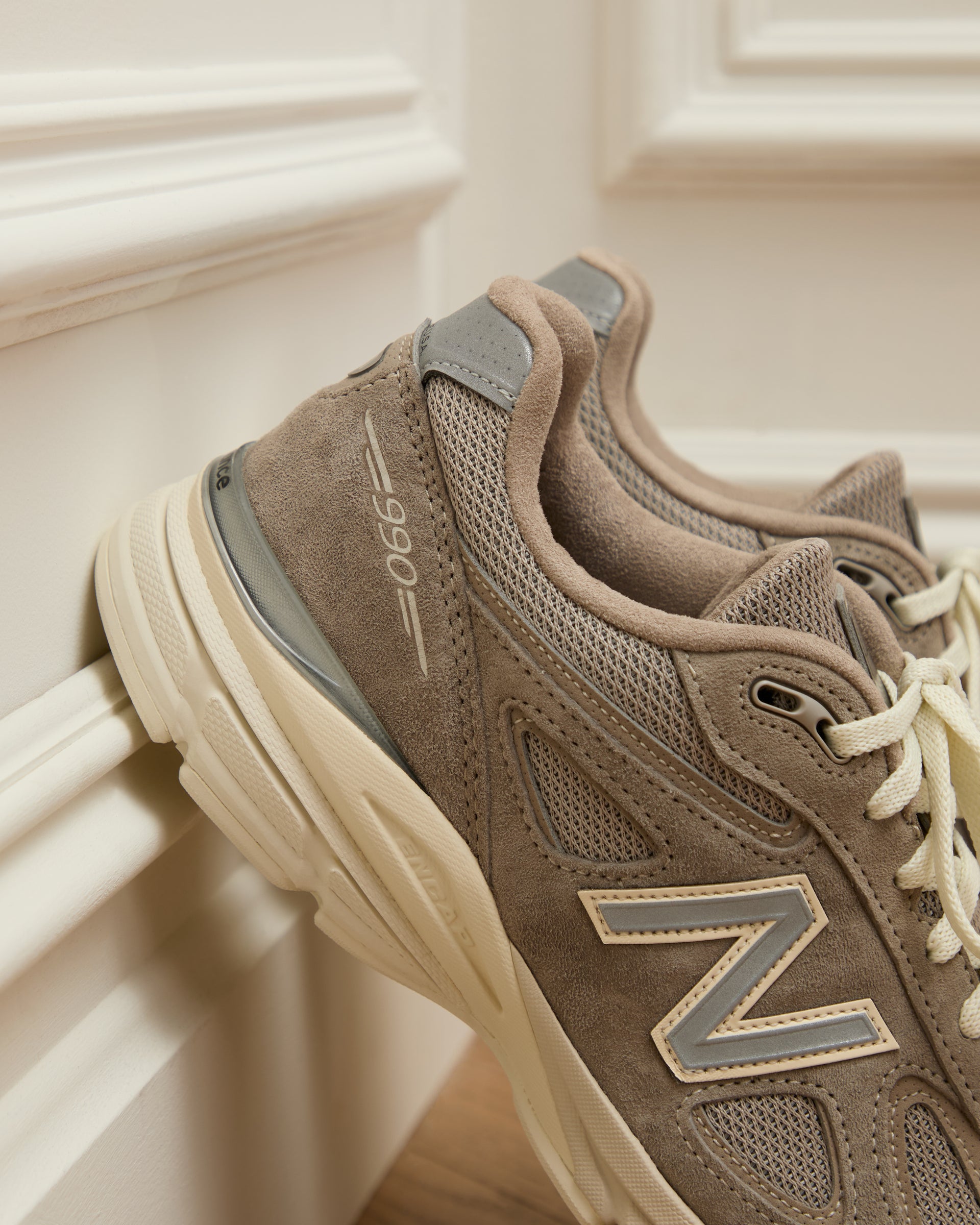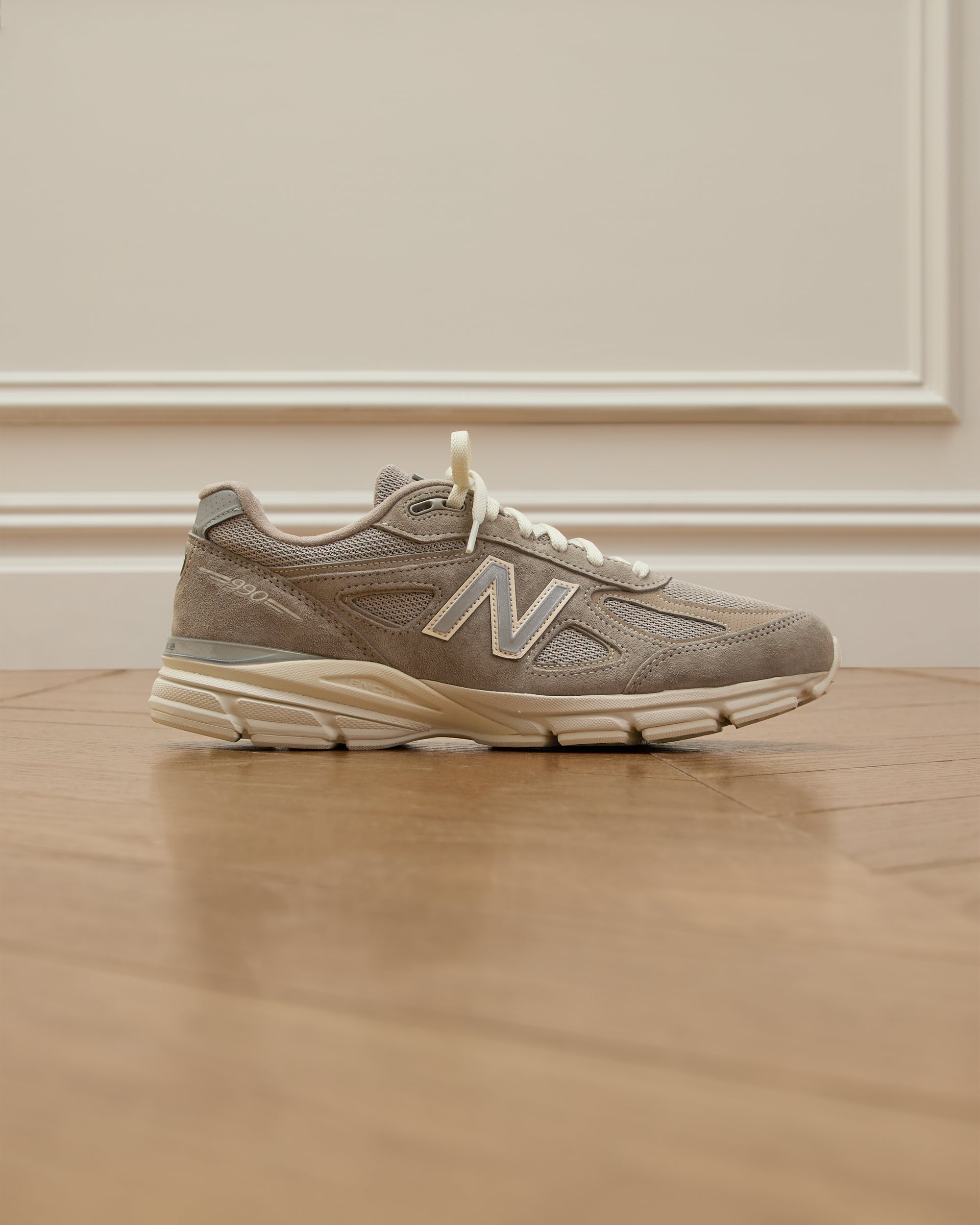 The Made in USA 990v4, crafted with a mesh upper and suede overlay, is executed in a Moonrock hue and features New Balance’s signature ENCAP midsole that provides elevated support and durability. The model is complete with 990 & Made in USA branding as well as co-branding on the sockliner.