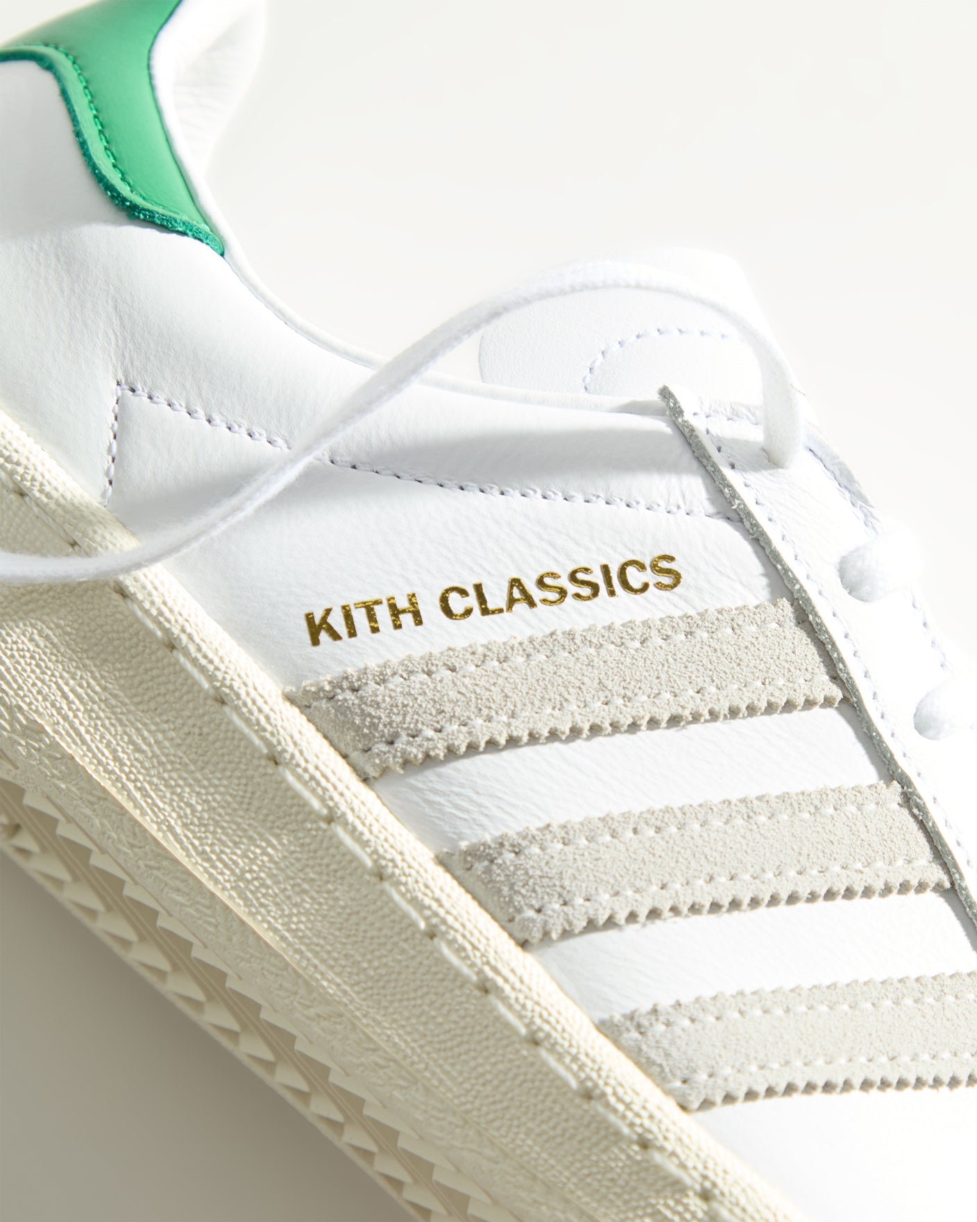 Each style is crafted from premium leather and displays subtle Kith branding with a Fairway Green accent. The Samba, Gazelle Indoor, and Campus 80s are designed with gold-foil Kith Classics branding alongside suede razor-edged adidas stripes and are complete with the Kith Classic logo adorned on the heel. The SC Premiere showcases a co-branded logo on the side panel and a suede toe wrap.