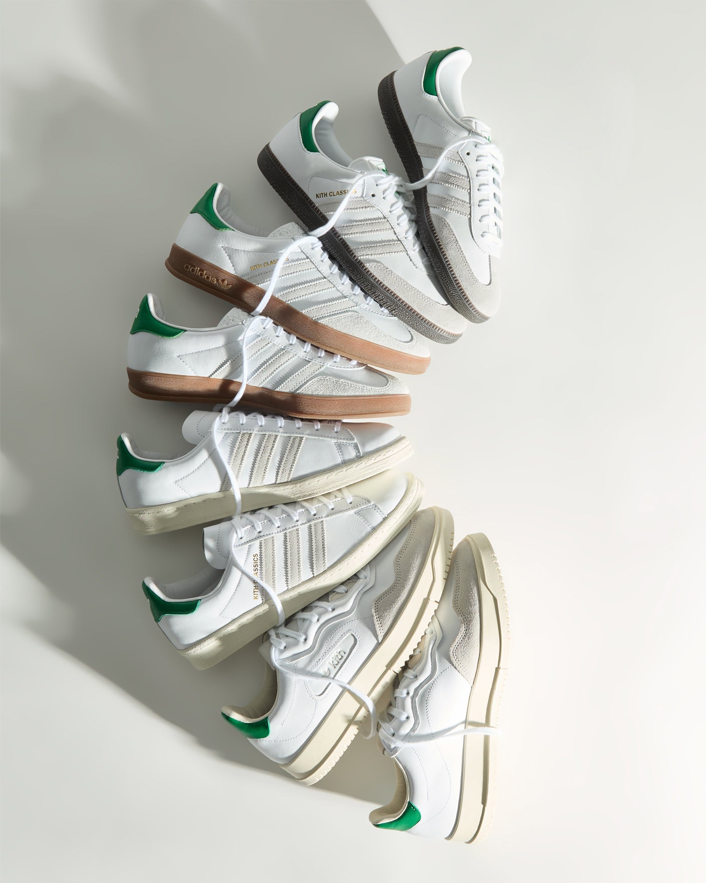 Coming SoonThe latest Kith Classics for adidas Originals seasonal installment features Fairway Green accents, welcoming in a springtime hue. Classic styles like the Samba, Gazelle Indoor, Campus 80s, and SC Premiere make a return.
