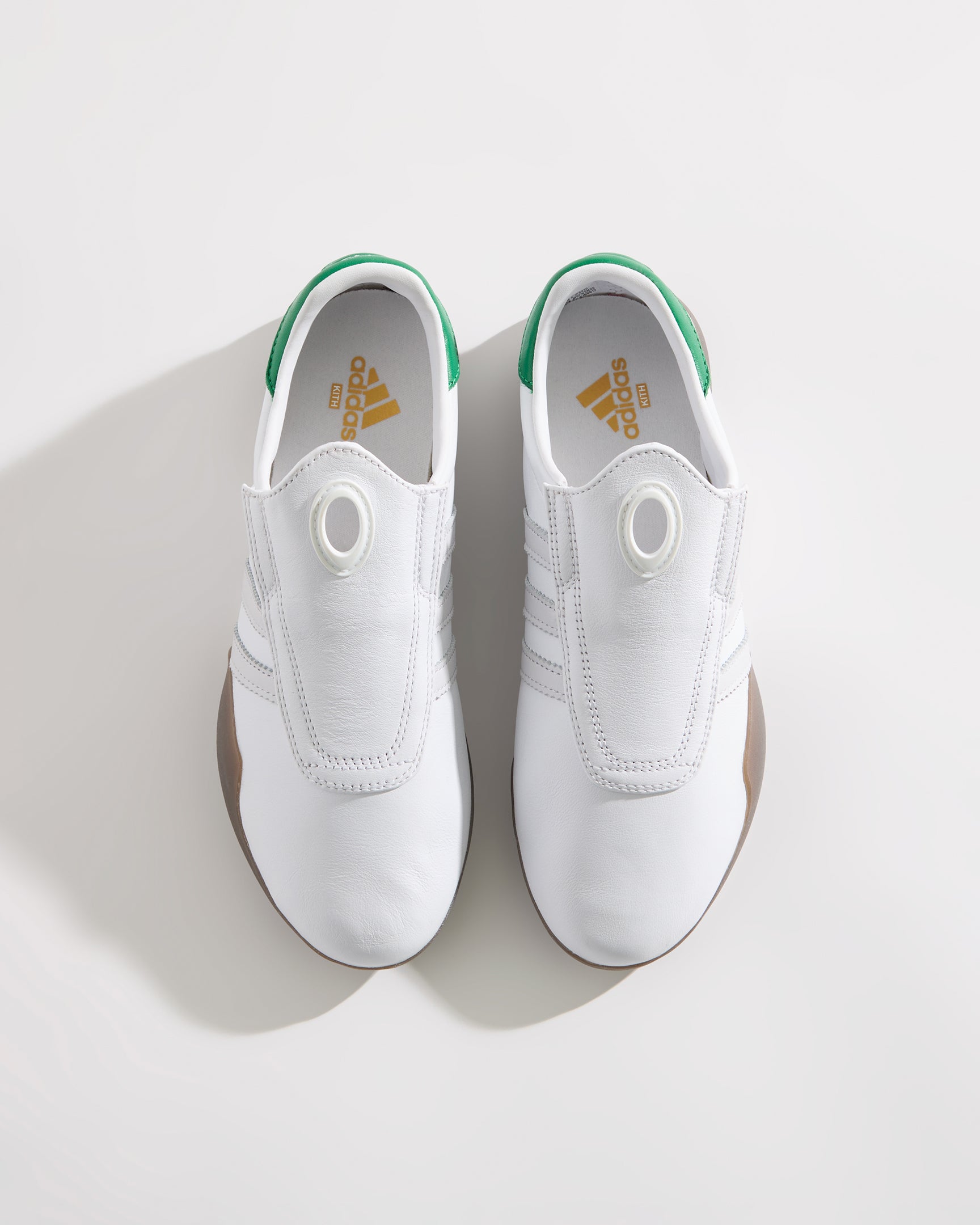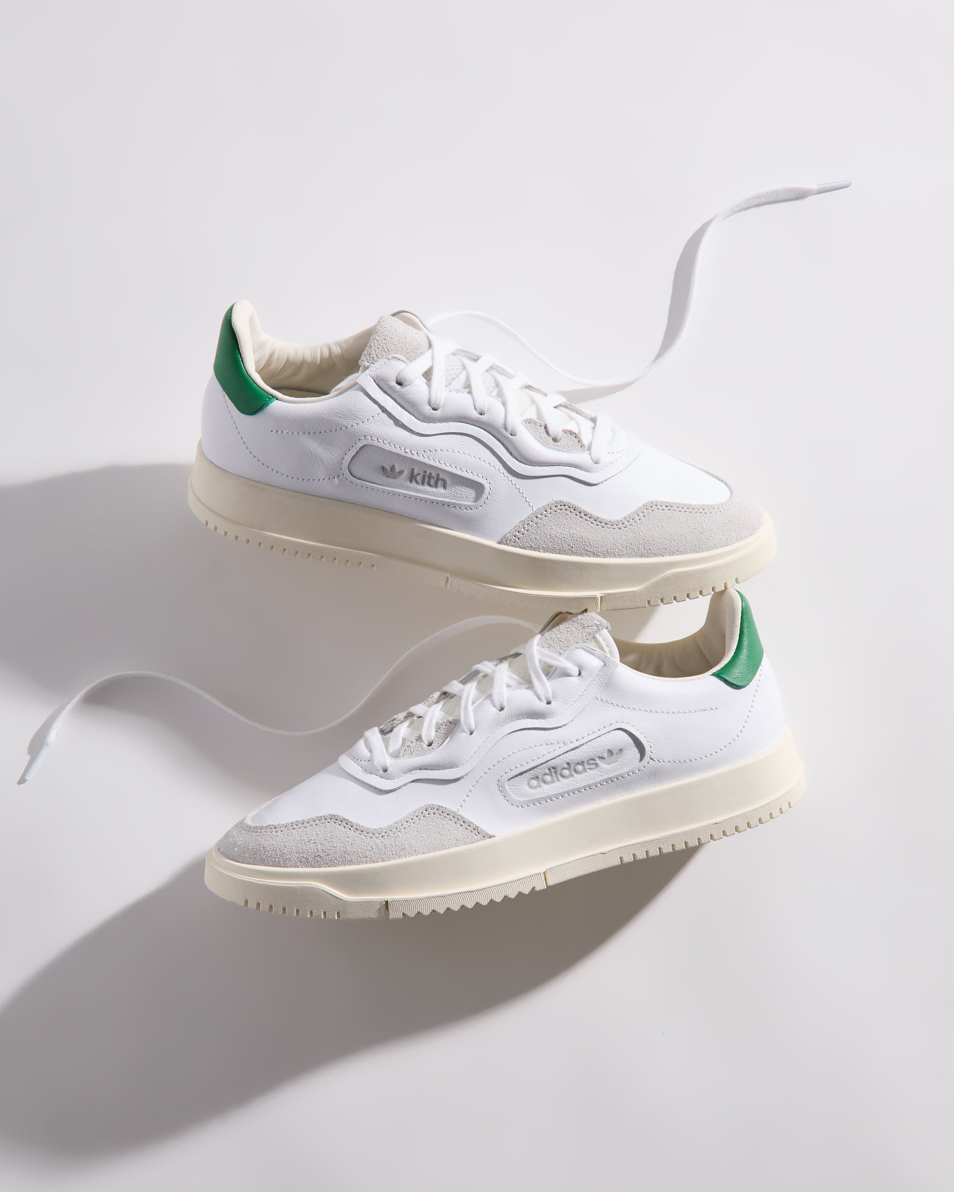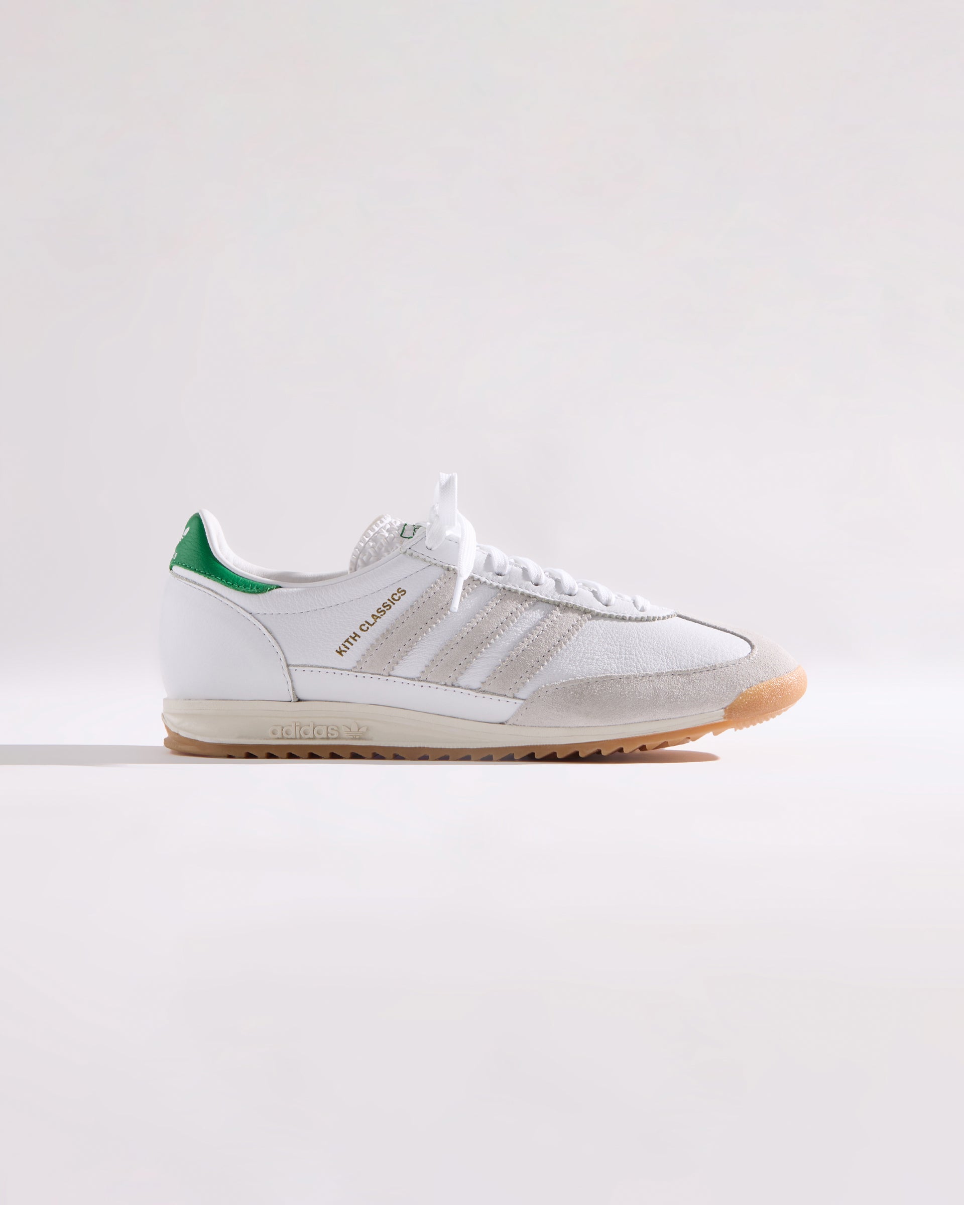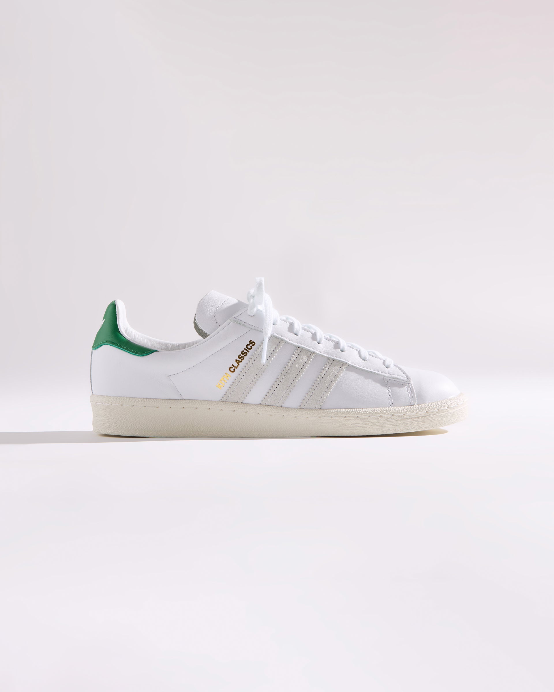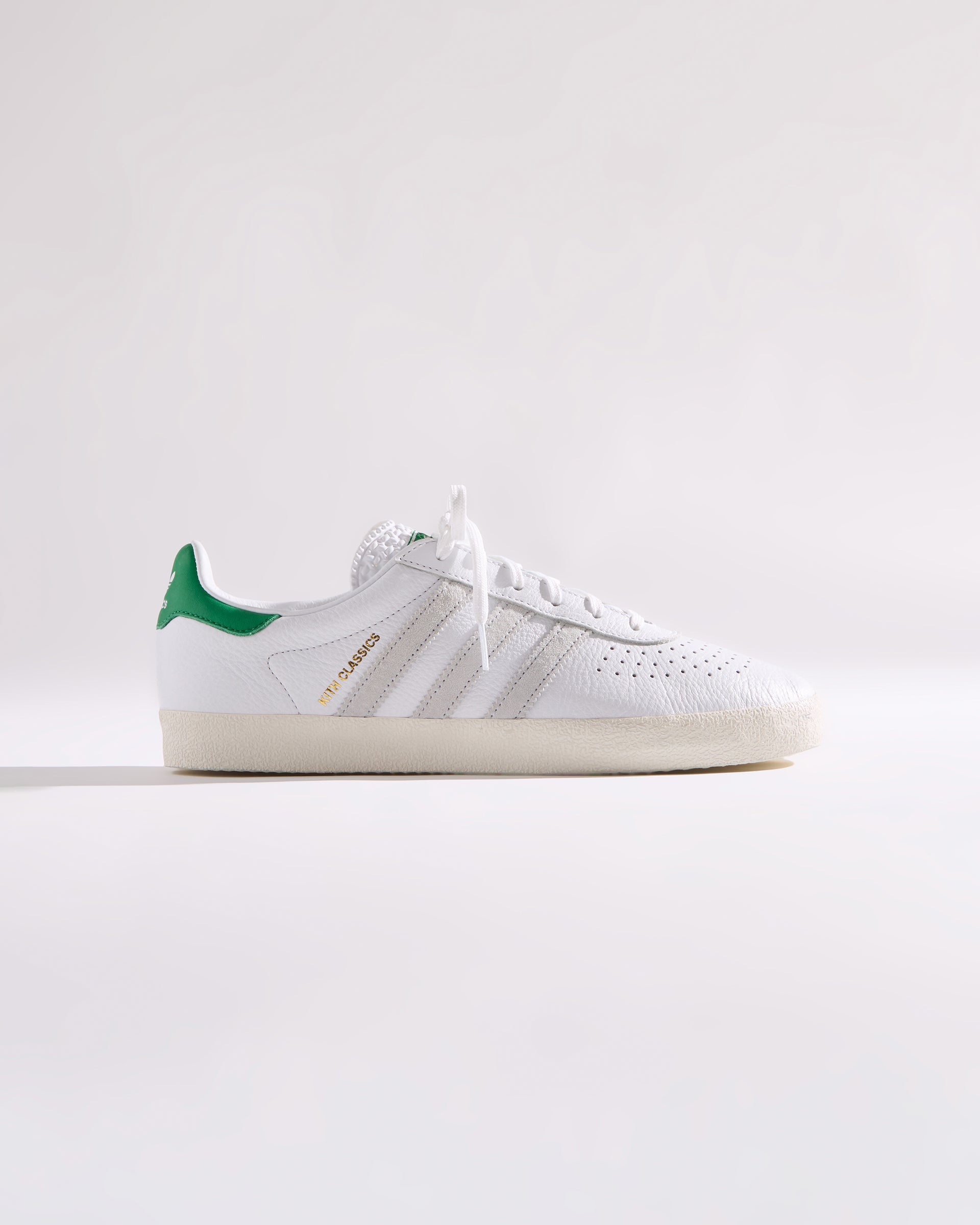 Each style is crafted from premium leather and features the Kith Classic logo with a green backdrop on the heel. Select styles showcase gold-foil Kith Classics branding alongside suede razor-edged adidas stripes.