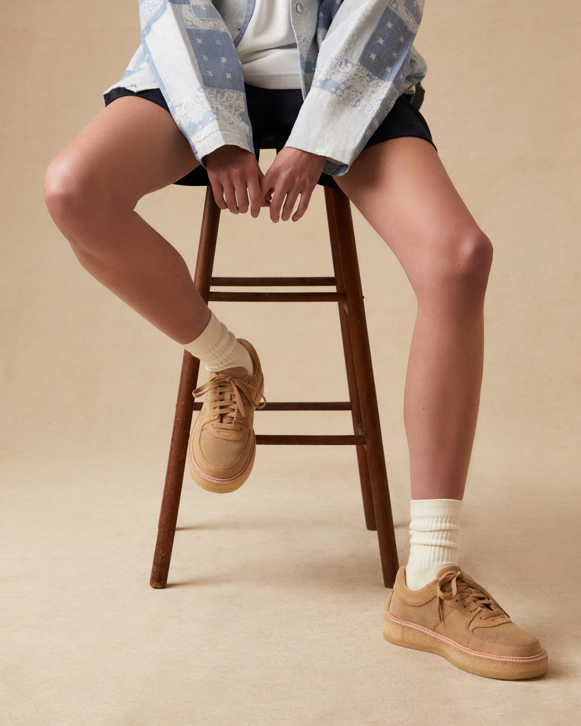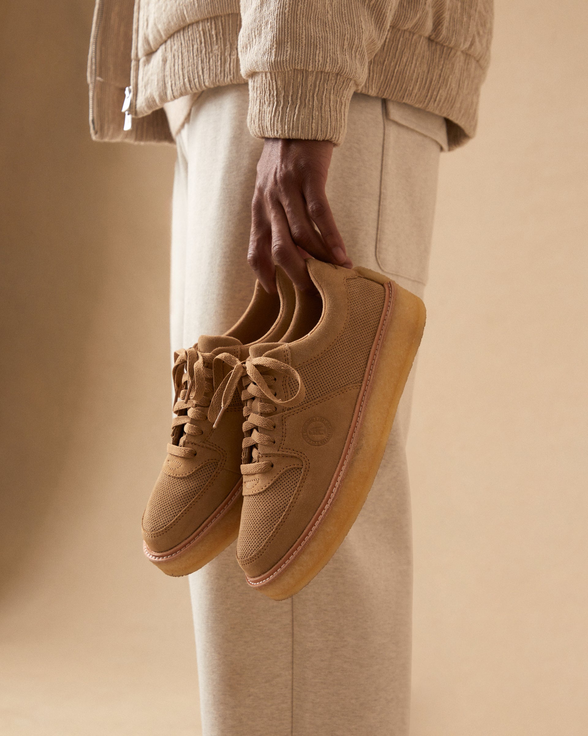 The Rossendale is a minimalistic style heavily inspired by the Wallabee that showcases the iconic Trek Man logo on the lateral side and subtle stitch detailing. The Sandford, named after Clarks’ first-ever London warehouse, is a versatile style that features debossed Clarks branding on the side panel and heel.