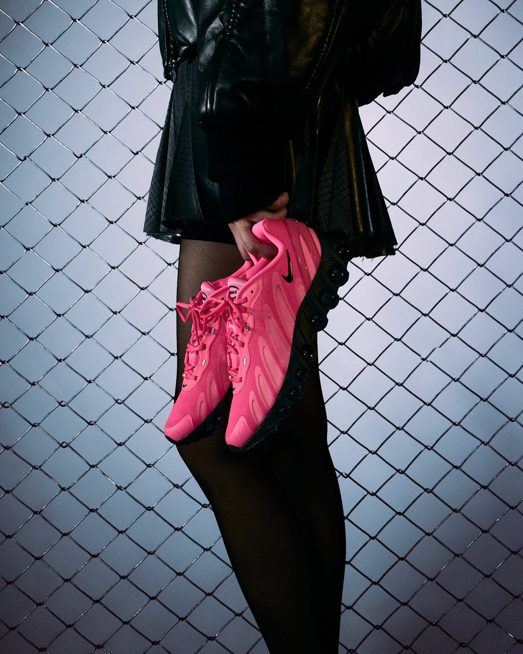 Built for athletic styling, the Air Max Dn8 has a sleek aesthetic that prioritizes lightweight, breathable materials. It’s an upgrade from Nike’s Air Max Dn—showcasing eight all-new pressurized Air tubes that provide a responsive sensation with every step. The model is seen in a bold “Hyper Pink” colorway.