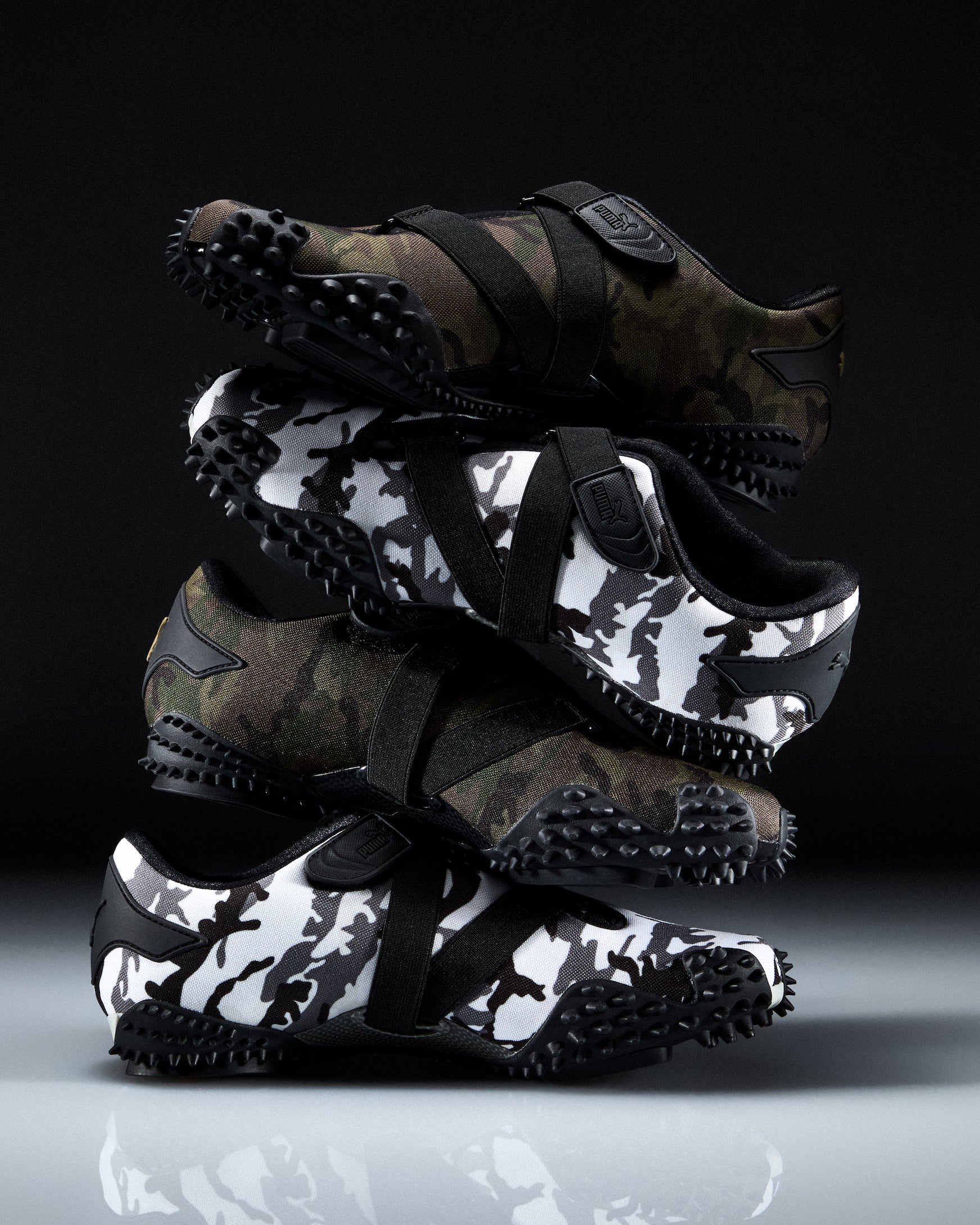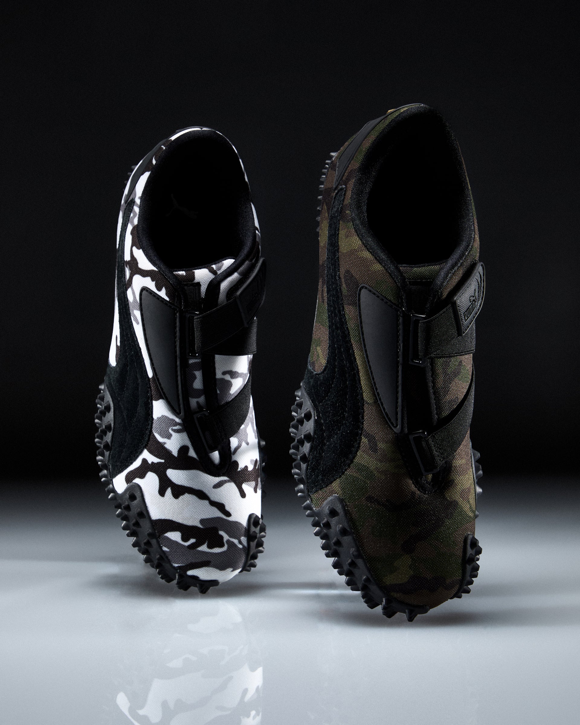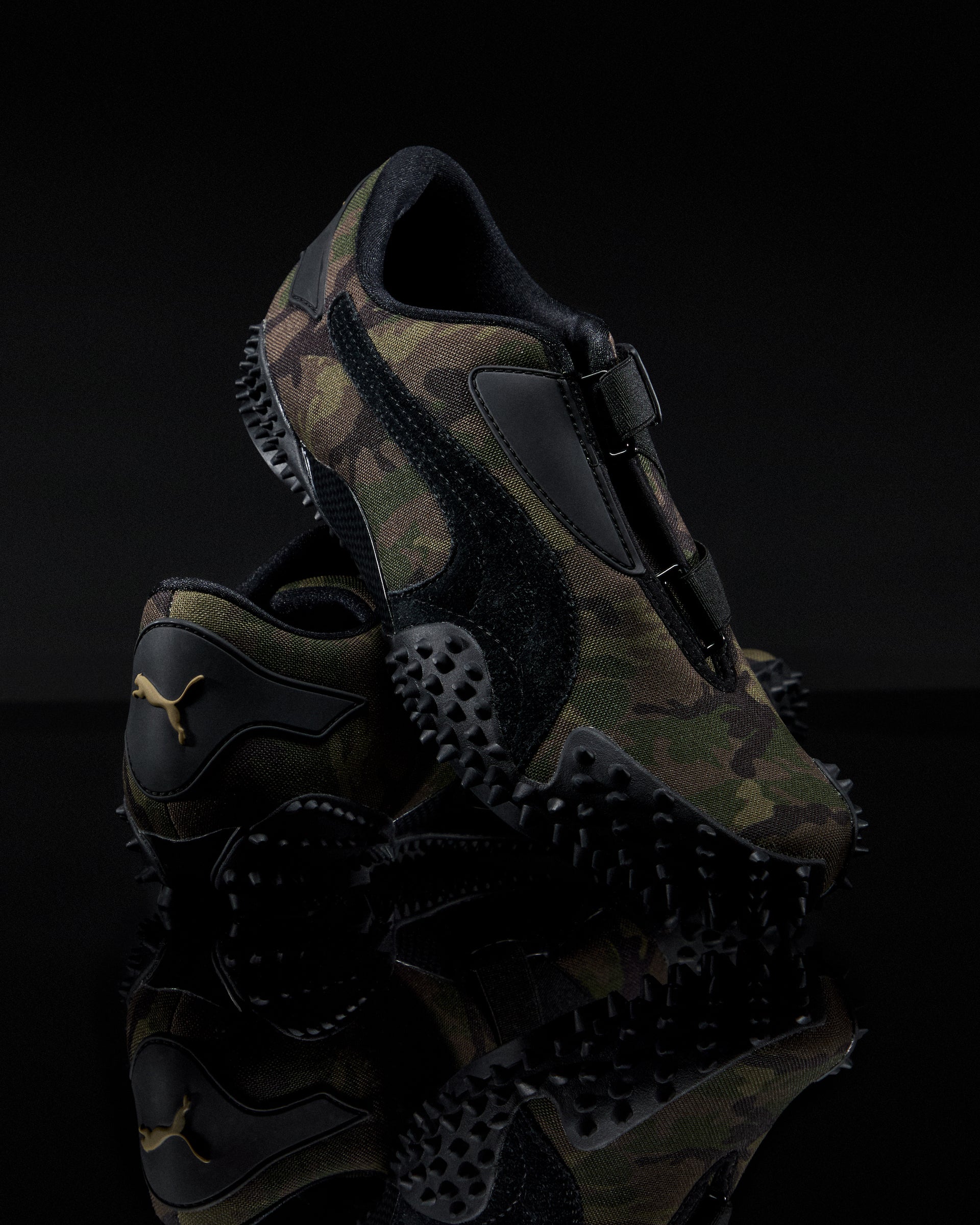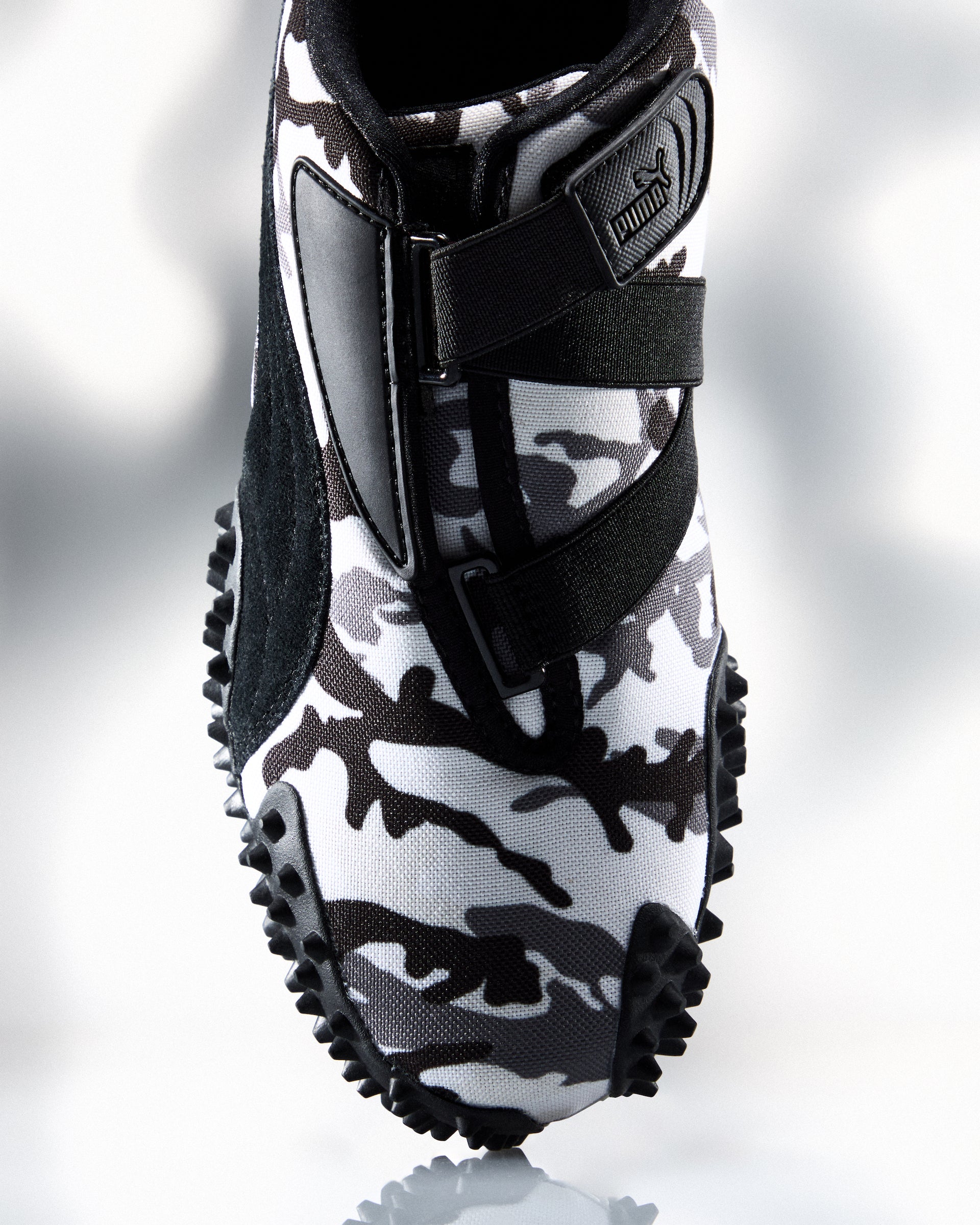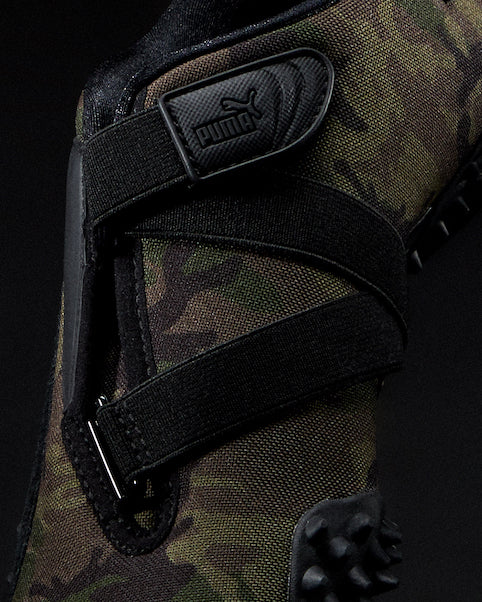 Today, the iconic archival silhouette is offered in two digital camo print executions. It features a canvas upper, suede PUMA formstripe, and an adjustable Velcro strap for a customizable fit. The model is complete with its signature spike rubber outsole and PUMA branding on the heel.