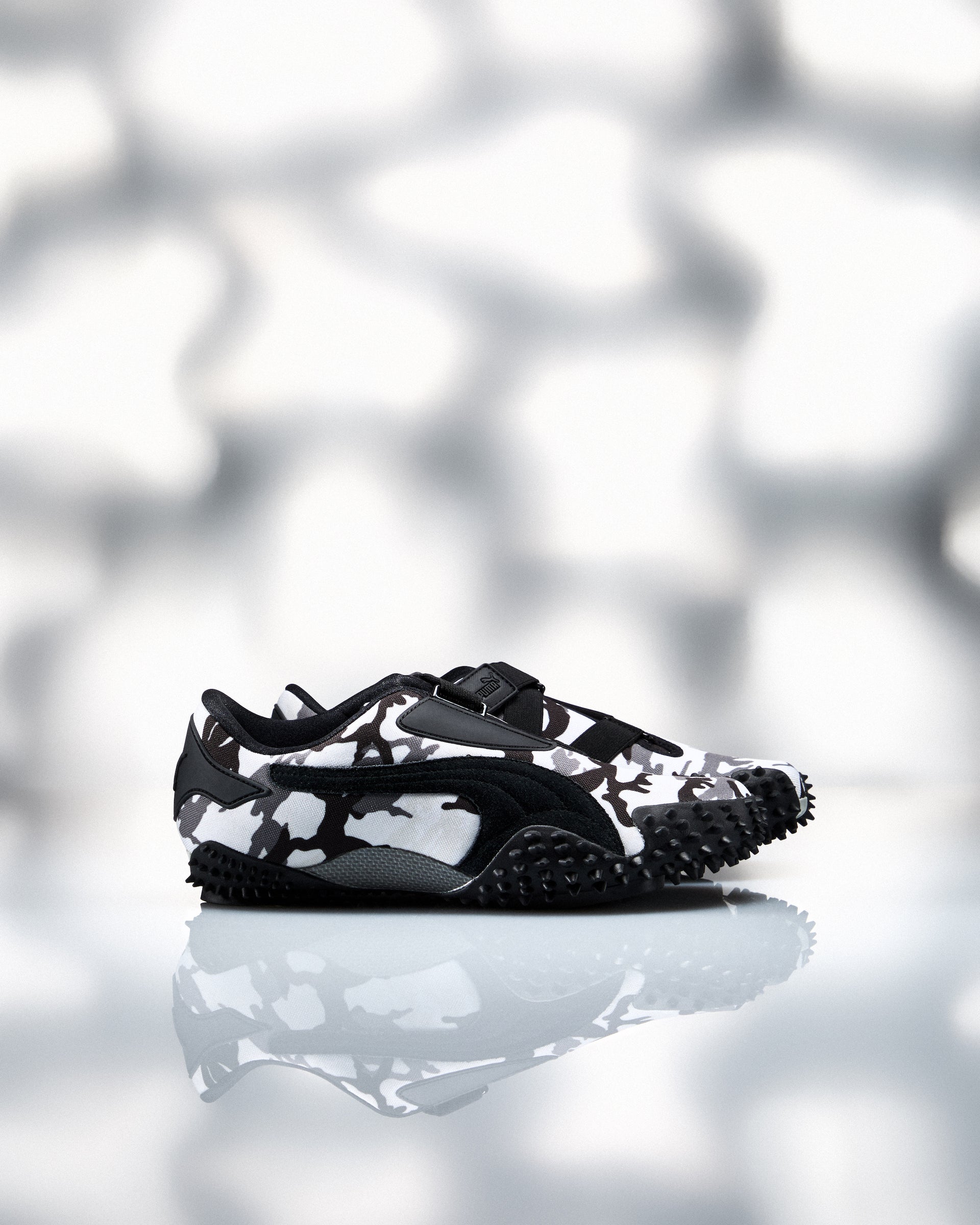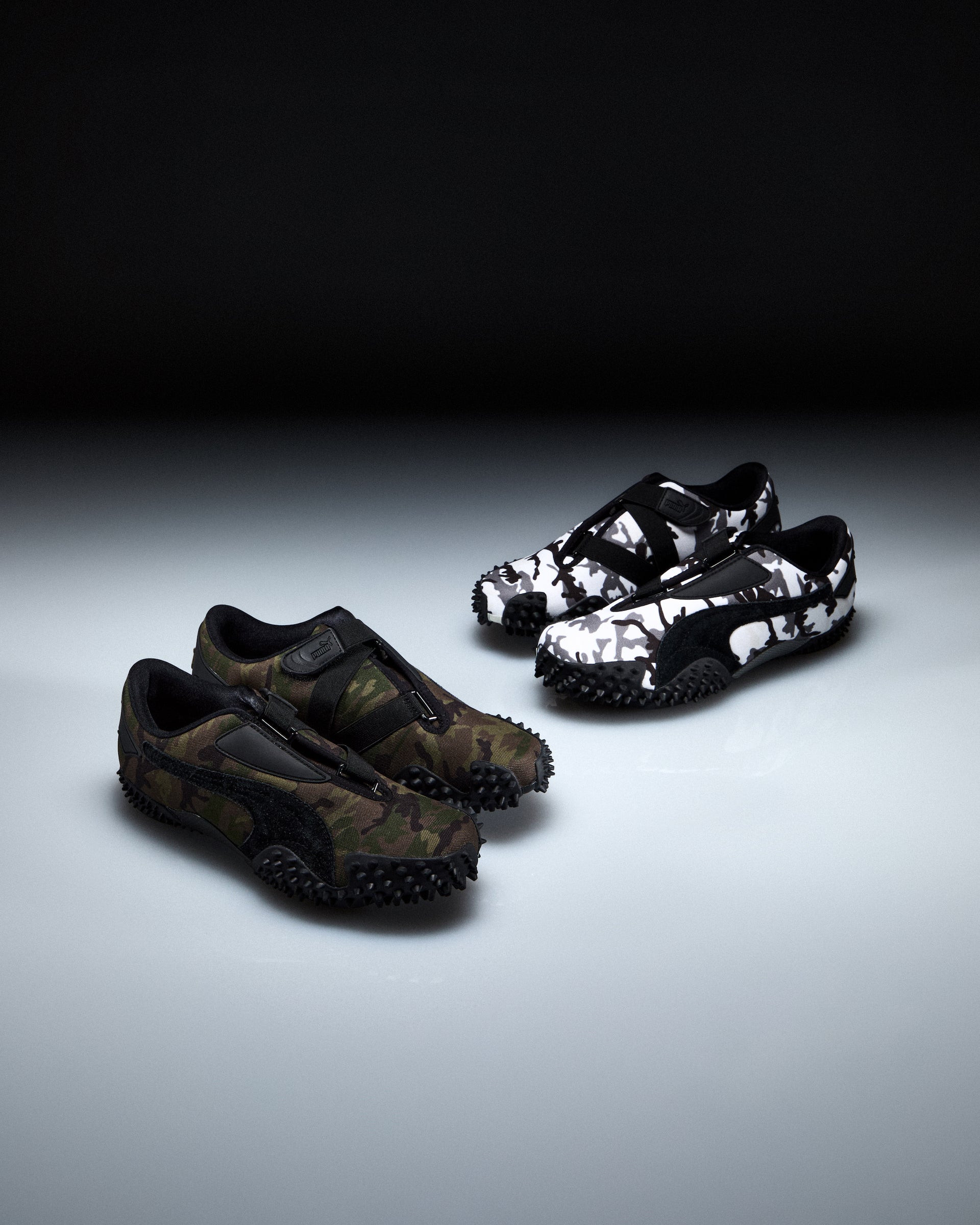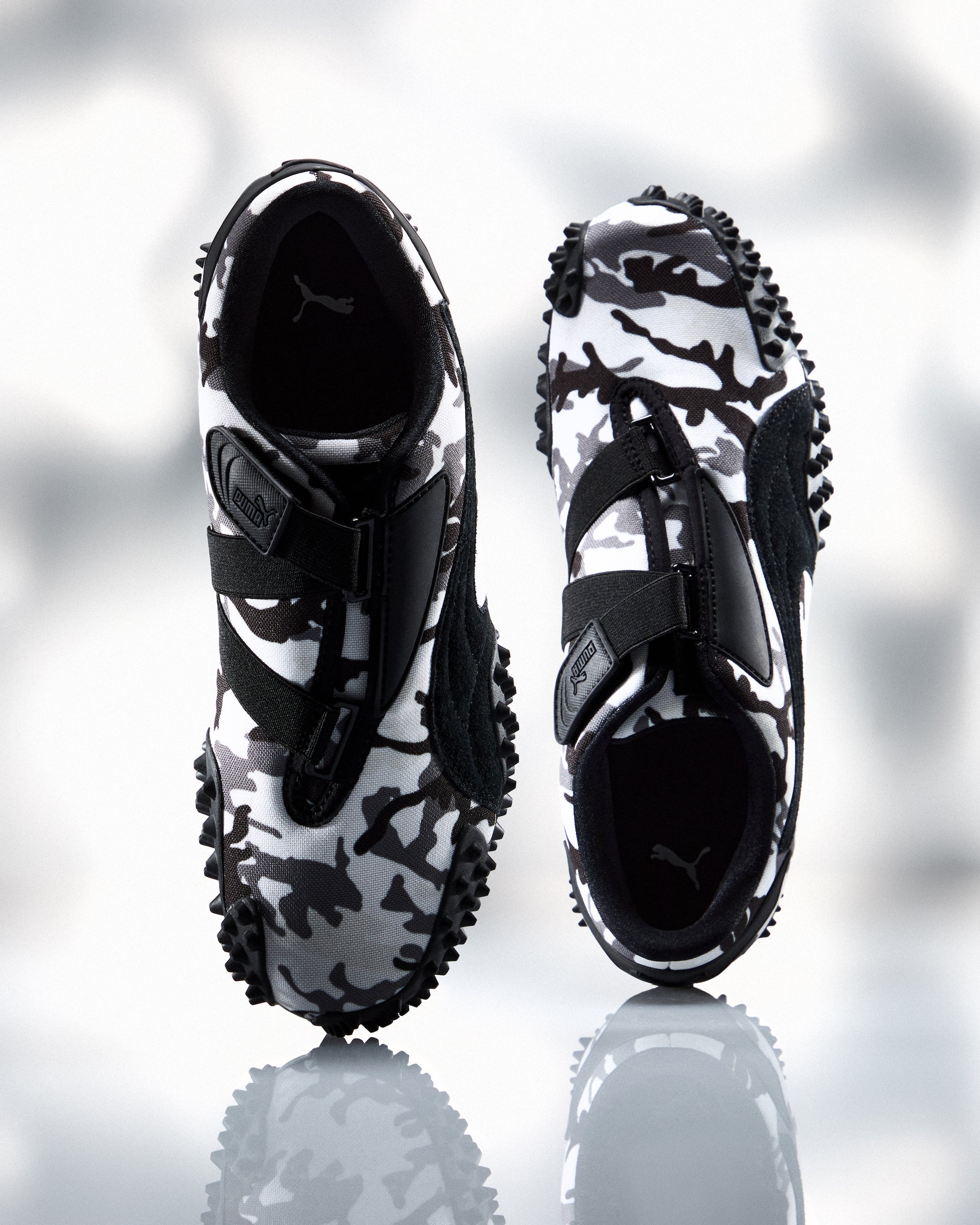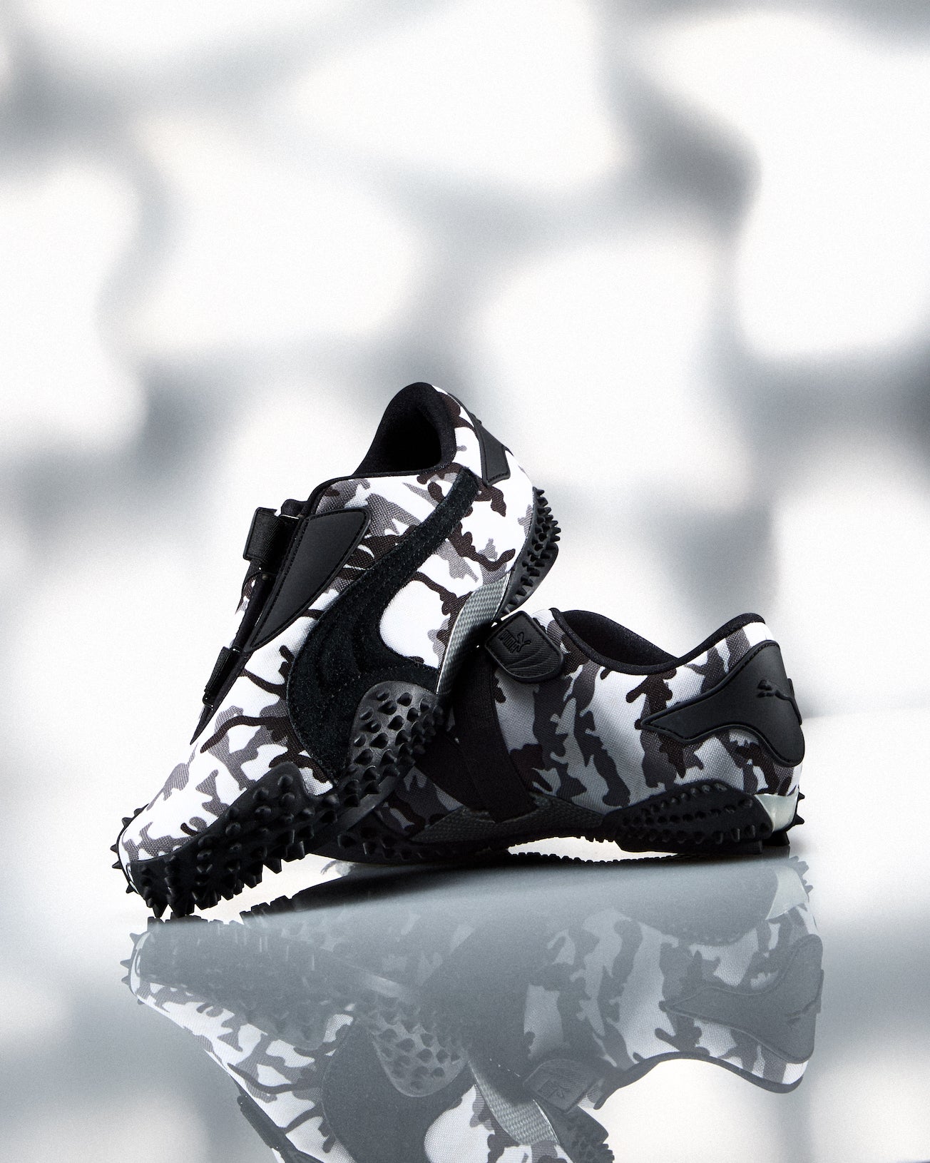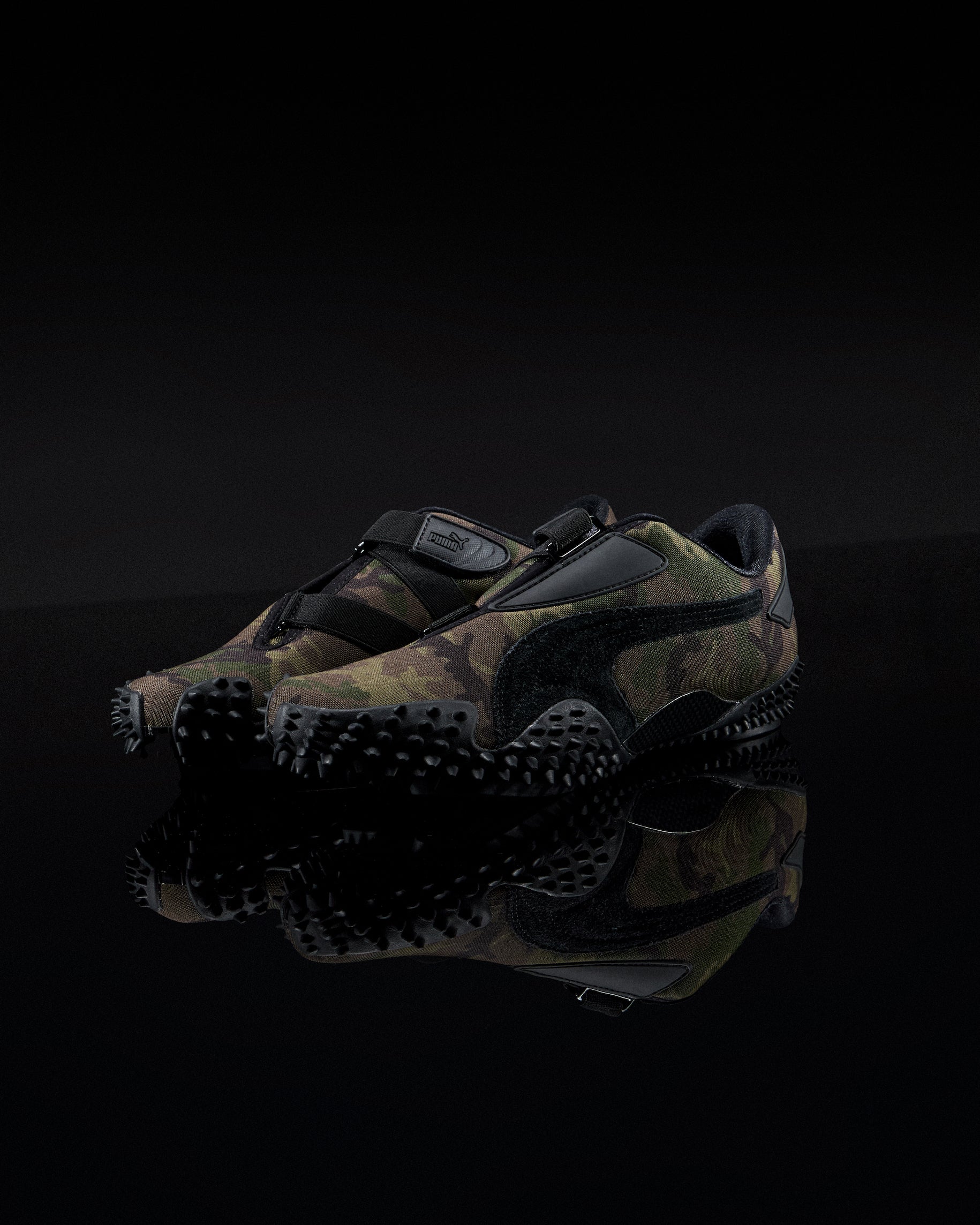 Today, the iconic archival silhouette is offered in two digital camo print executions. It features a canvas upper, suede PUMA formstripe, and an adjustable Velcro strap for a customizable fit. The model is complete with its signature spike rubber outsole and PUMA branding on the heel.