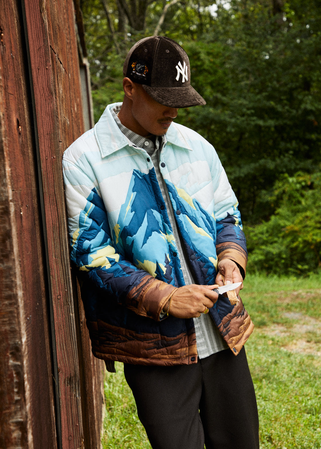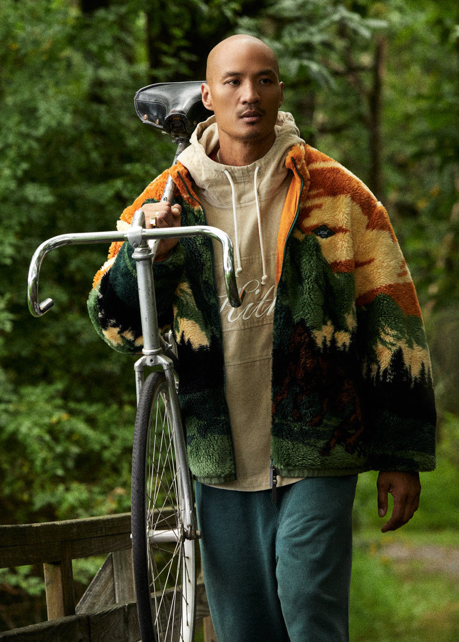 This collection allows for versatile wardrobing and consists of outerwear, tailored shirting, seasonal knitwear, core trousers & shorts, and a variety of accessories. Elevated fabrics are seen throughout—Nappa leather, suede, shearling, chenille, quilted cotton, chunky cotton yarn and more. Each piece is uplifted by the seasonal Kith Palette, mainly consisting of foundational Kith colors such as Nocturnal, Stadium, and Black. The palette also introduces pops of red, yellow and orange hues to add radiance to select styles.