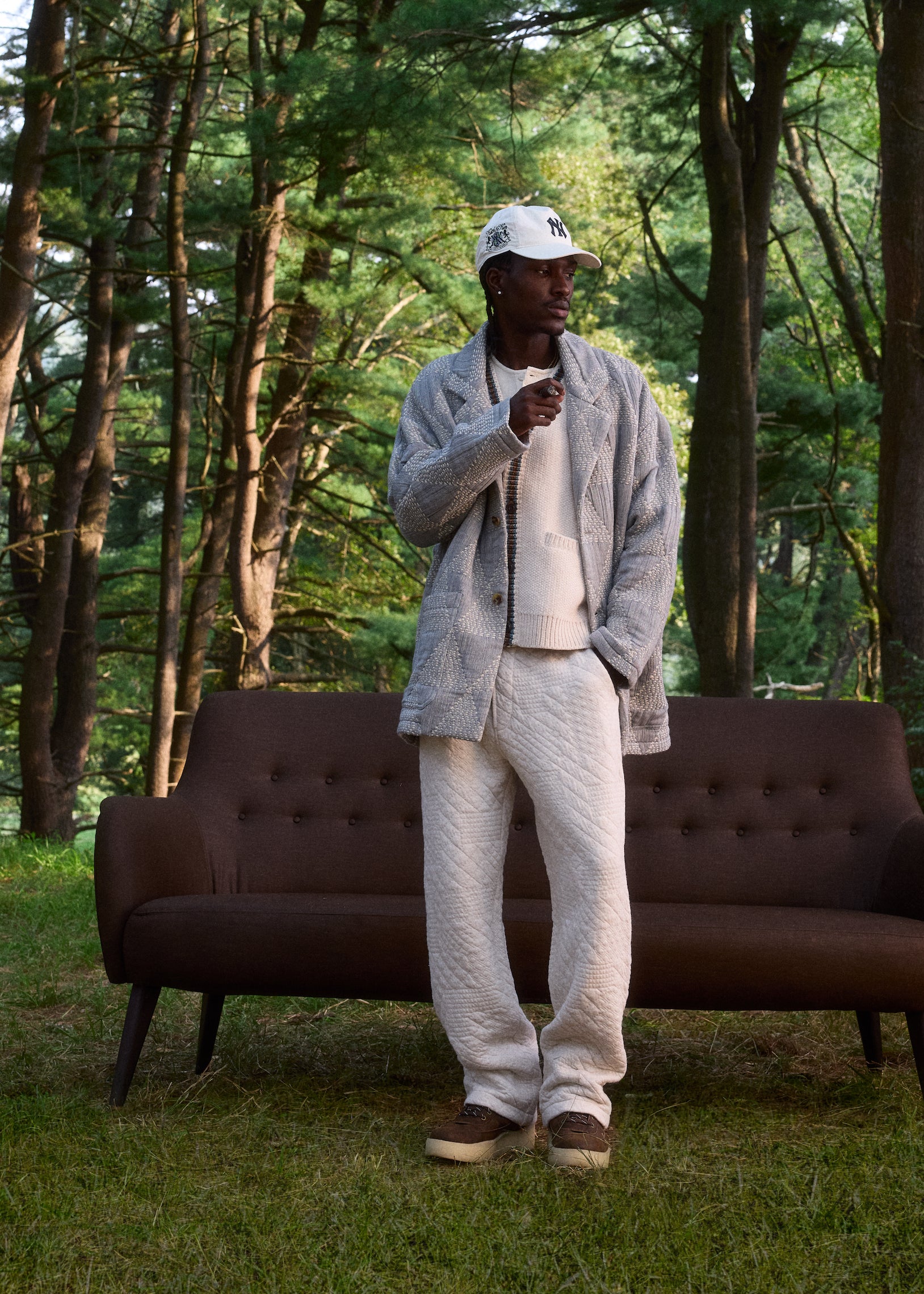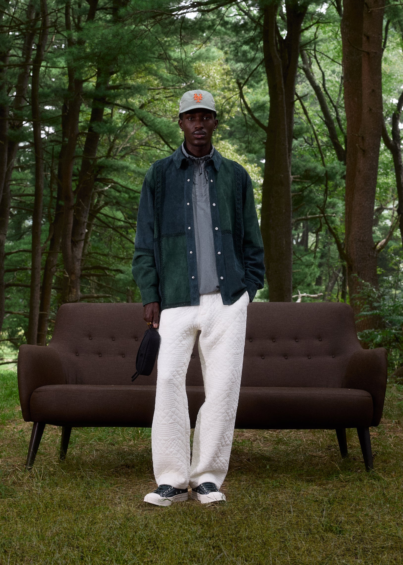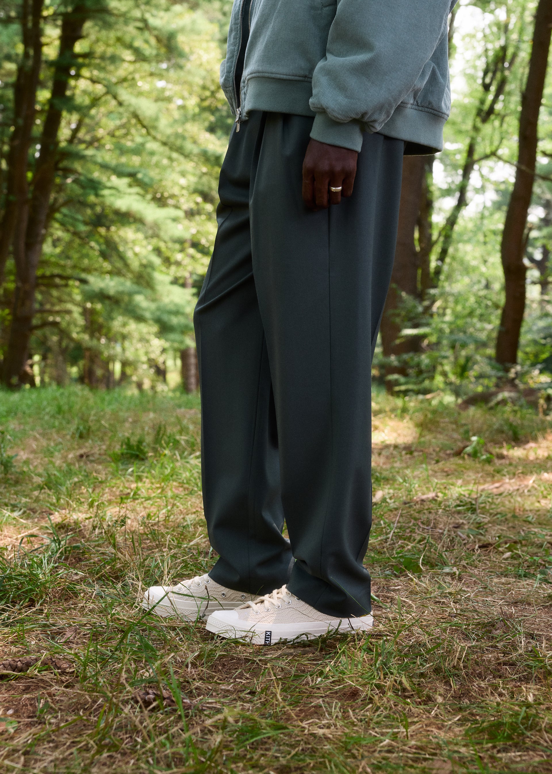 Versatility was placed at the forefront when developing this collection. The apparel comprises seasonal outerwear, suiting, shirting, knitwear, and sets executed with all-new designs, hues and fabrics. Premium fabrics in seasonal weights are seen throughout—including Italian suede, shearling, vintage satin, tweed, crochet yarn and double-faced tricot. The Kith Palette returns to classics like Sandrift, Nocturnal and Stadium alongside autumn hues like Almandine, Algae, Innate and Sandy Heather.