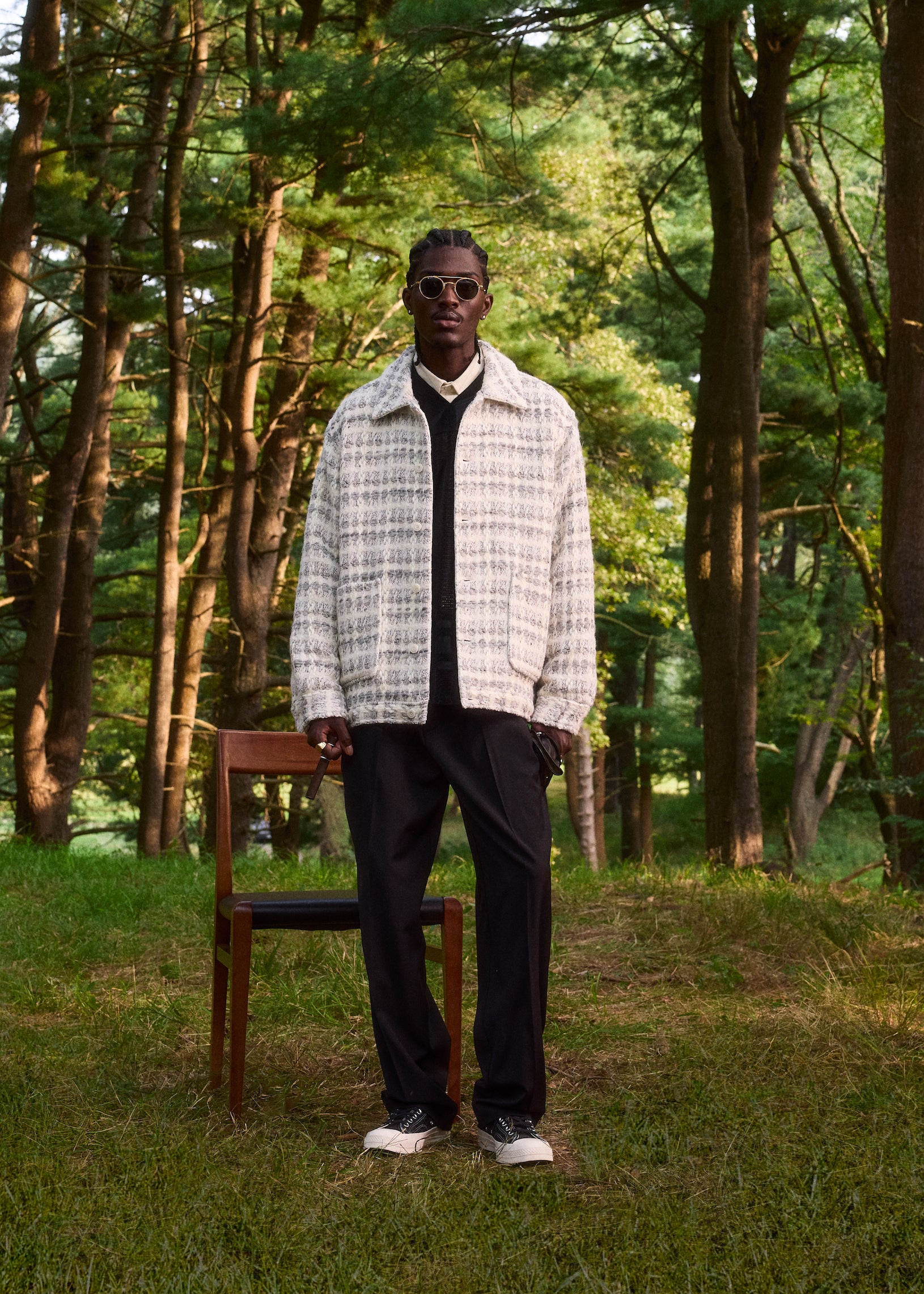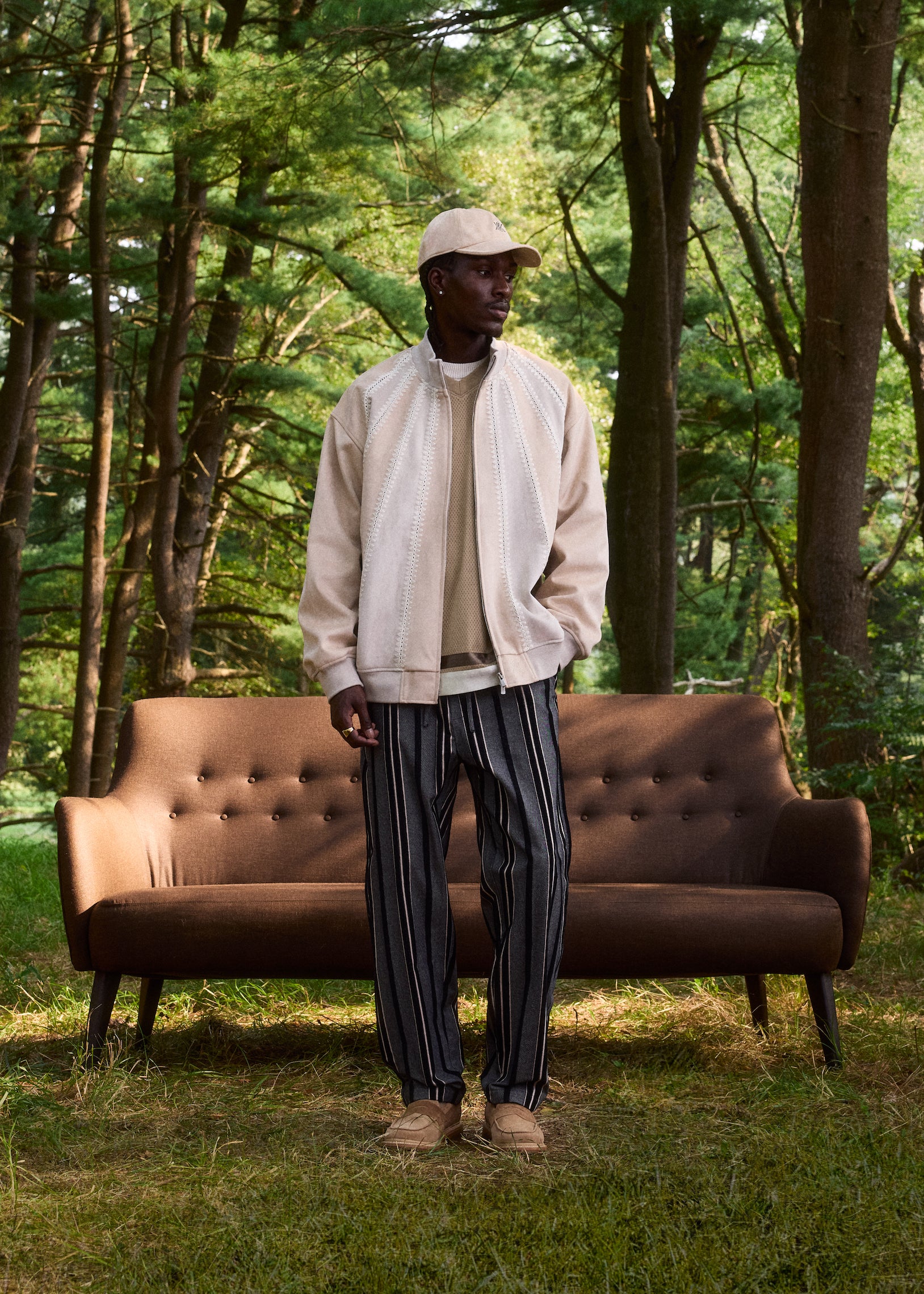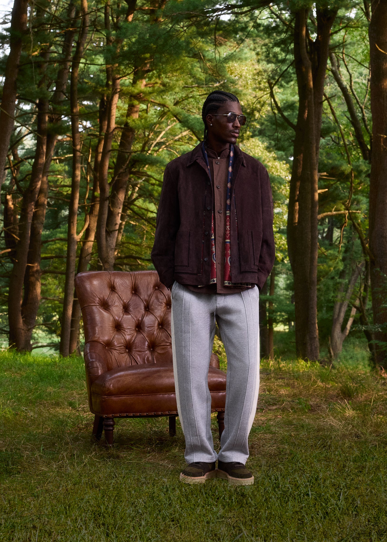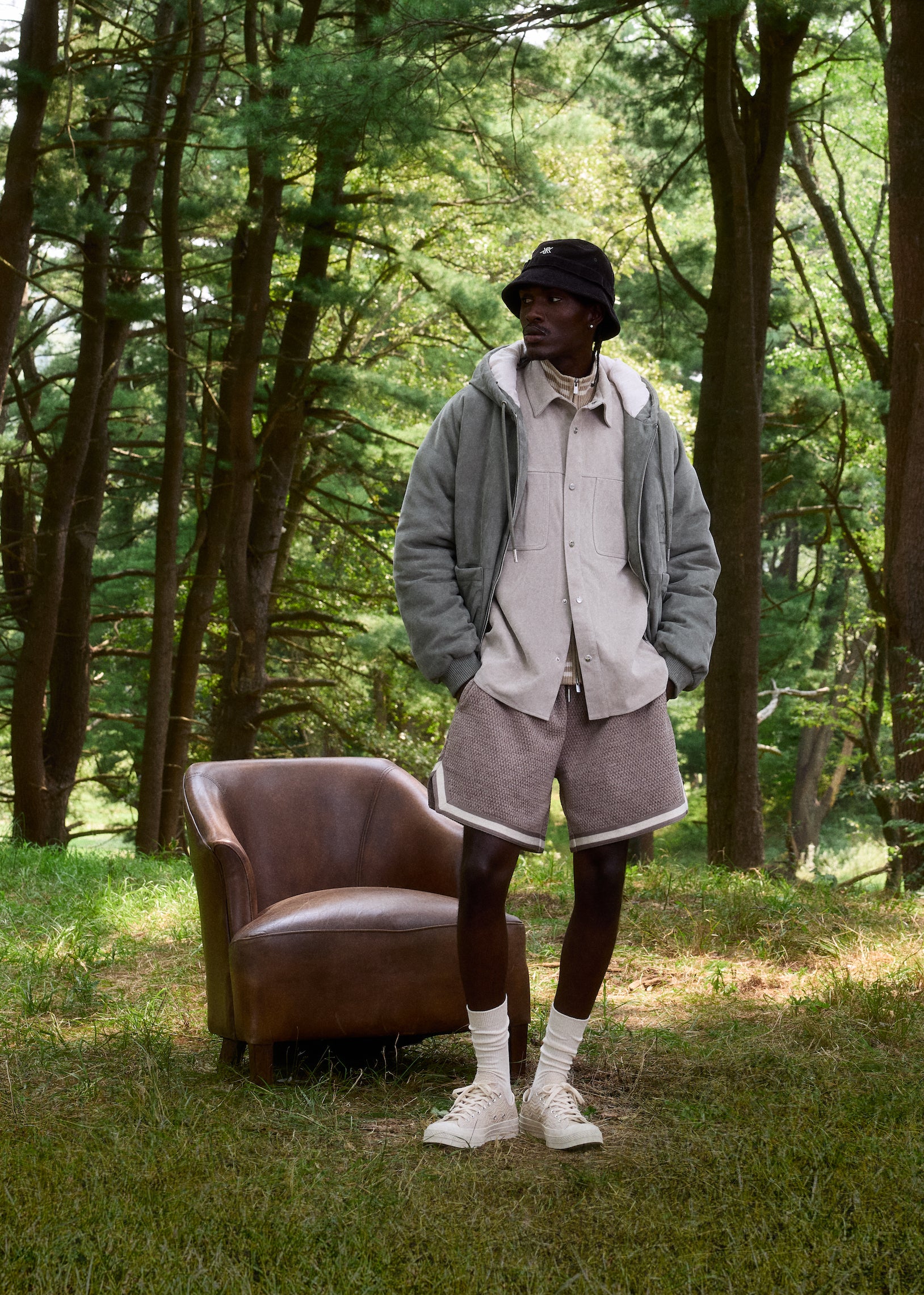 Versatility was placed at the forefront when developing this collection. The apparel comprises seasonal outerwear, suiting, shirting, knitwear, and sets executed with all-new designs, hues and fabrics. Premium fabrics in seasonal weights are seen throughout—including Italian suede, shearling, vintage satin, tweed, crochet yarn and double-faced tricot. The Kith Palette returns to classics like Sandrift, Nocturnal and Stadium alongside autumn hues like Almandine, Algae, Innate and Sandy Heather.