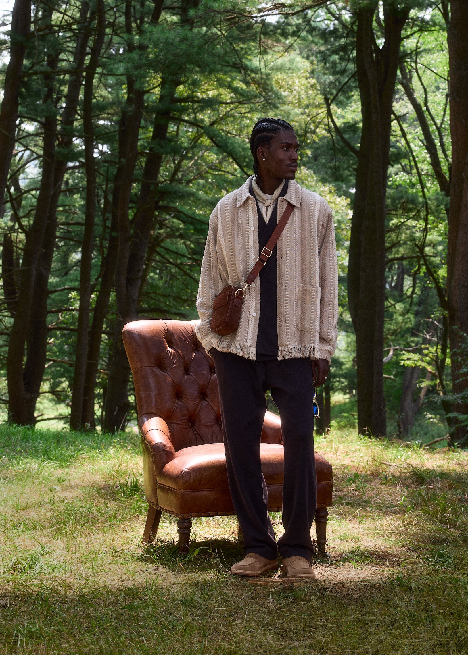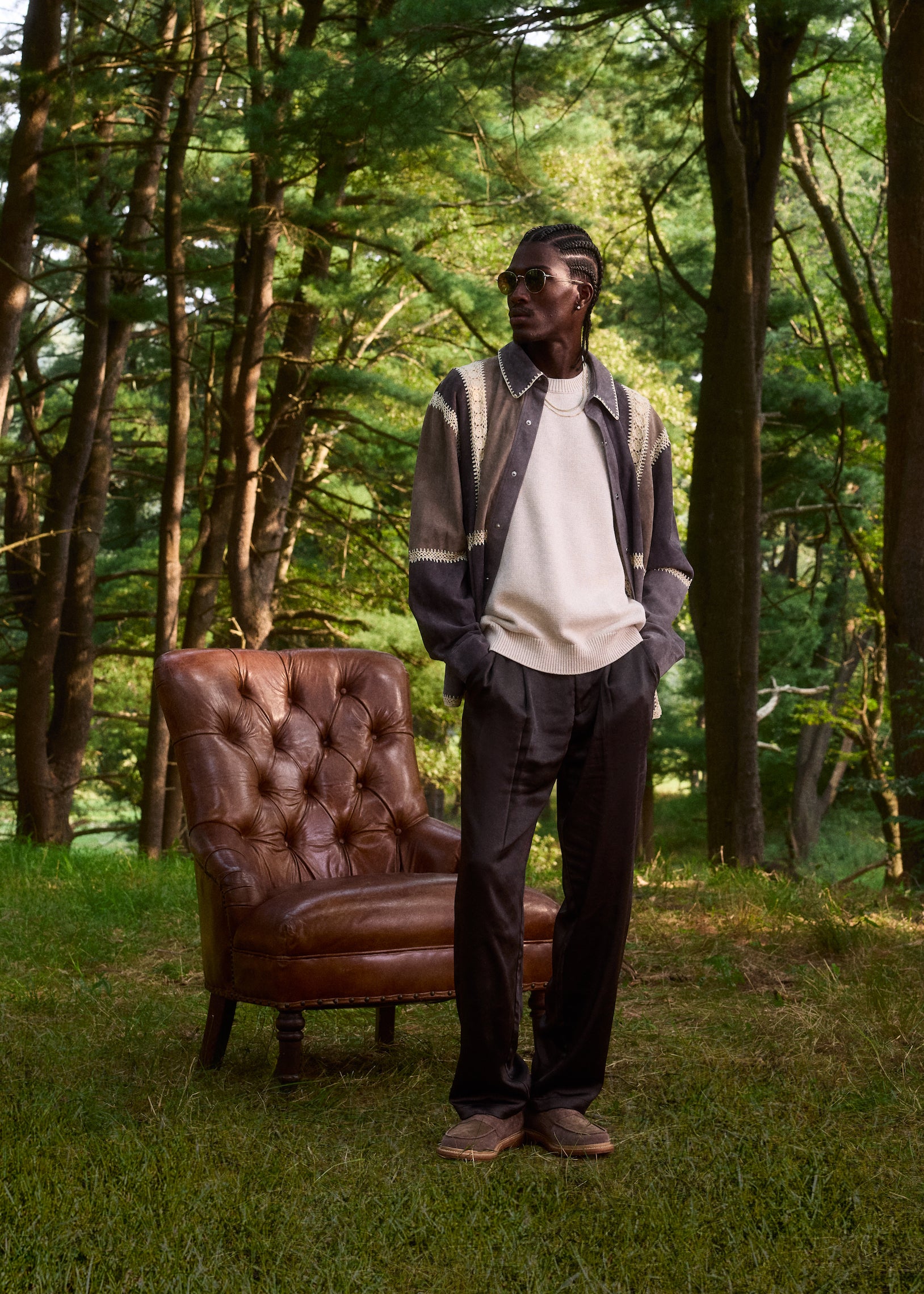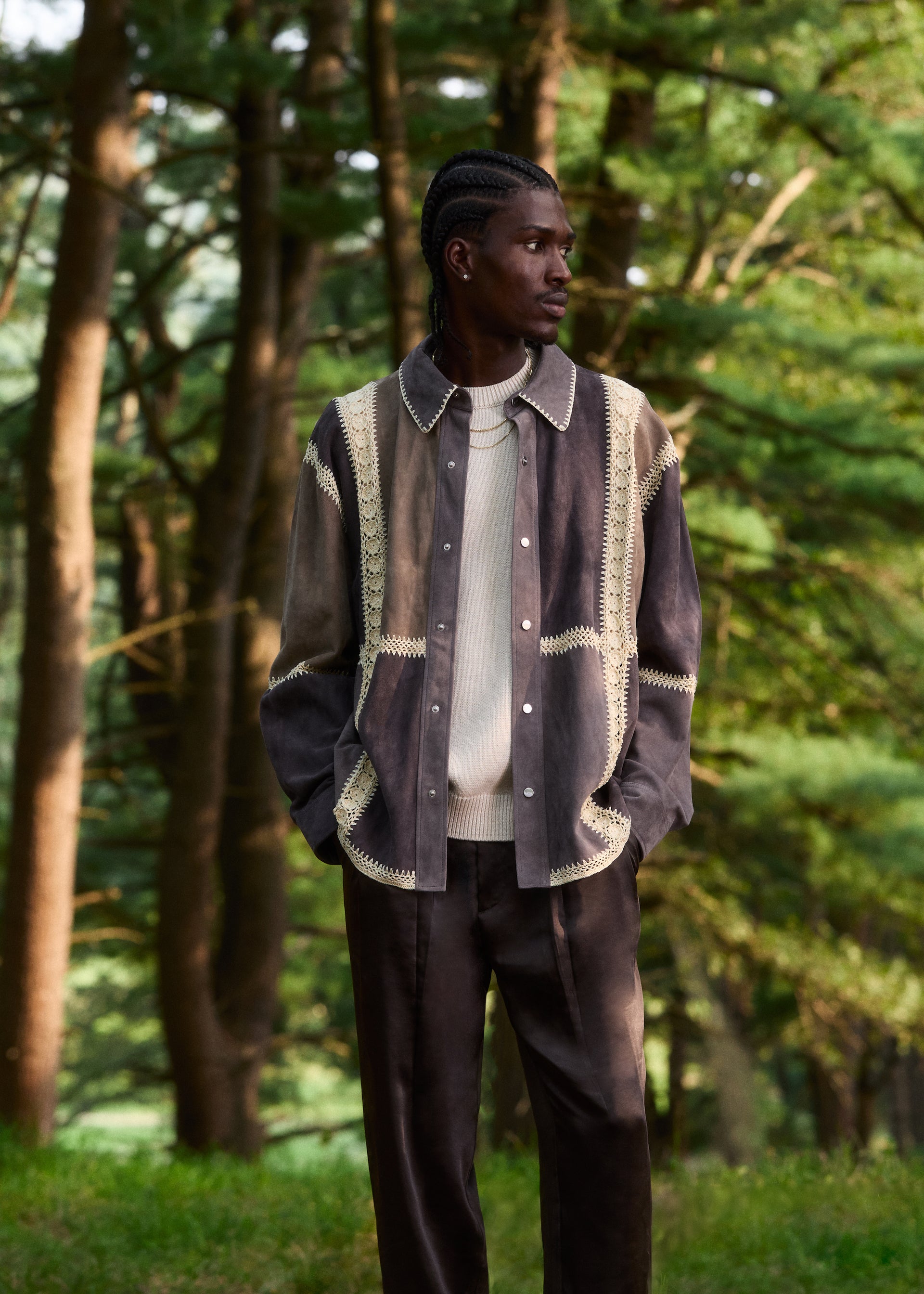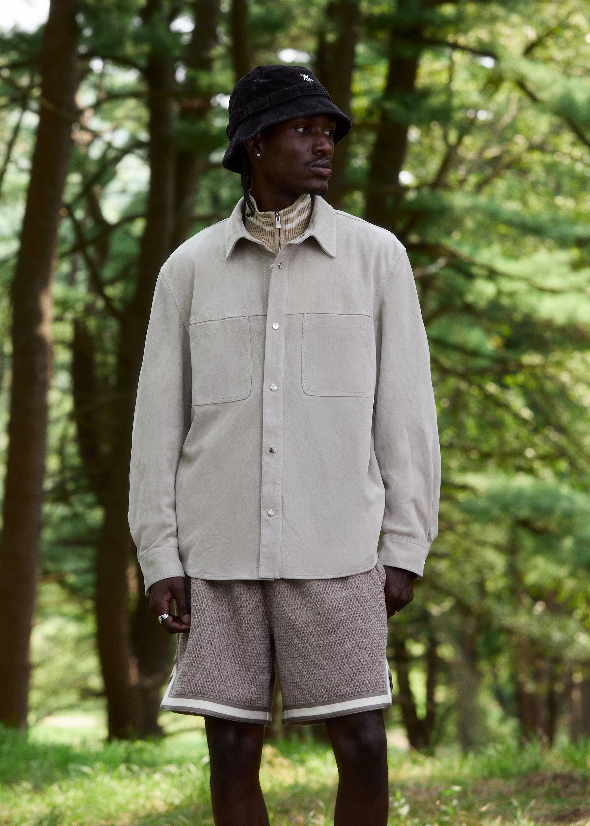 Standouts in the collection include the Ladder Stitch Overshirt and Jaysen Hoodie. The Ladder Stitch Overshirt is a classic silhouette, now elevated with Italian lamb leather suede, ladder stitch detailing along the borders, and special ladder-stitched Kith branding on the back. The Jaysen Hoodie is the epitome of luxurious comfort. This style is crafted with soft lamb silky suede, is satin lined, and features a subtle Kith & Kin debossed logo on the front.