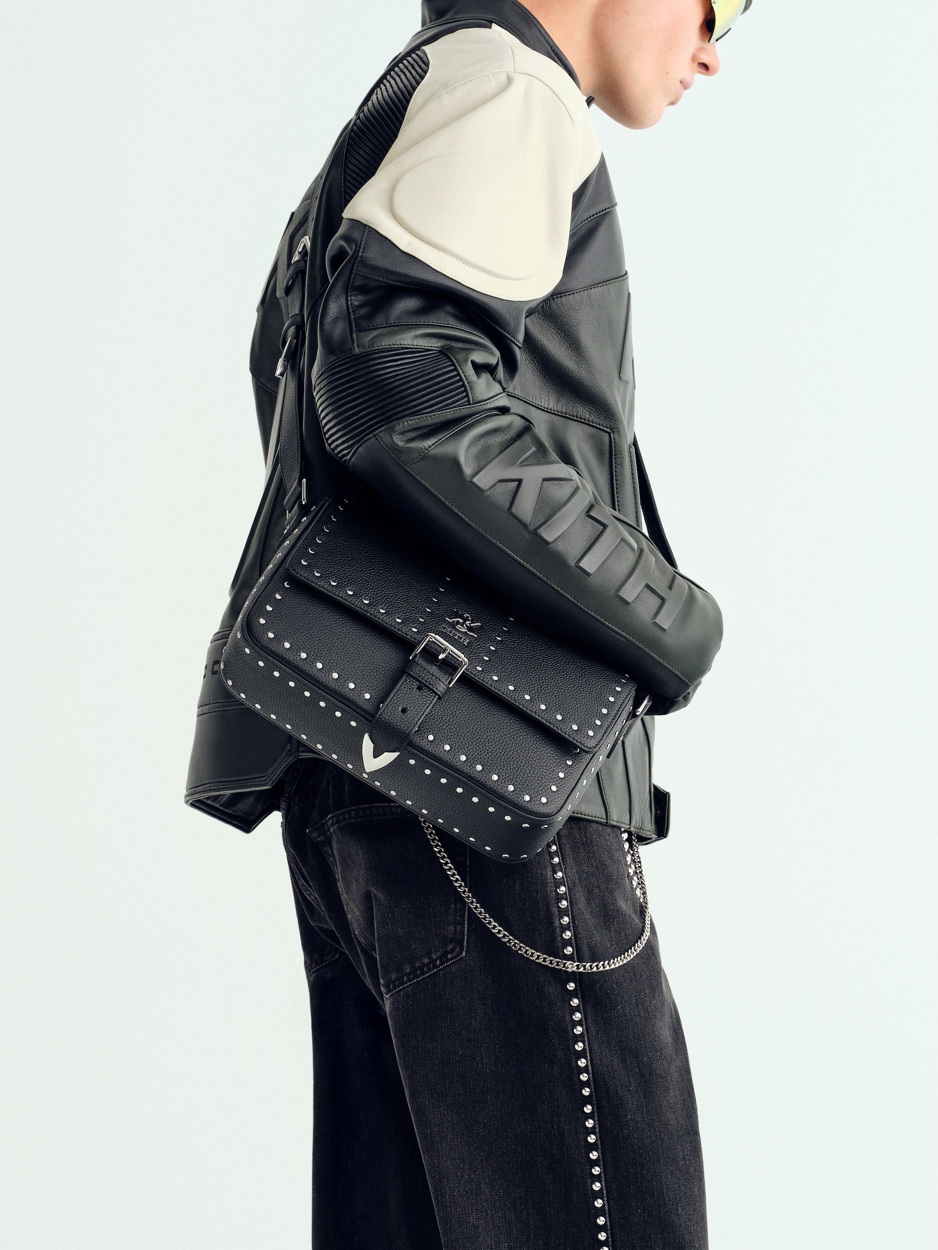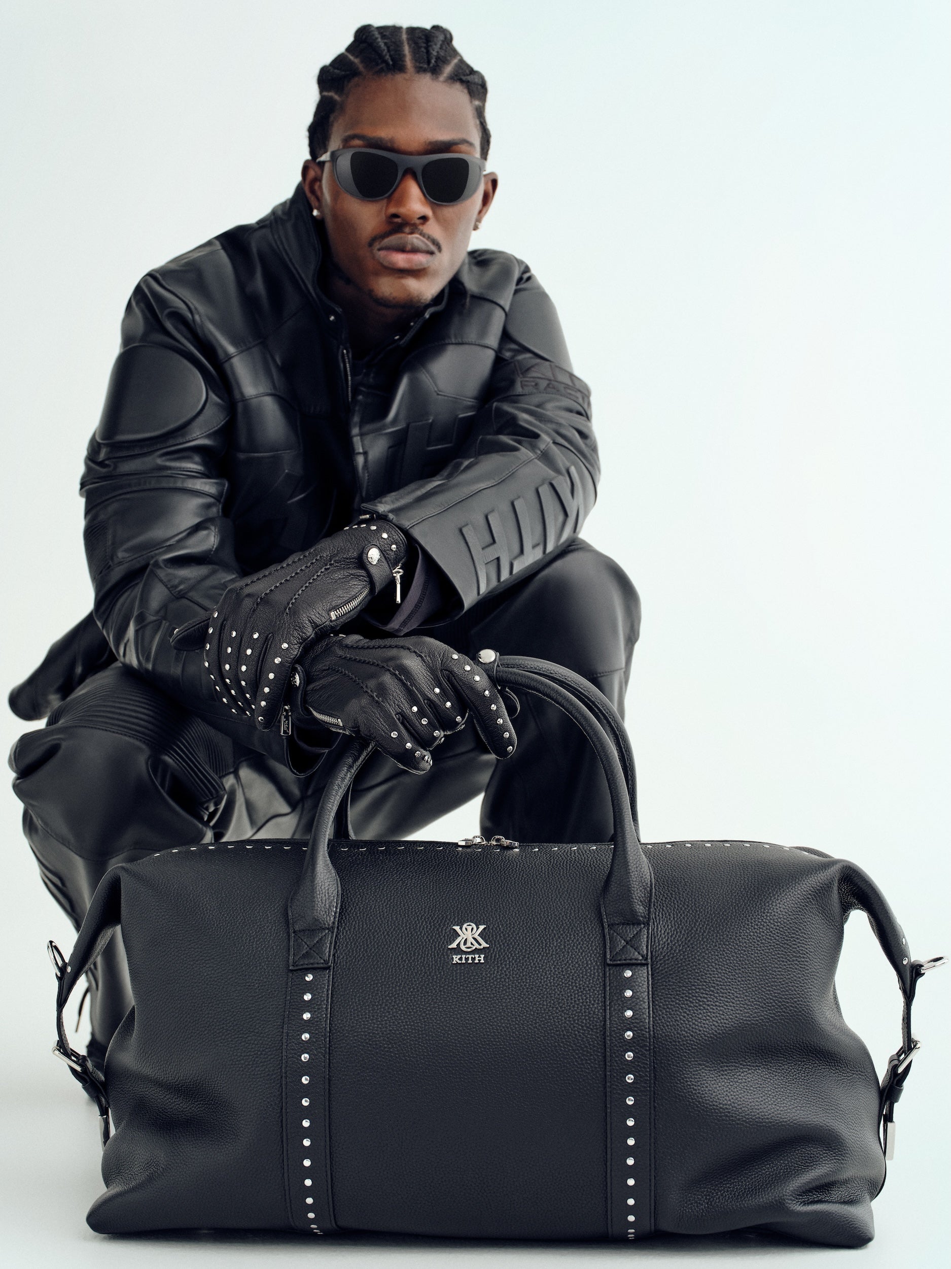 The accessories from Kith Fall 2025 are defined by our Suede Monogram Program, featuring the introduction of signature Kith carryall bags made of premium cowhide Kith Monogram debossed suede. Discover the Traveler in sizes K55 and K40, featuring structured top handles, an adjustable strap, and secure closures throughout designed for versatility while on the go, the Passenger K15, Crosswalk K20, and Envelope K20–three crossbodies made for everyday wear, and small leather goods like the Manhattan Glove, leather belts, card holders, and premium AirPod cases. Each style from this collection is available in the hues Stadium, Ink, Incognito, Magma, and Black, for the customer to create their own travel set. In addition to this, Kith introduces an assortment of studded Western-inspired bags, belts, and other leather goods, home goods like a blanket and pillow set, catchall treys, and a premium backgammon board, all complete with Kith branding, and a vast assortment of seasonal headwear designed in prints and colors that coordinate with the apparel assortments.