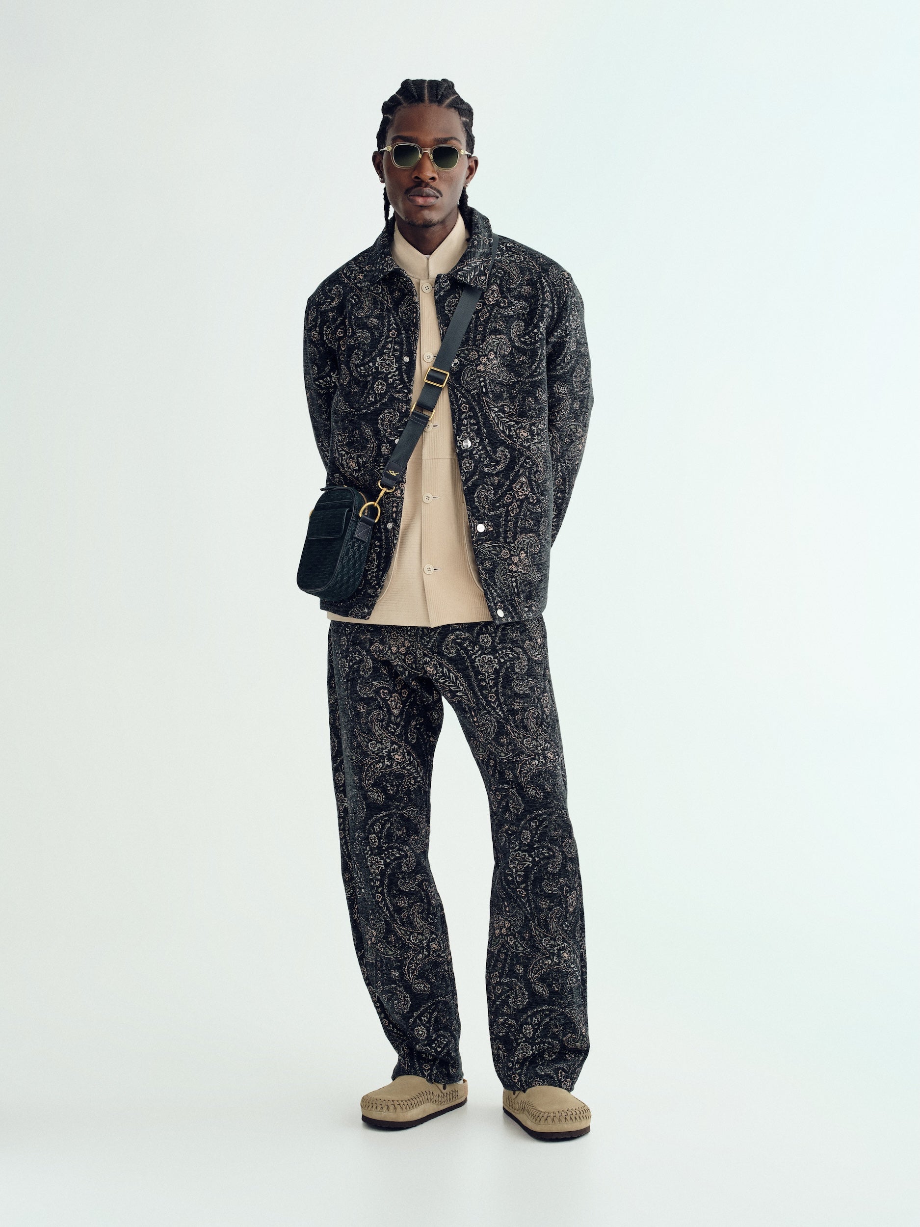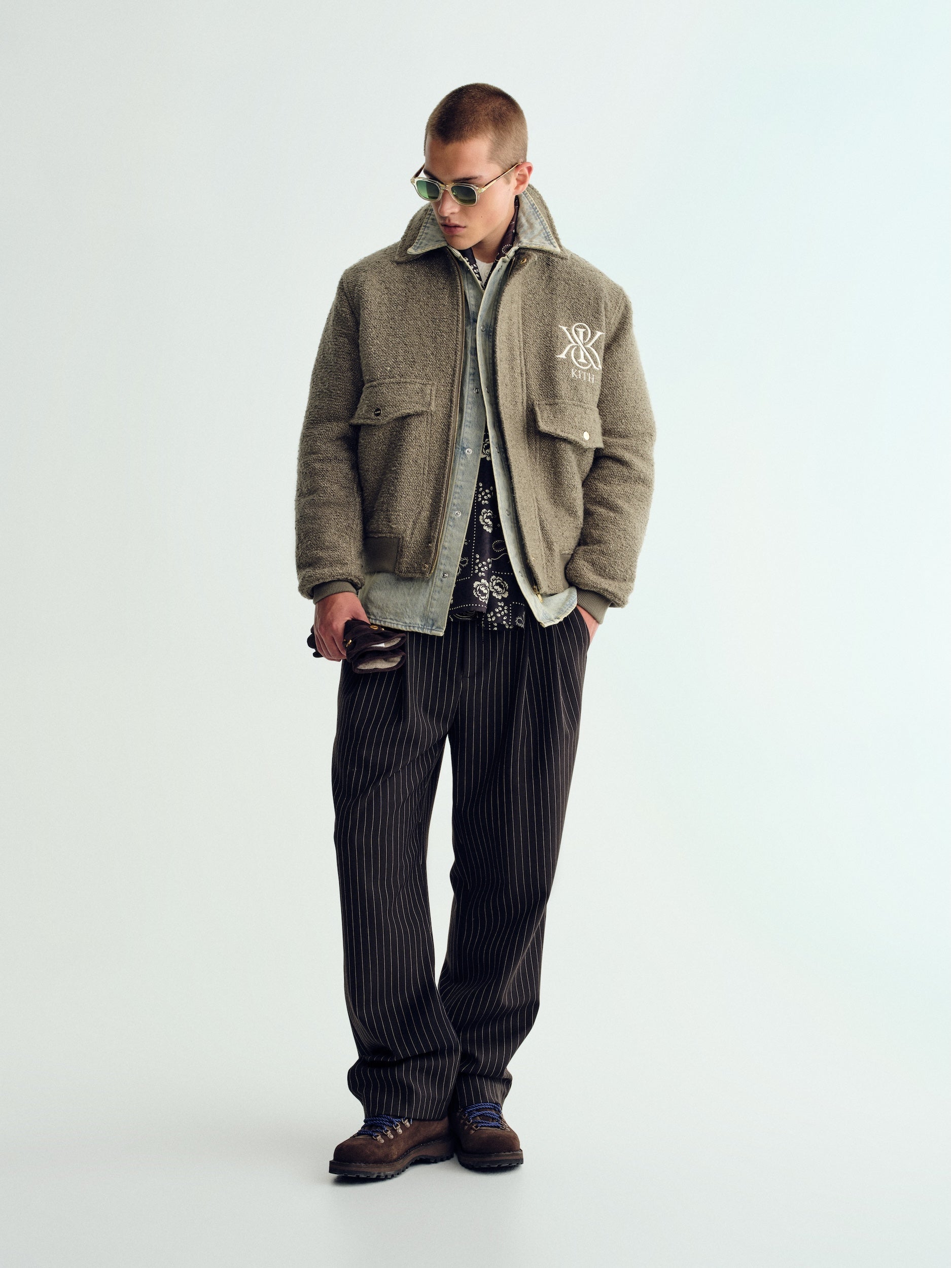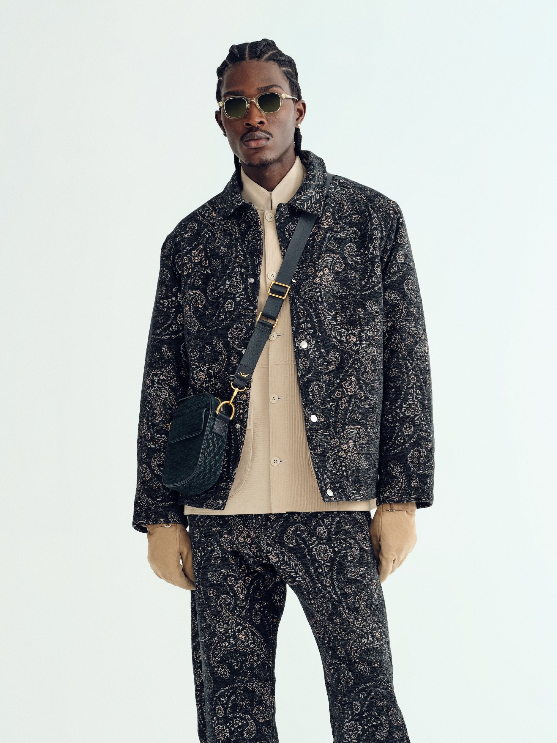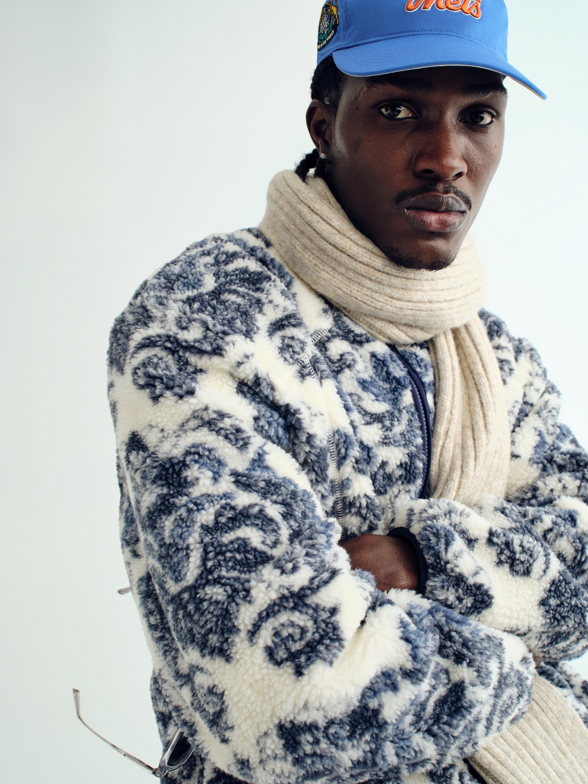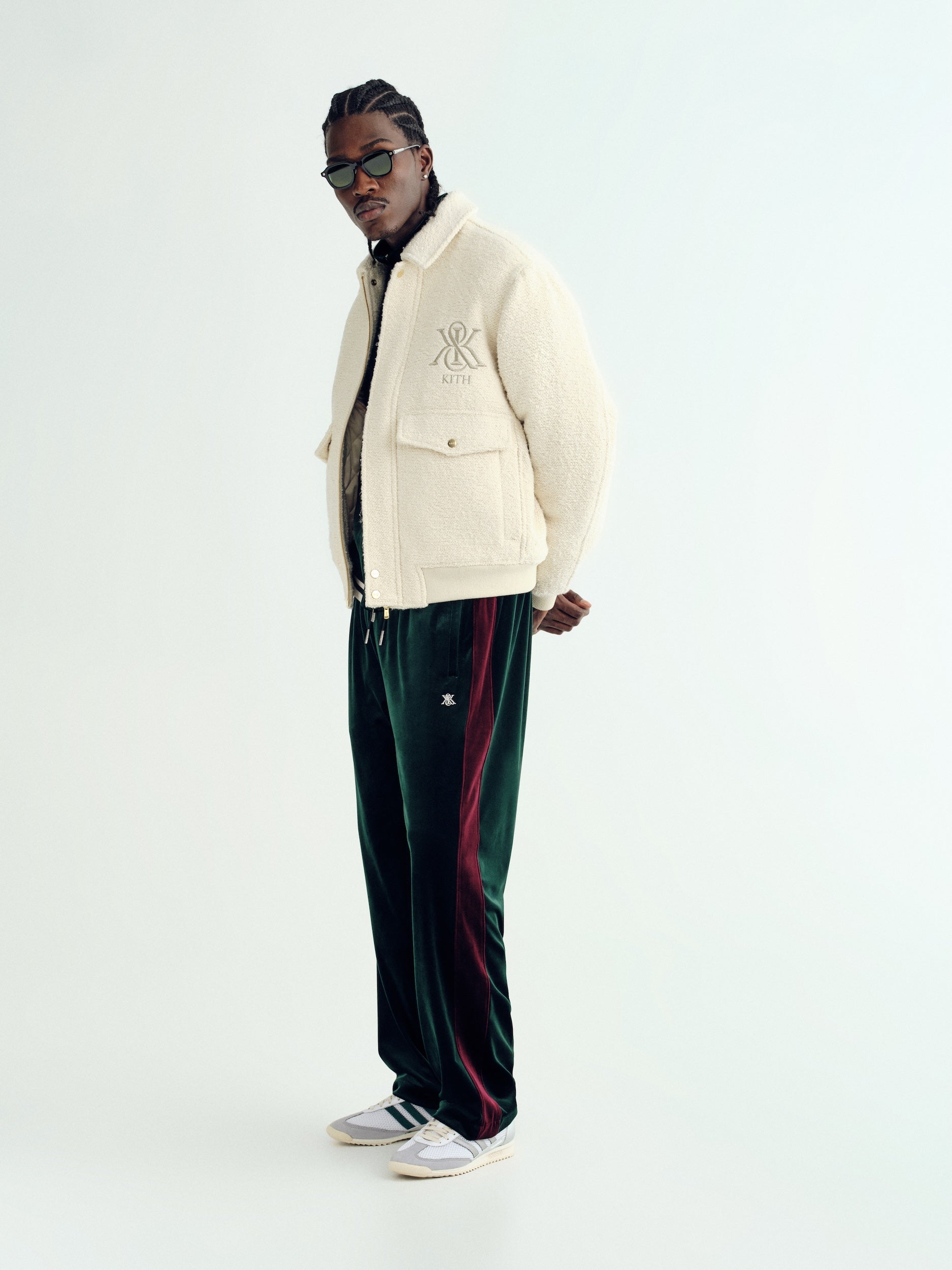 Kith’s latest assortment features evolved silhouettes, highlighted by Kith-signature paisley, tapestry, patchwork, floral, moto, and Western Americana-inspired themes. Ranging from seasonal outerwear to updated suiting, shirting, knitwear, loungewear, pants, shorts, and more, each silhouette is made of materials ideal for the changing seasons—sherpa, velour, lambskin suede and leather, and tricot blends. Each piece is designed in the Kith Palette, with the return of Stadium, Nocturnal, and Sandrift, along with autumnal hues like Muslin, Moss, and Magma.