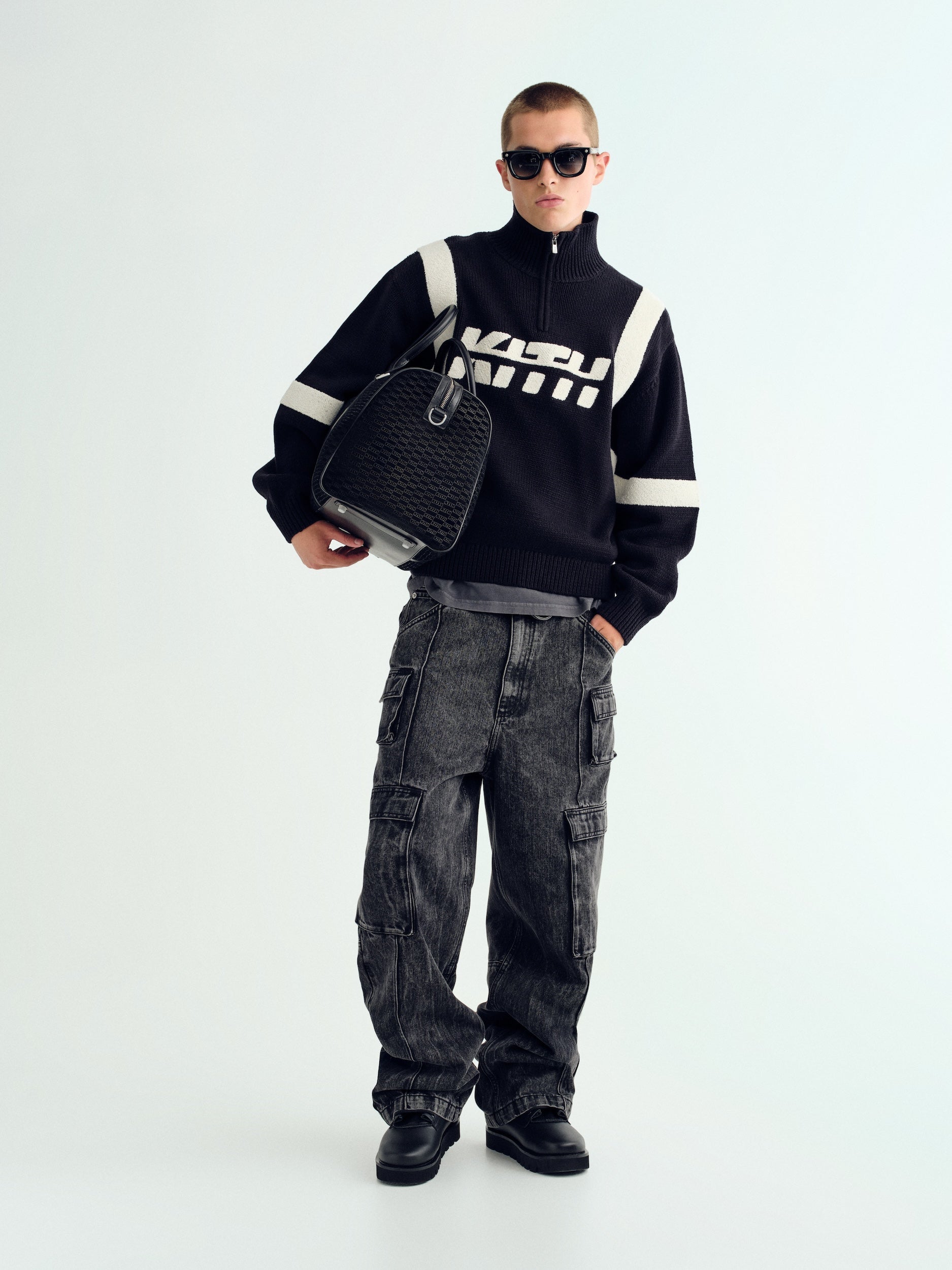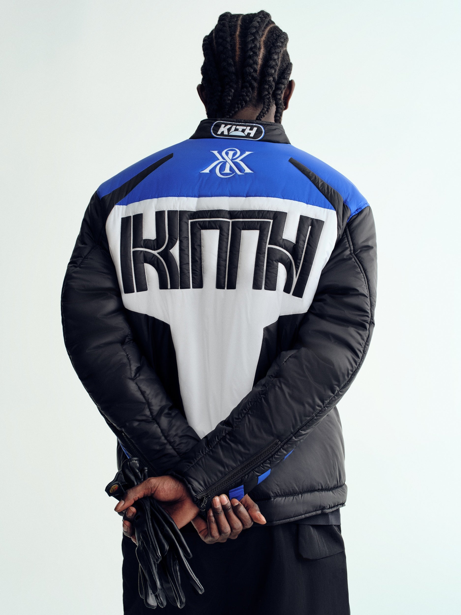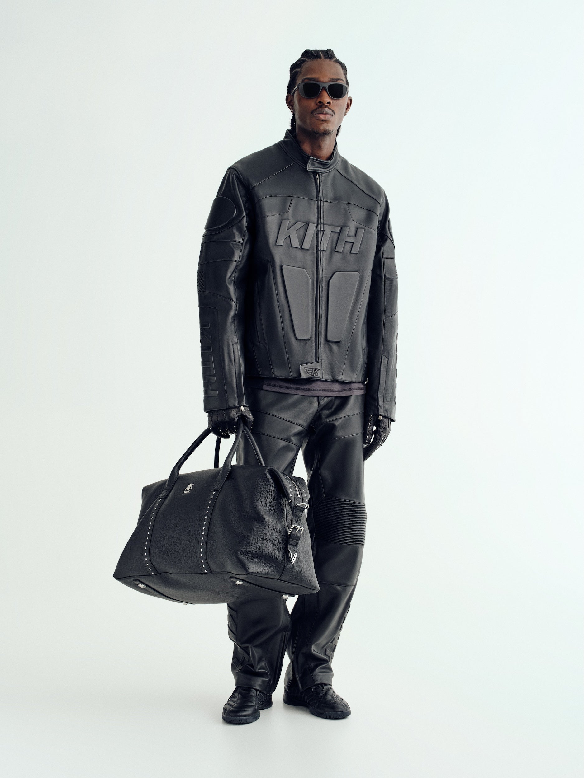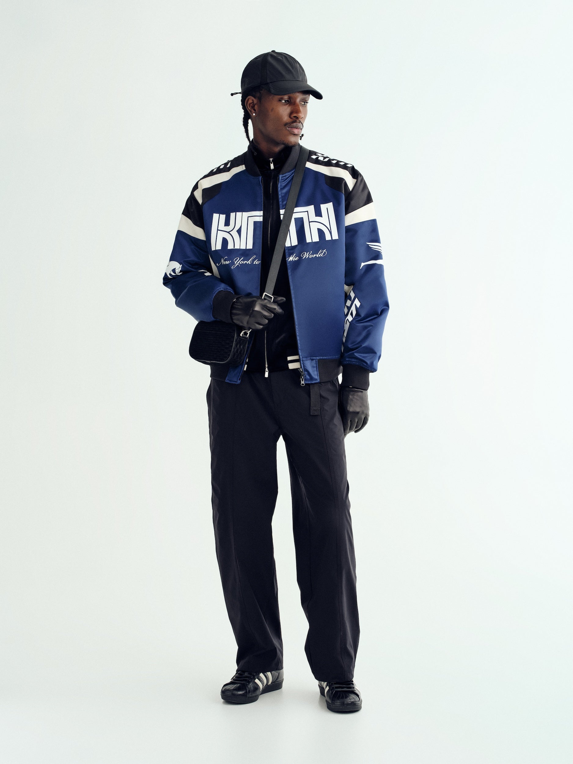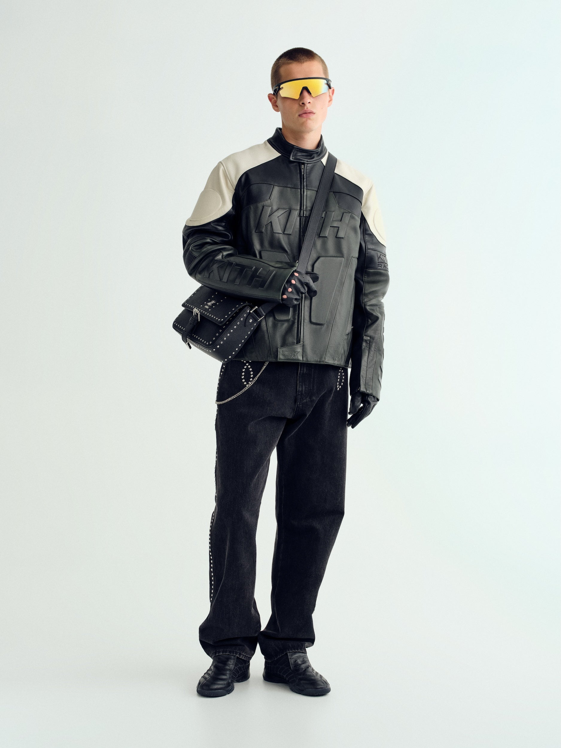 Standouts in the collection include the Leather Wayne Moto Jacket, the Webster, and the Dejan Racing Jacket, defining a wide variety of premium leather, washed denim, and racing-inspired novelty apparel and accessories. The Leather Wayne Moto Jacket features tonal-embossed artwork, made of ultra-soft lambskin leather with Kith hardware found throughout. Just one style from Kith Fall 2025’s denim collection, the Webster jean returns in a variety of washes and weights, perfect for falltime dressing. The Dejan Racing Jacket is a moto-inspired style made from vintage nylon, adorned with a variety of custom themed patches.