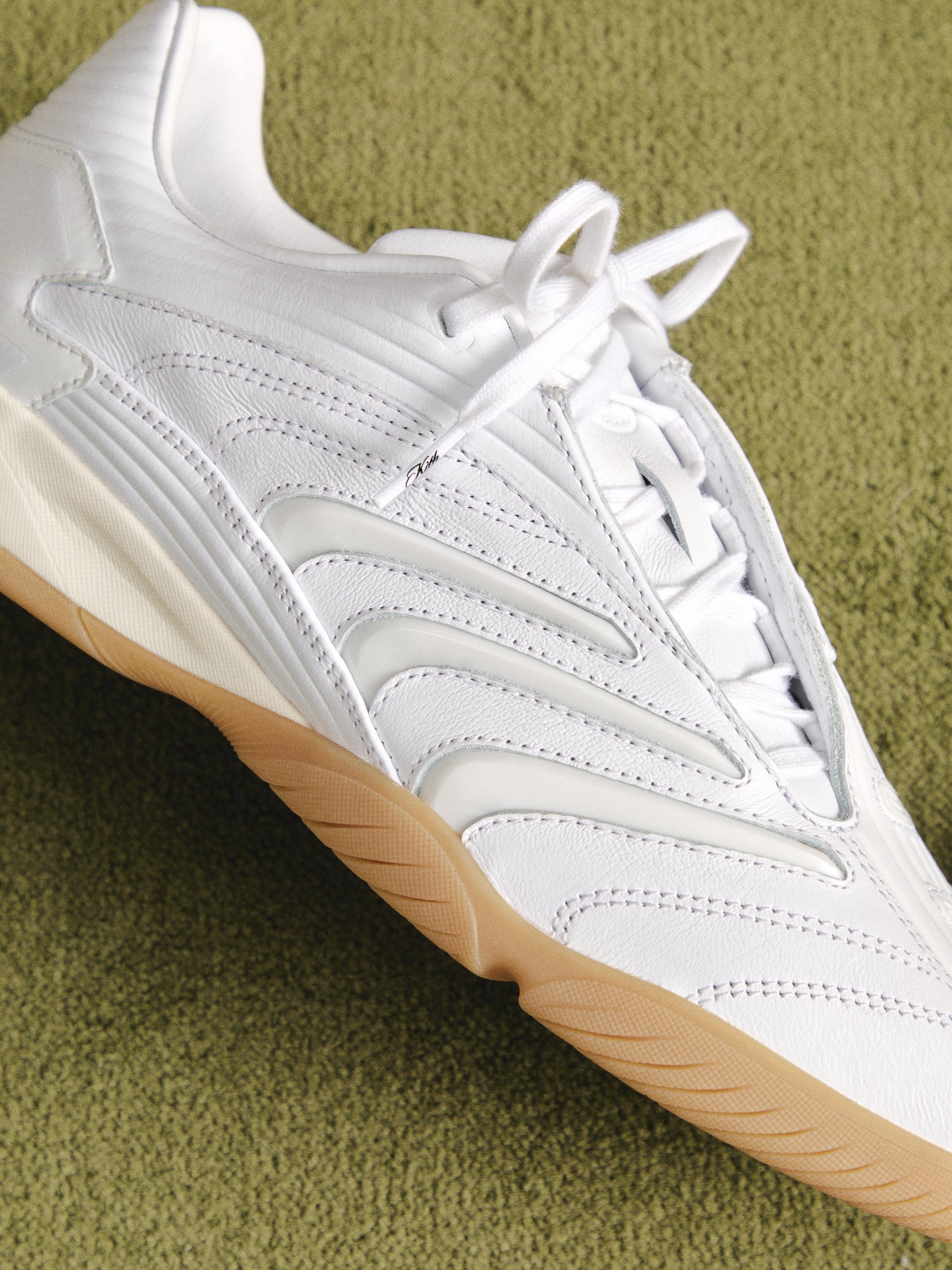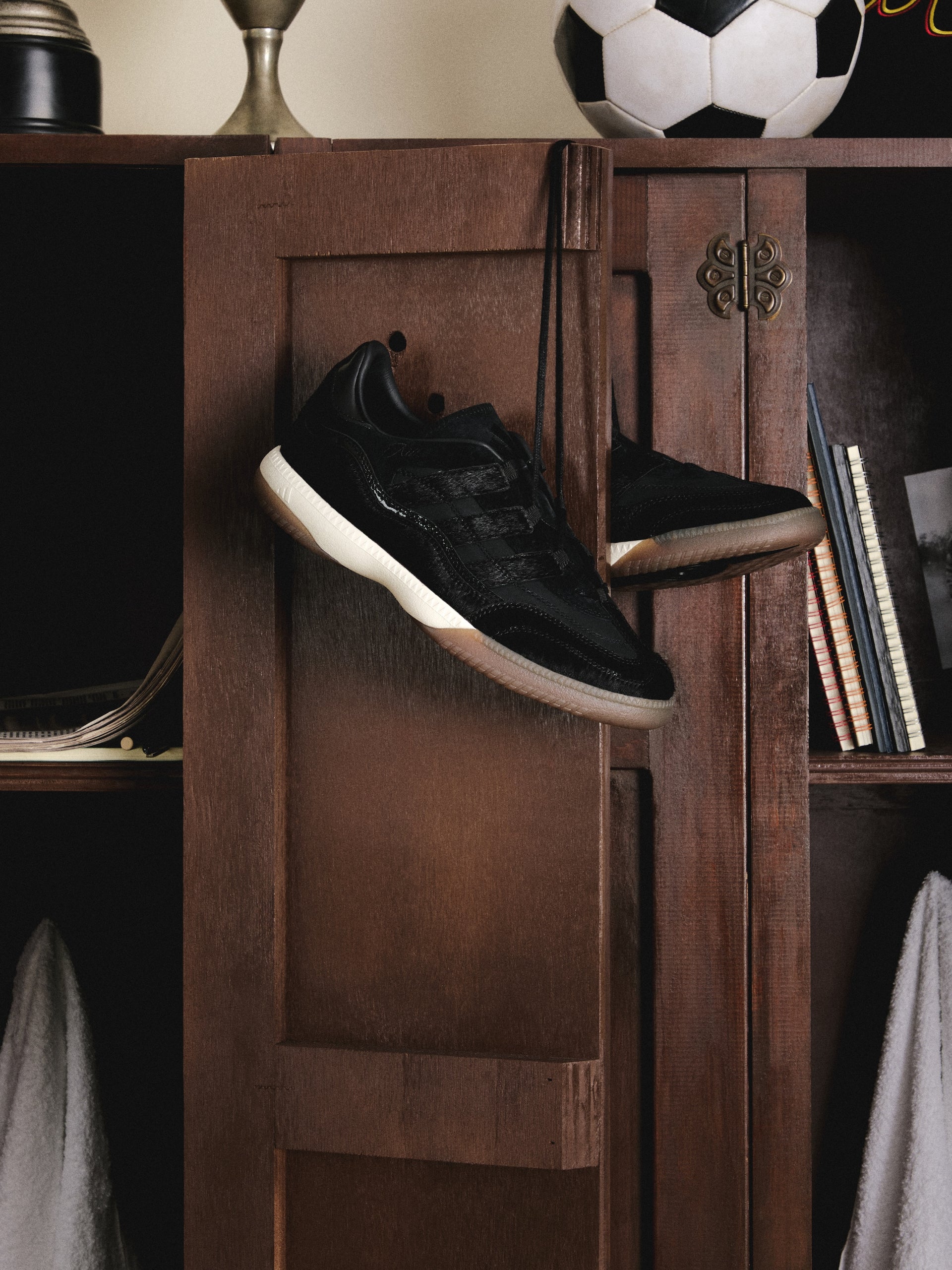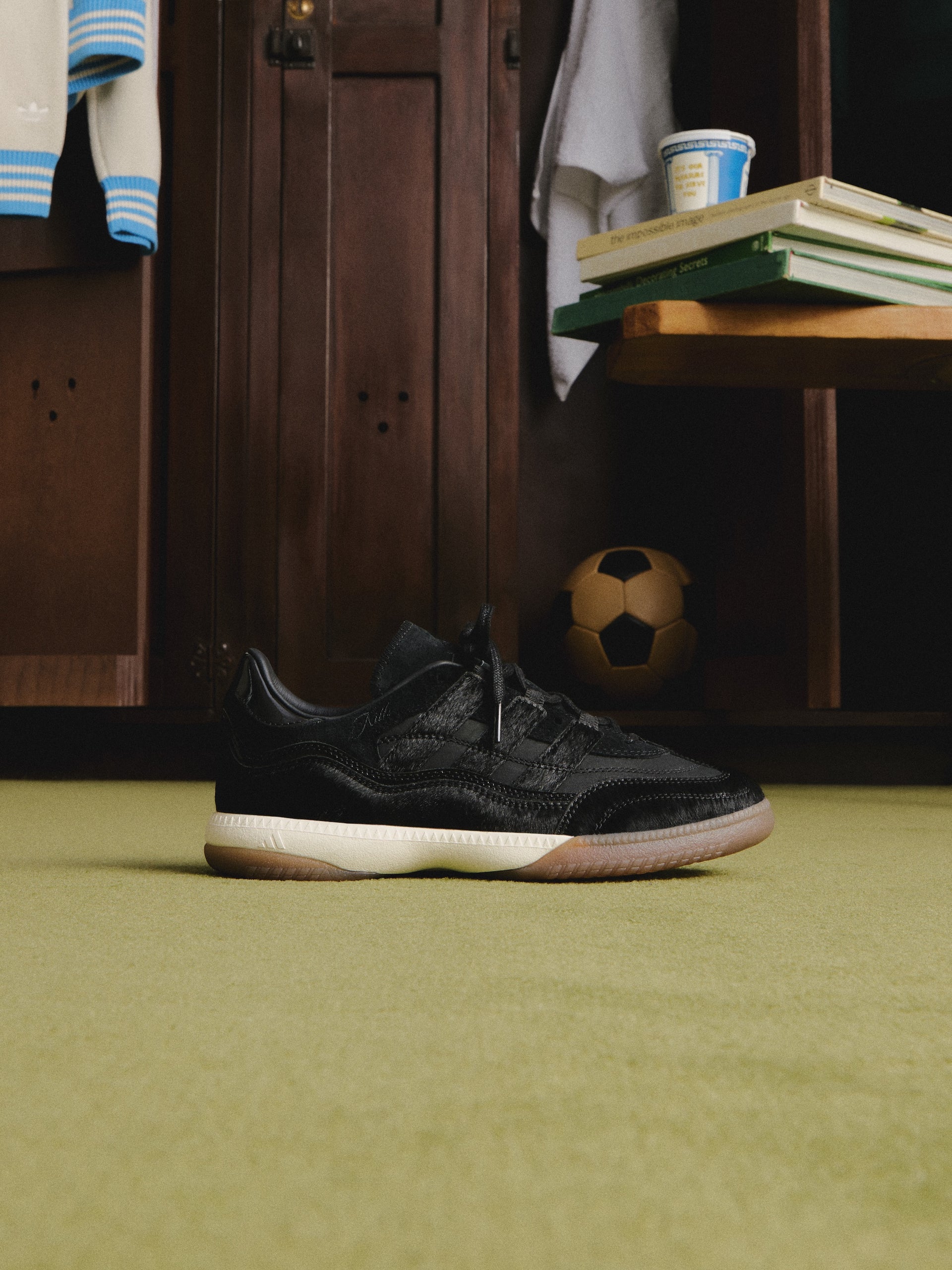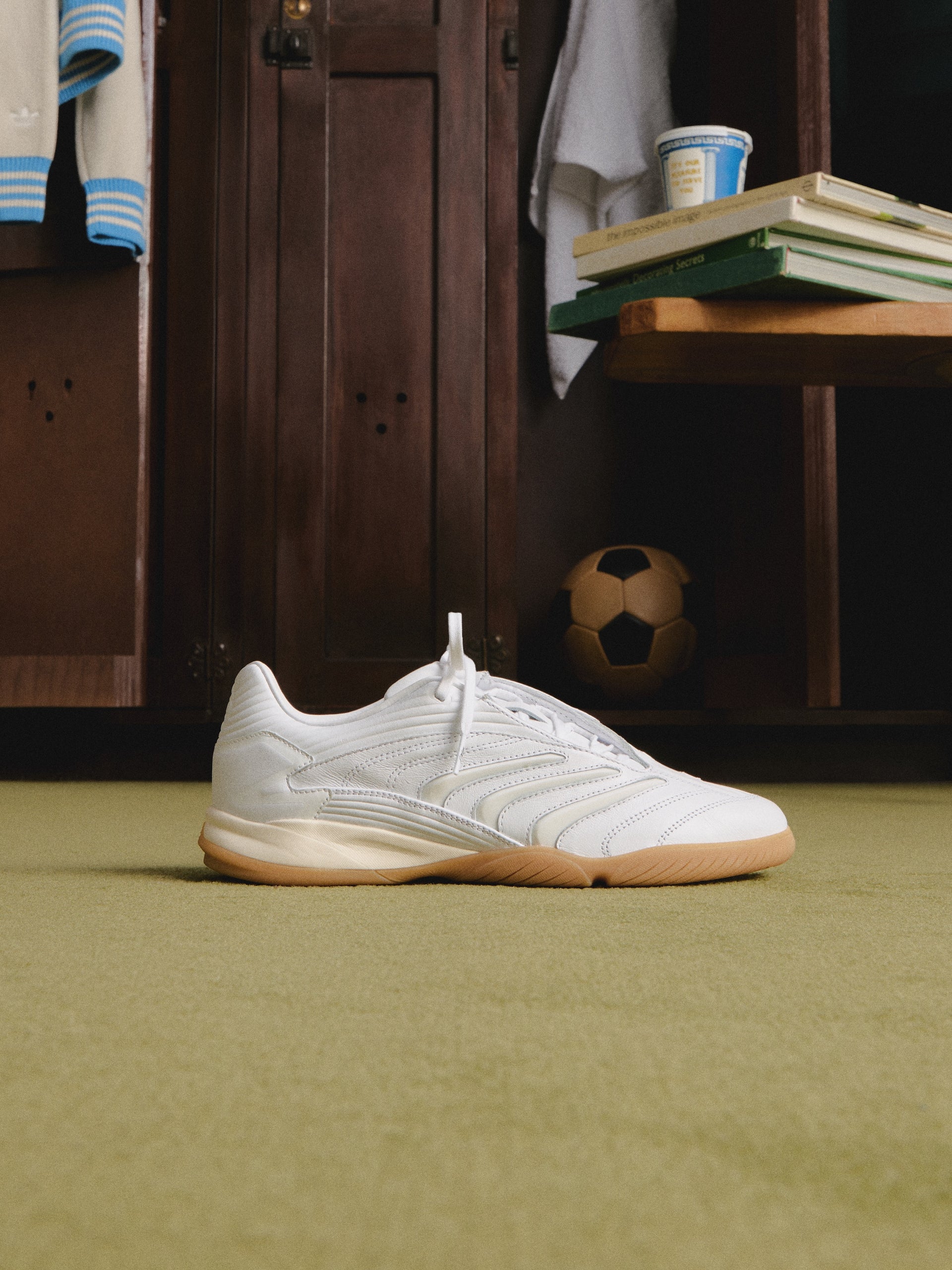 Introduced four years earlier is the Predator Sala from 1994, another indoor silhouette that derives from the popular Predator family of cleats from adidas Football. Designed for optimal court surface play, it offers stability and grip with its gum rubber outsole. The Kith and adidas Football reimagination features a premium glove leather upper, the classic asymmetric lace-up closure, and co-branded elements throughout.