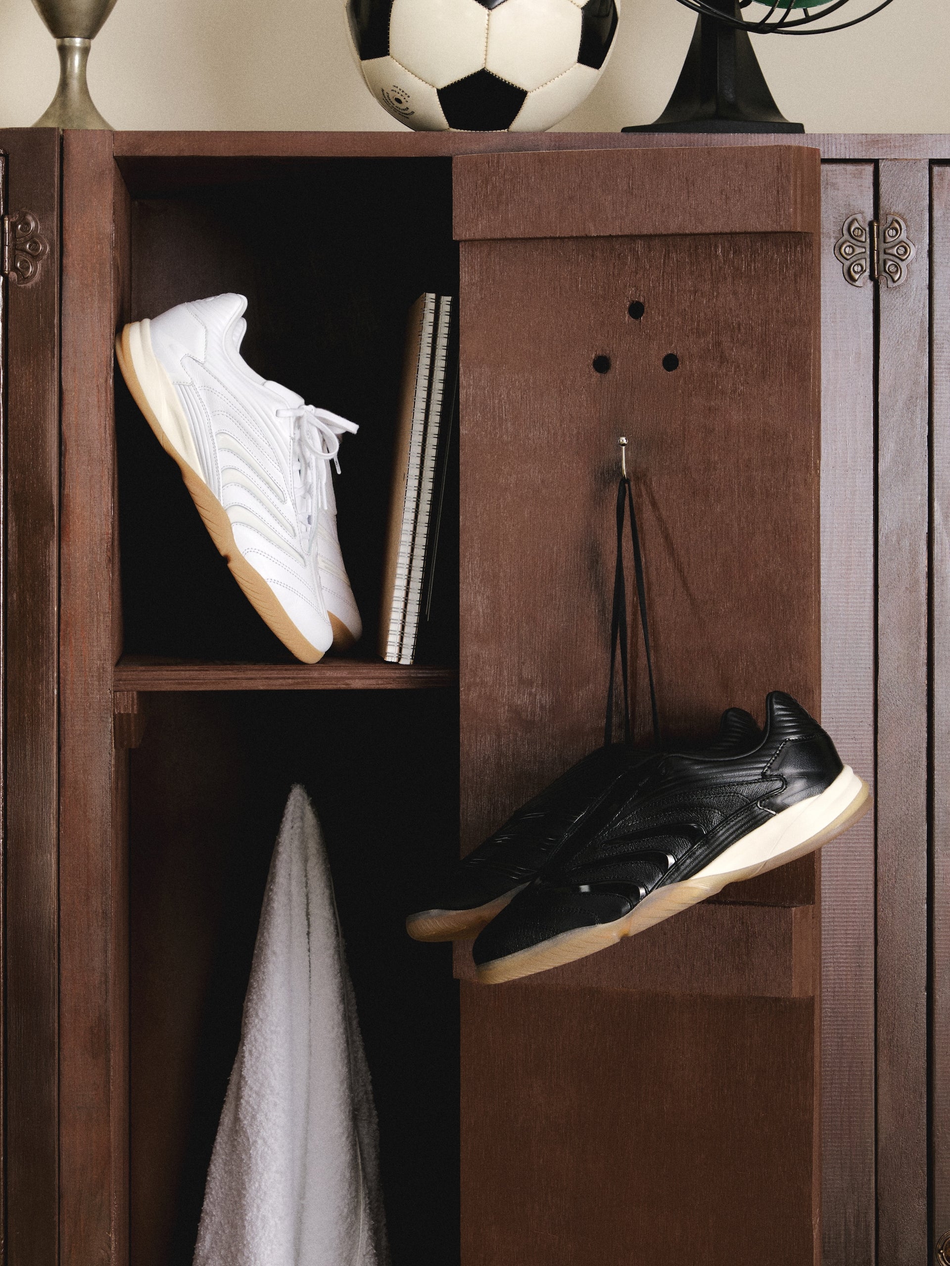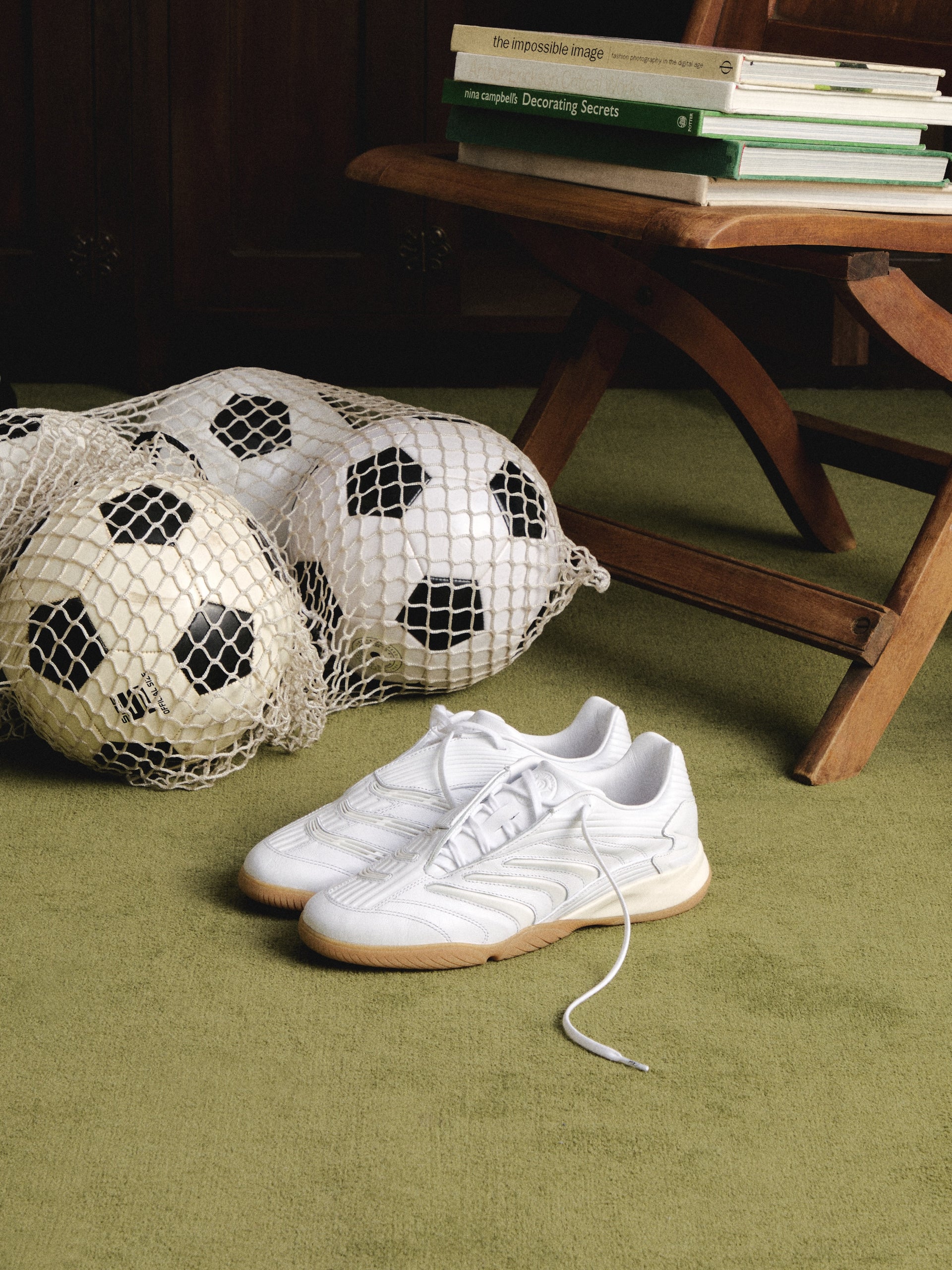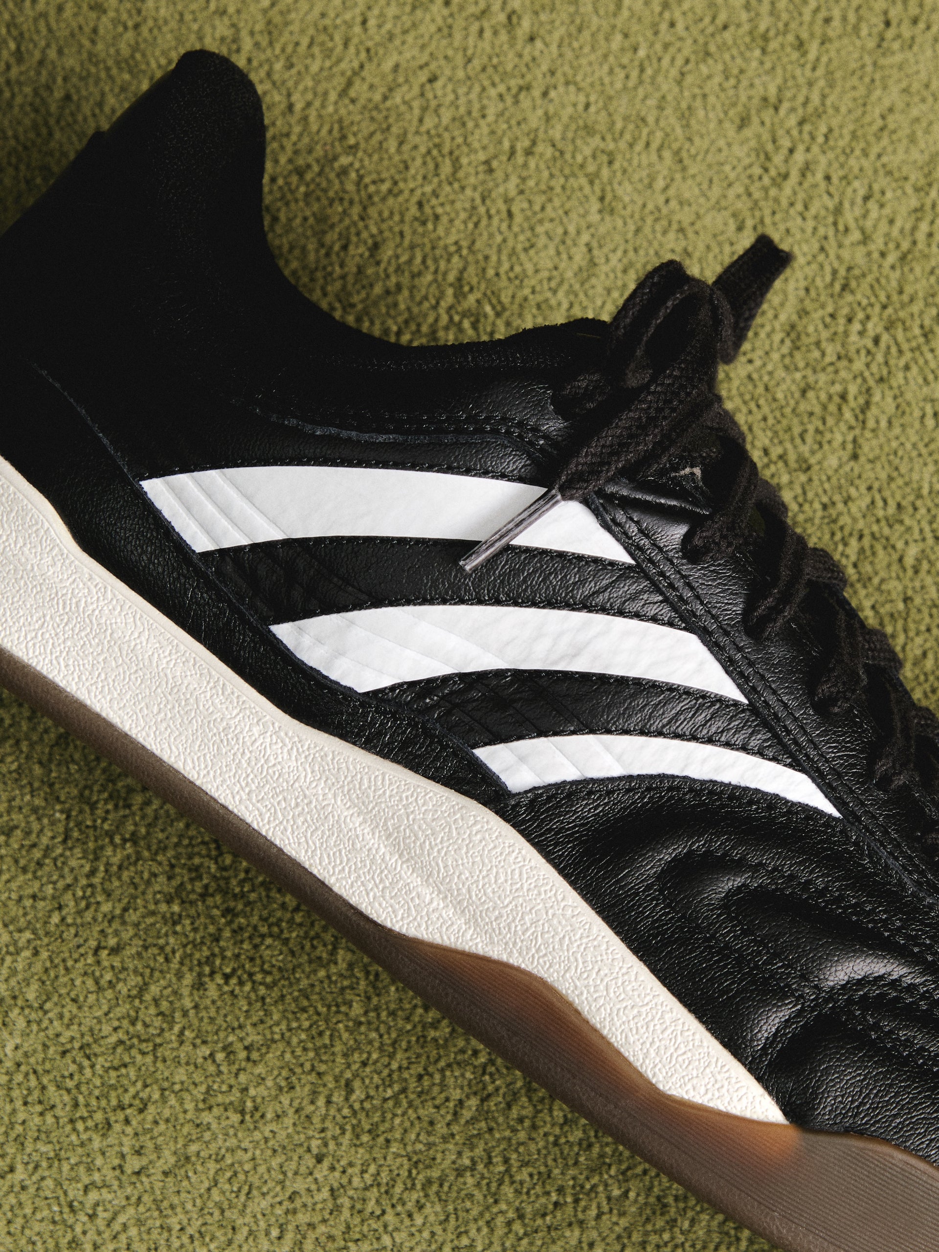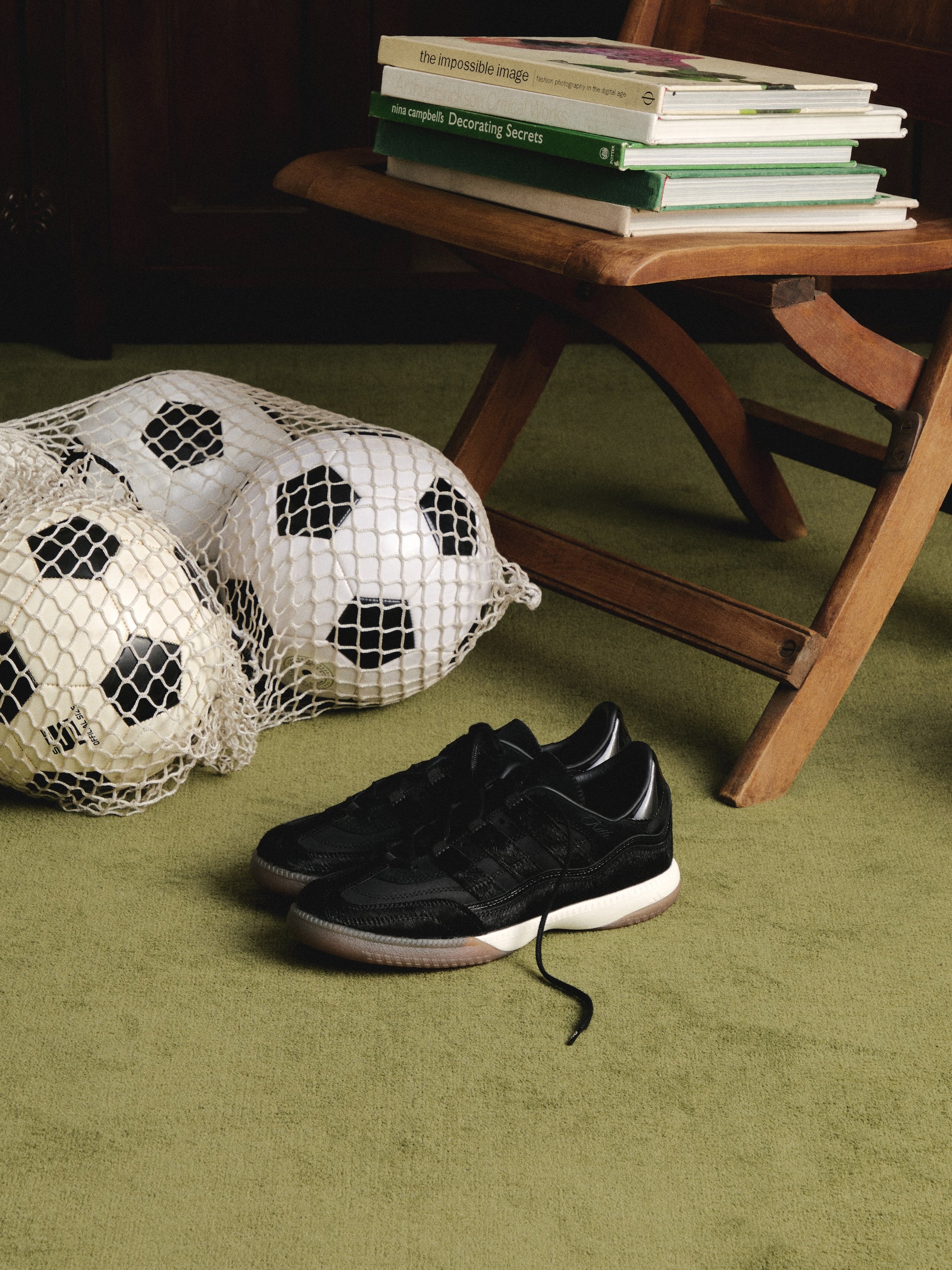 Introduced four years earlier is the Predator Sala from 1994, another indoor silhouette that derives from the popular Predator family of cleats from adidas Football. Designed for optimal court surface play, it offers stability and grip with its gum rubber outsole. The Kith and adidas Football reimagination features a premium glove leather upper, the classic asymmetric lace-up closure, and co-branded elements throughout.