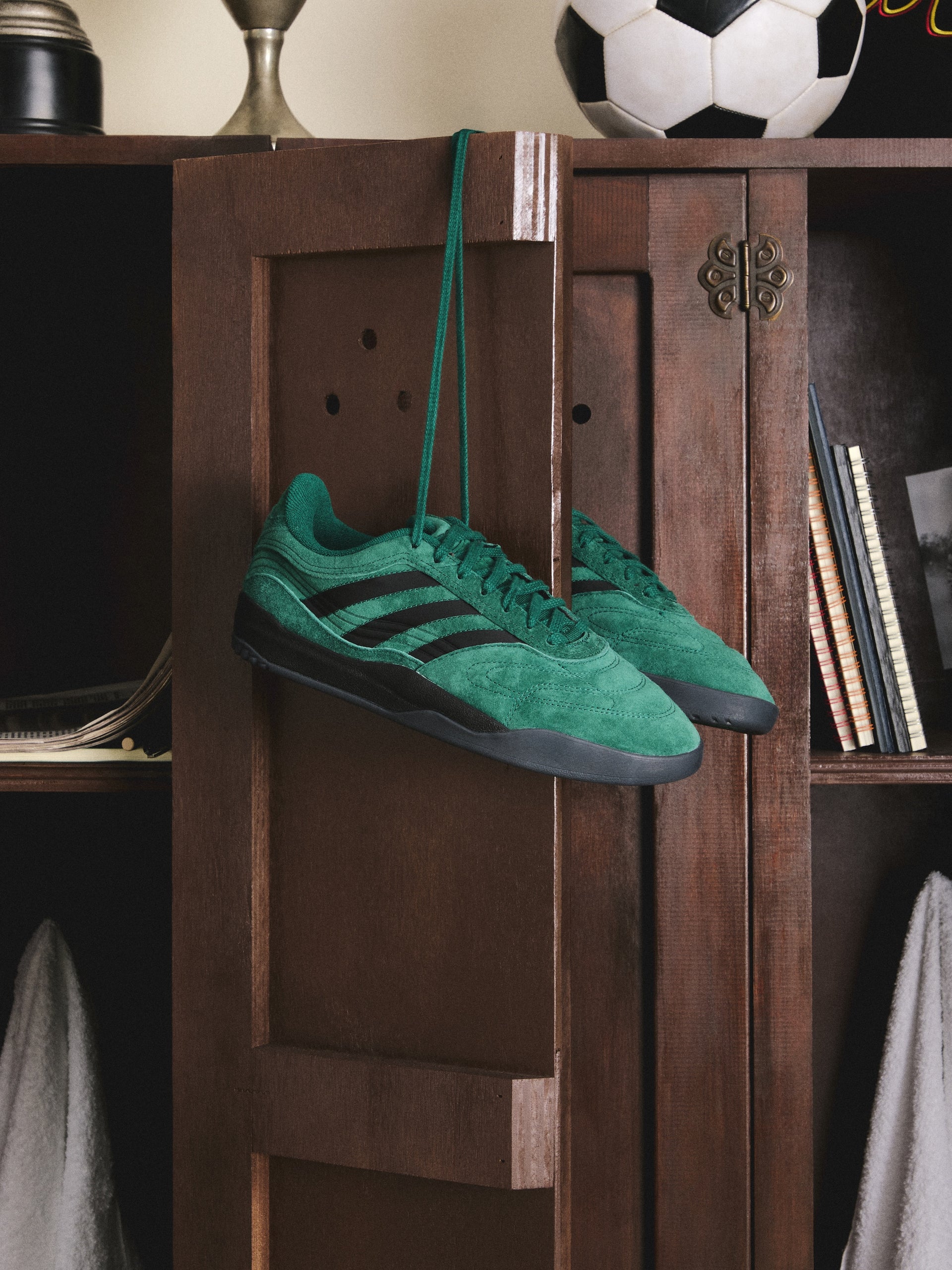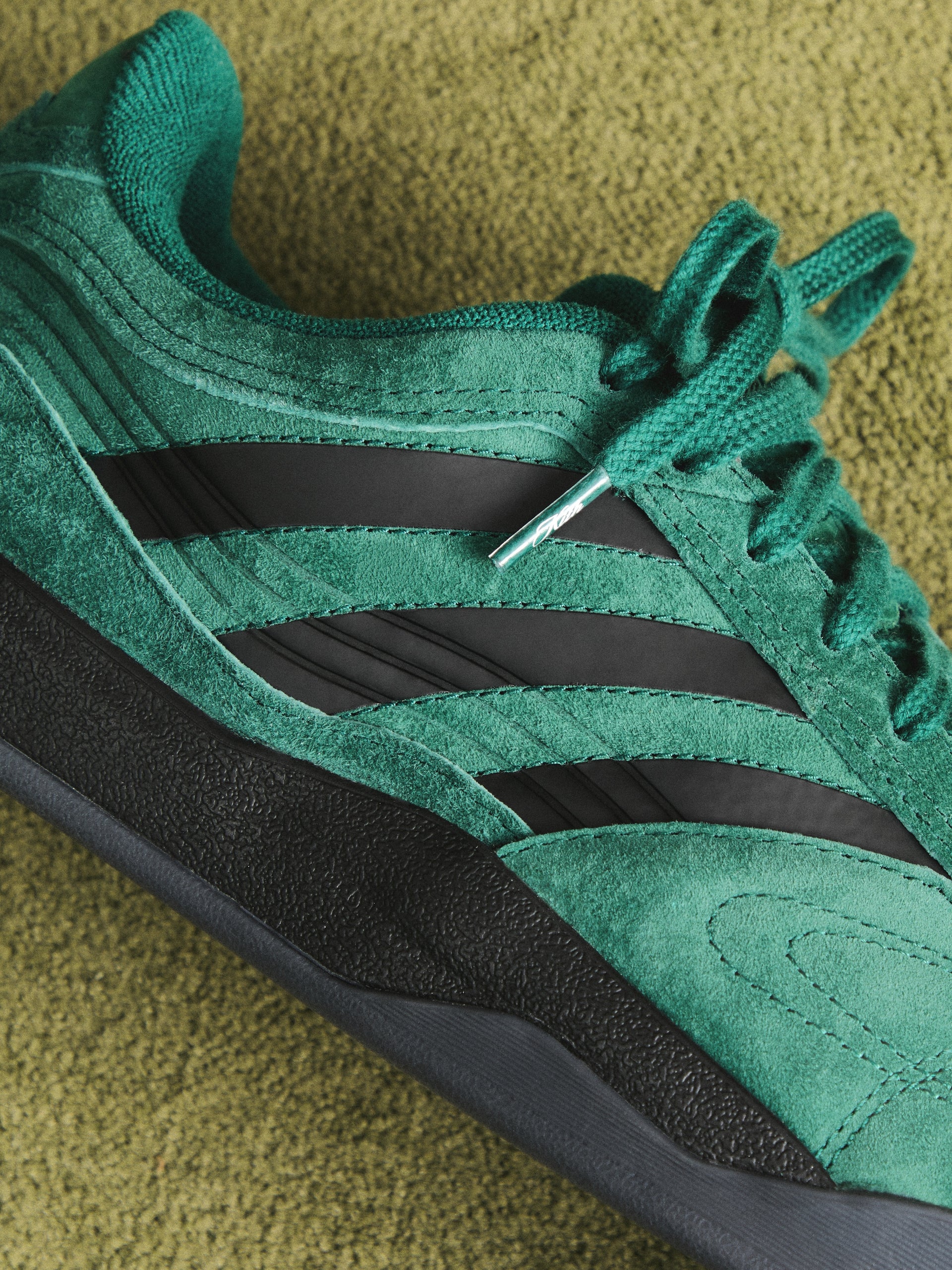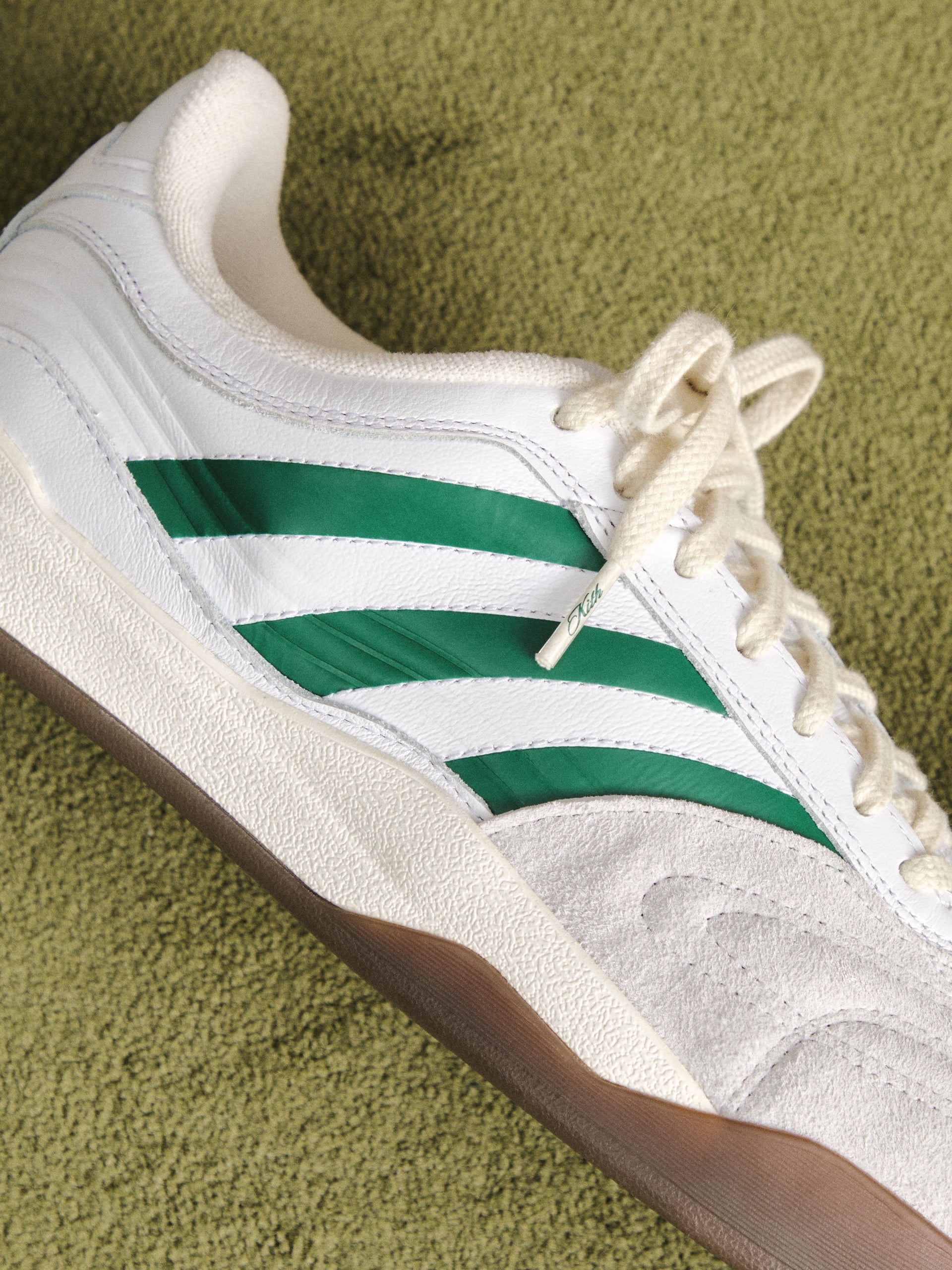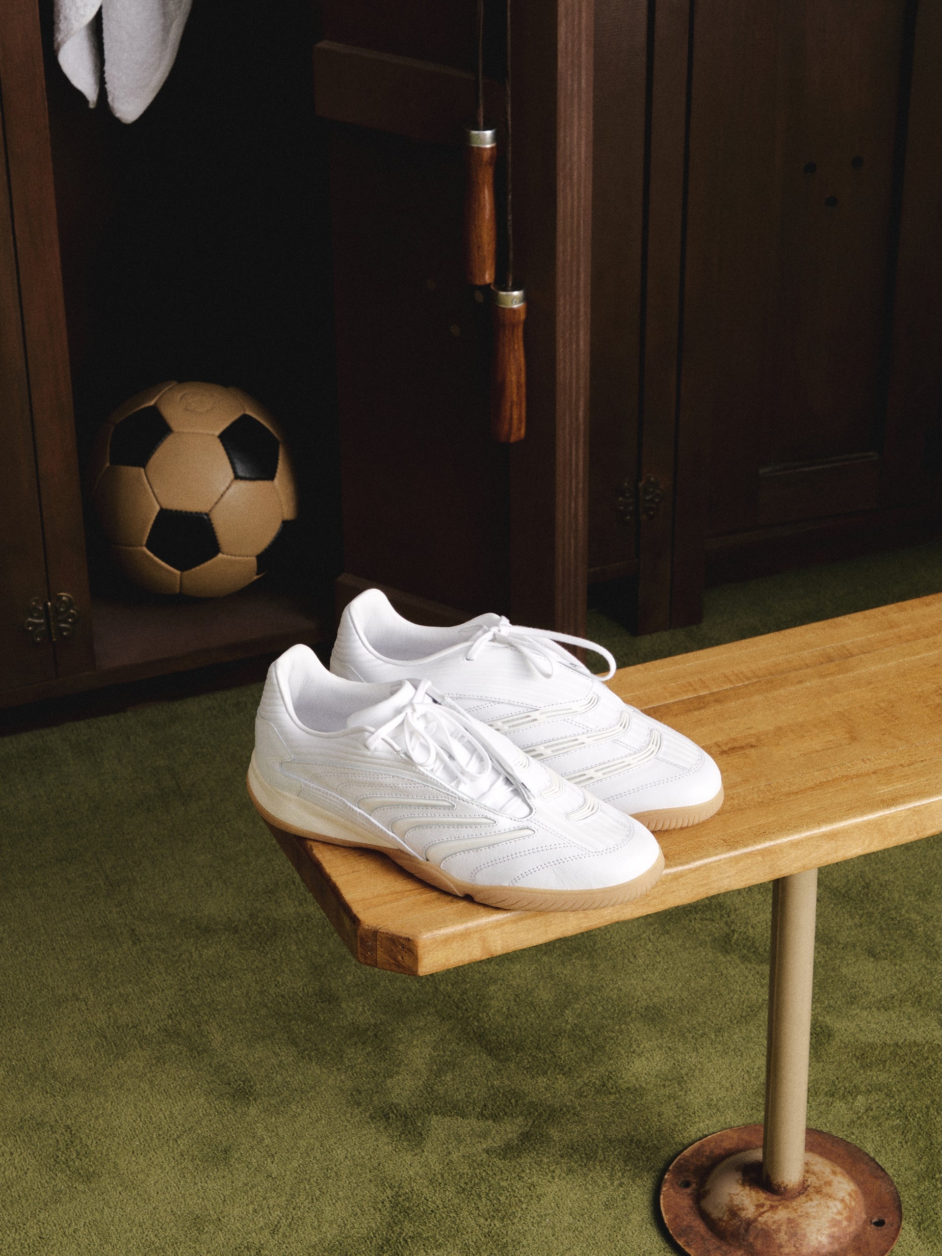 Introduced four years earlier is the Predator Sala from 1994, another indoor silhouette that derives from the popular Predator family of cleats from adidas Football. Designed for optimal court surface play, it offers stability and grip with its gum rubber outsole. The Kith and adidas Football reimagination features a premium glove leather upper, the classic asymmetric lace-up closure, and co-branded elements throughout.