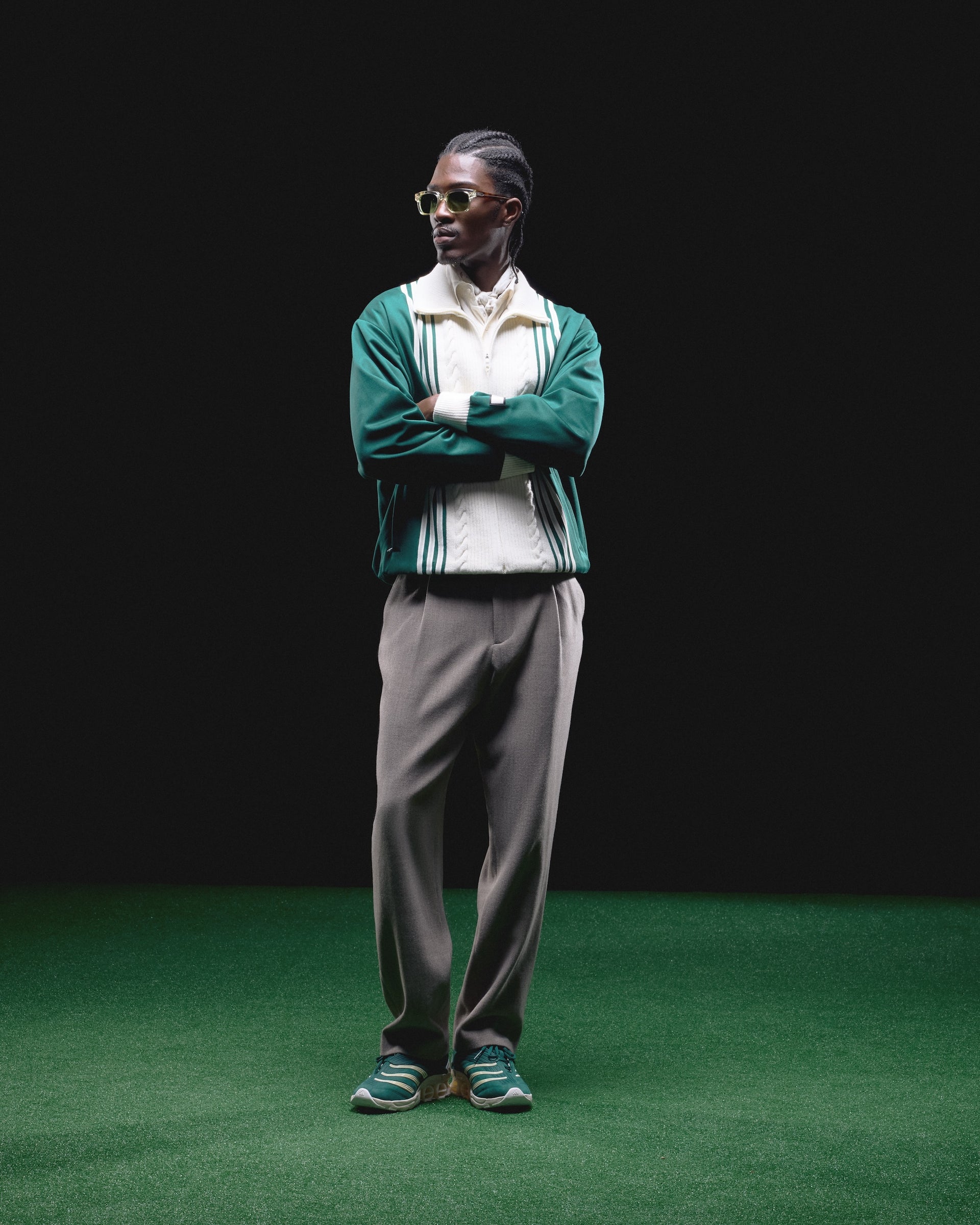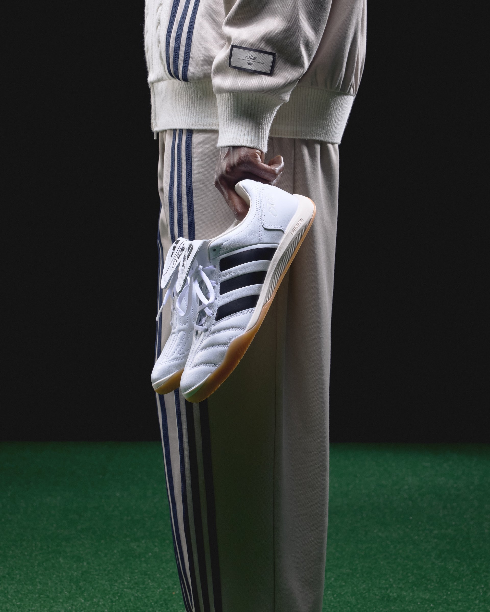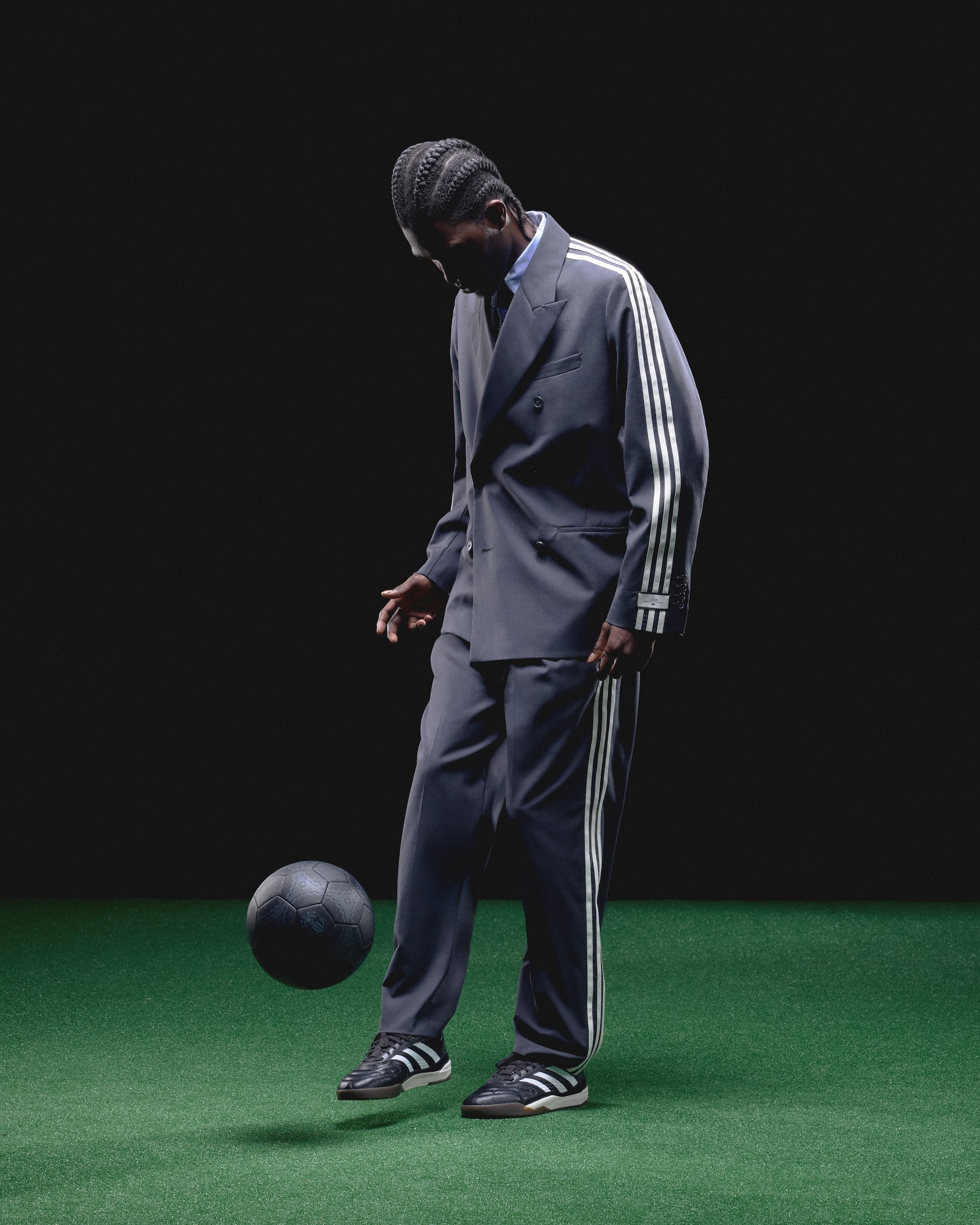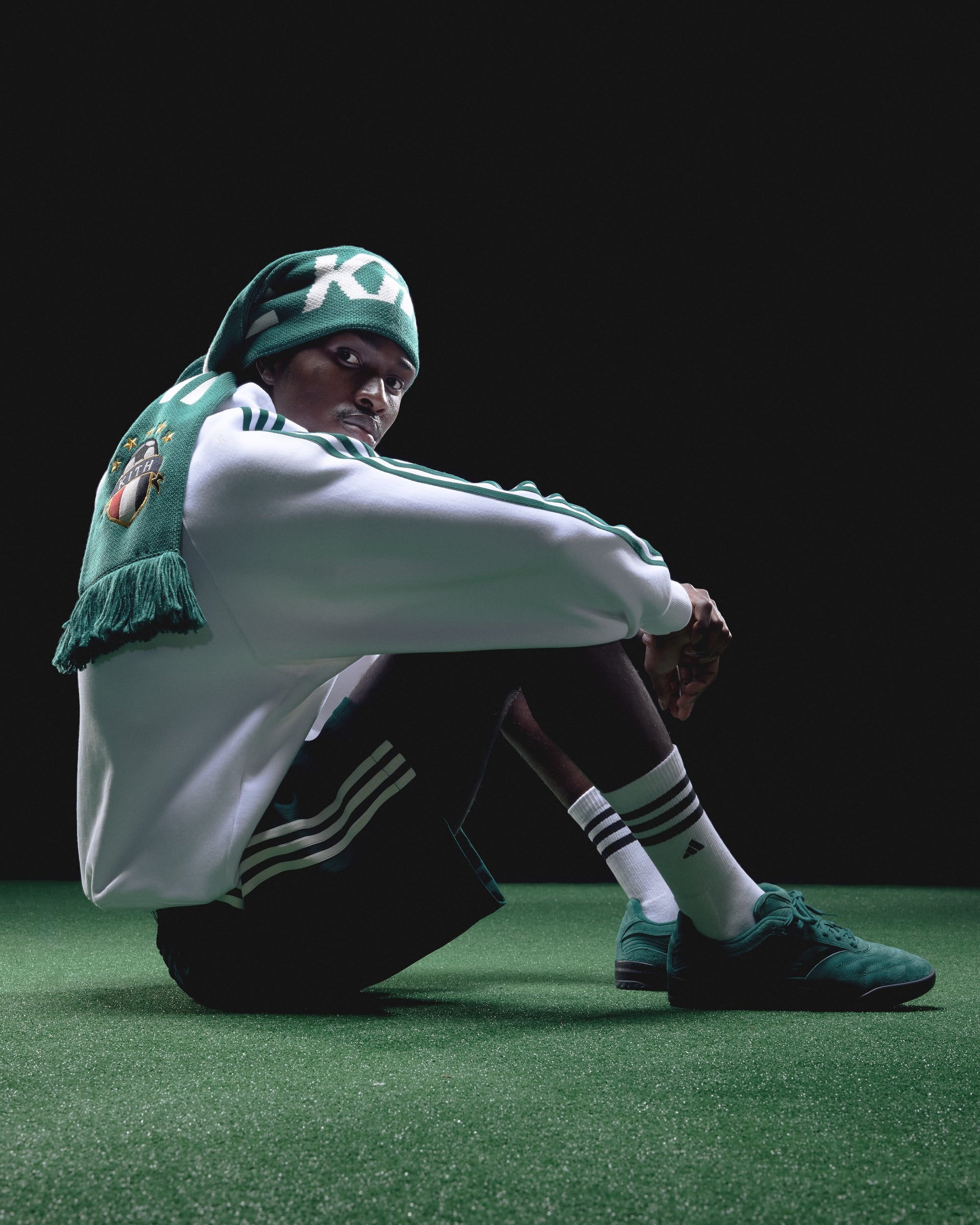 This collection comprises adidas & Kith signature silhouettes, highlighting debut co-branded logos and artwork. Explore elevated outerwear, jerseys, tracksuits, tees, and knitwear. Standouts include the Stadium Coat, Suit Jacket & Pant and Tracksuit. The Stadium Coat is an elevated yet relaxed silhouette crafted from premium leather. Details include signature adidas stripes along the back & hood as well as a built-in wraparound belt. The Suit Jacket & Pant, based on Kith’s Julius Blazer and Kylan Pant, epitomizes the intersection of luxury and football. Made from a premium wool-polyester blend, this suit features a double-breasted jacket and double-pleated trousers. The Kith for adidas Football Tracksuit is inspired by adidas’ iconic tracksuit. The duo came together to reimagine the style with a custom knit execution & piping details along the front. The set is offered in Beige & Green executions and is complete with a co-branded label.