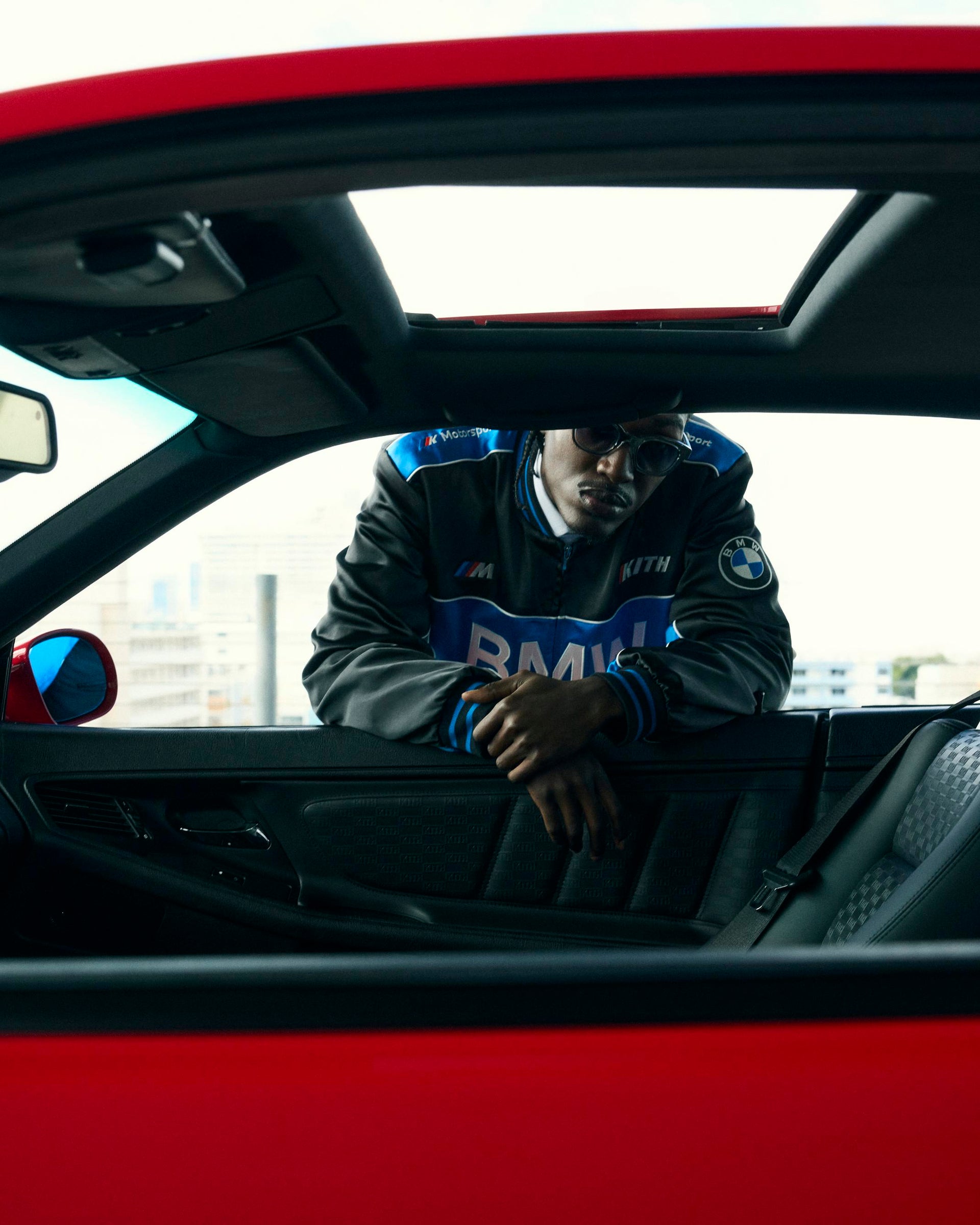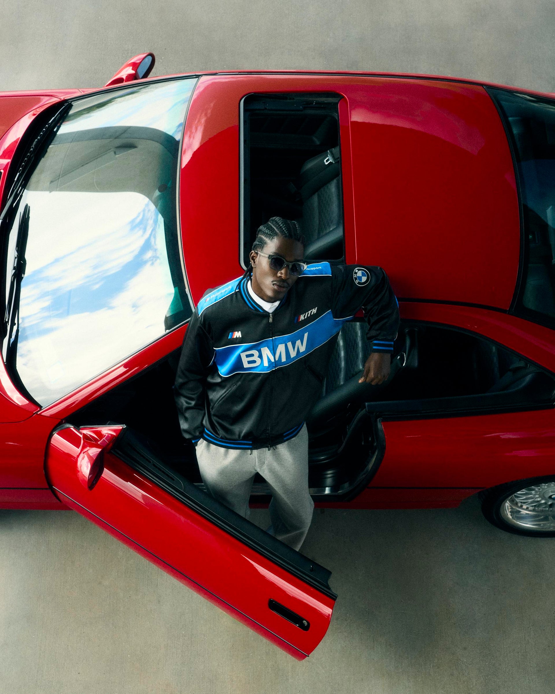 The apparel combines Kith’s staple silhouettes and custom-milled fabrics with updated interpretations of BMW’s classic iconography. Standouts include the Souvenir Moto Jacket, Kieran Coaches Jacket, Timo Windbreaker and SS Moto Jersey. Premium jackets are seen in Italian leather, double-faced wool, and silky suede executions. The apparel is rounded out with co-branded sweaters, crewnecks, hoodies, rugbys, pants and a range of vintage tees. A large selection of accessories inspired by the BMW lifestyle are also offered. The headwear offering comprises signature and collaborative styles. Signature beanies and caps are updated with co-branded Kith for BMW M1 and Roundel logos. Fitted 59FIFTY caps made in partnership with New Era complete the offering. Car-centric items include leather driving gloves & key rings as well as car plates, microfiber towels and floor mats. This accessory collection also debuts suede Kith for BMW duffle bags and a camera bag.