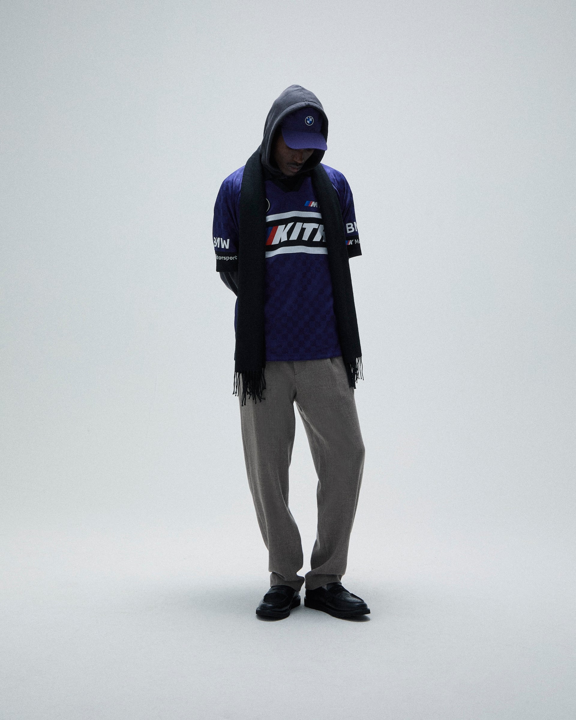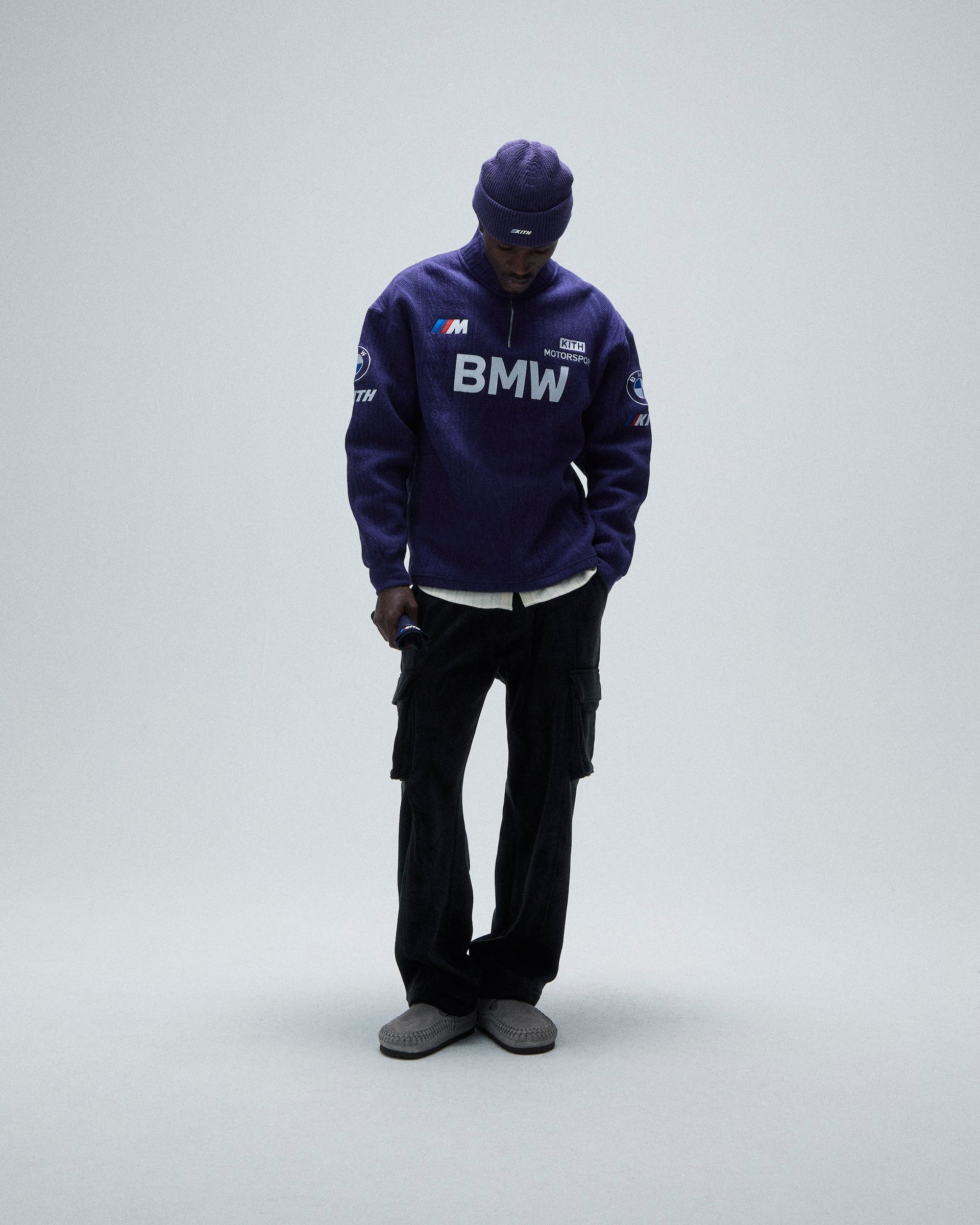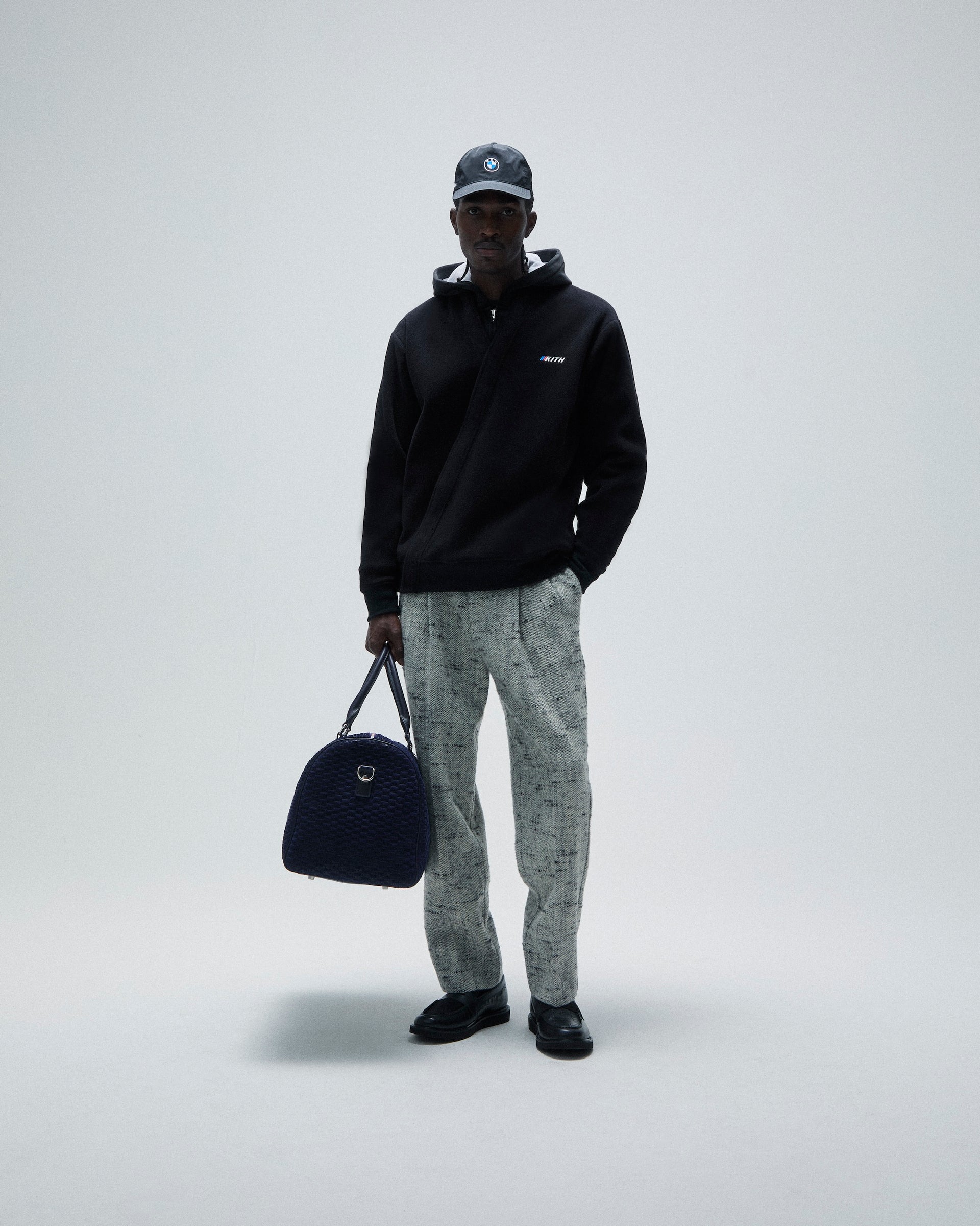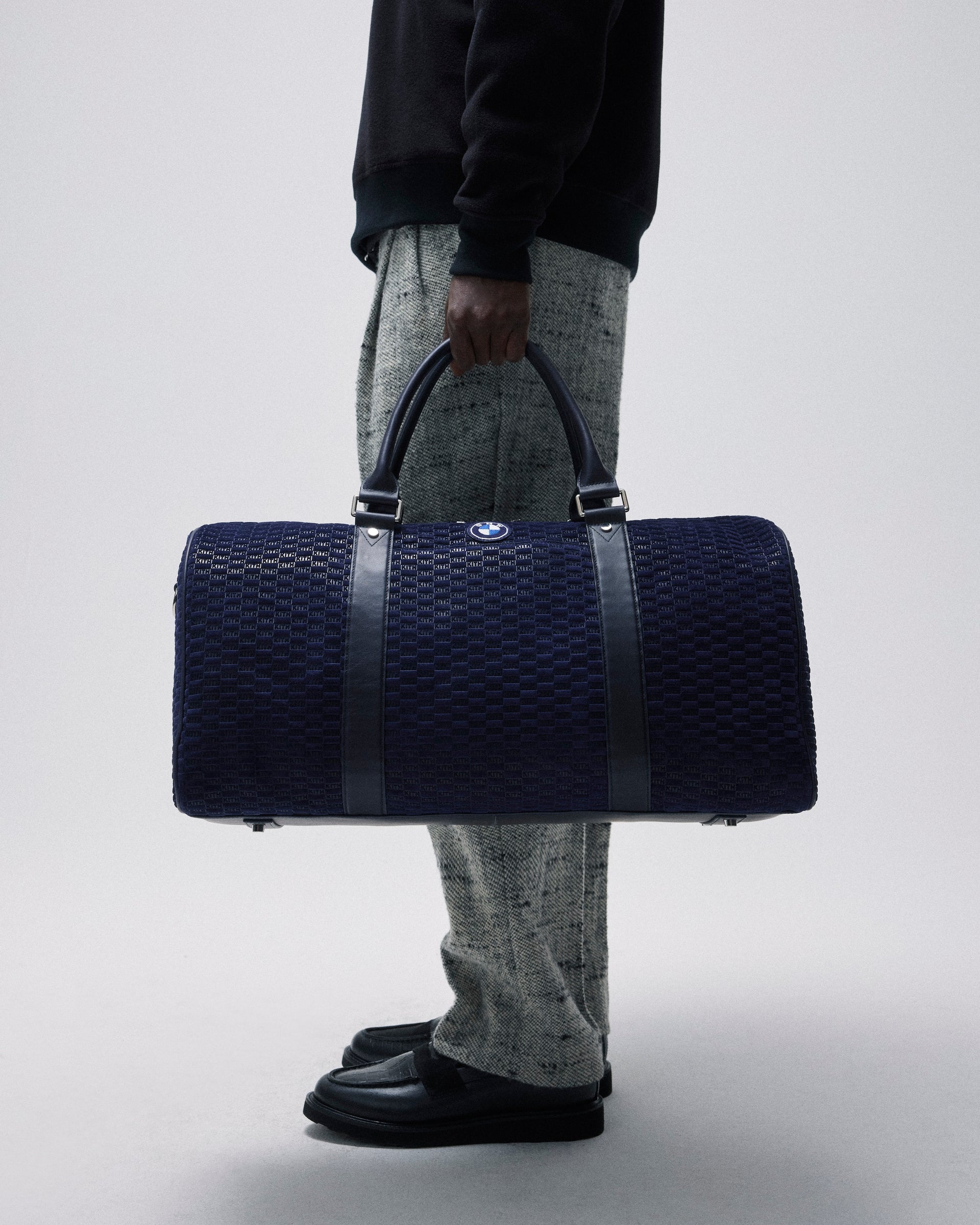 A large selection of accessories inspired by the BMW lifestyle are also offered. The headwear offering comprises signature and collaborative styles. Signature beanies and caps are updated with co-branded Kith for BMW M1 and Roundel logos. Fitted 59FIFTY caps made in partnership with New Era complete the offering. Car-centric items include leather driving gloves & key rings as well as car plates, microfiber towels and floor mats. This accessory collection also debuts suede Kith for BMW duffle bags and a camera bag.