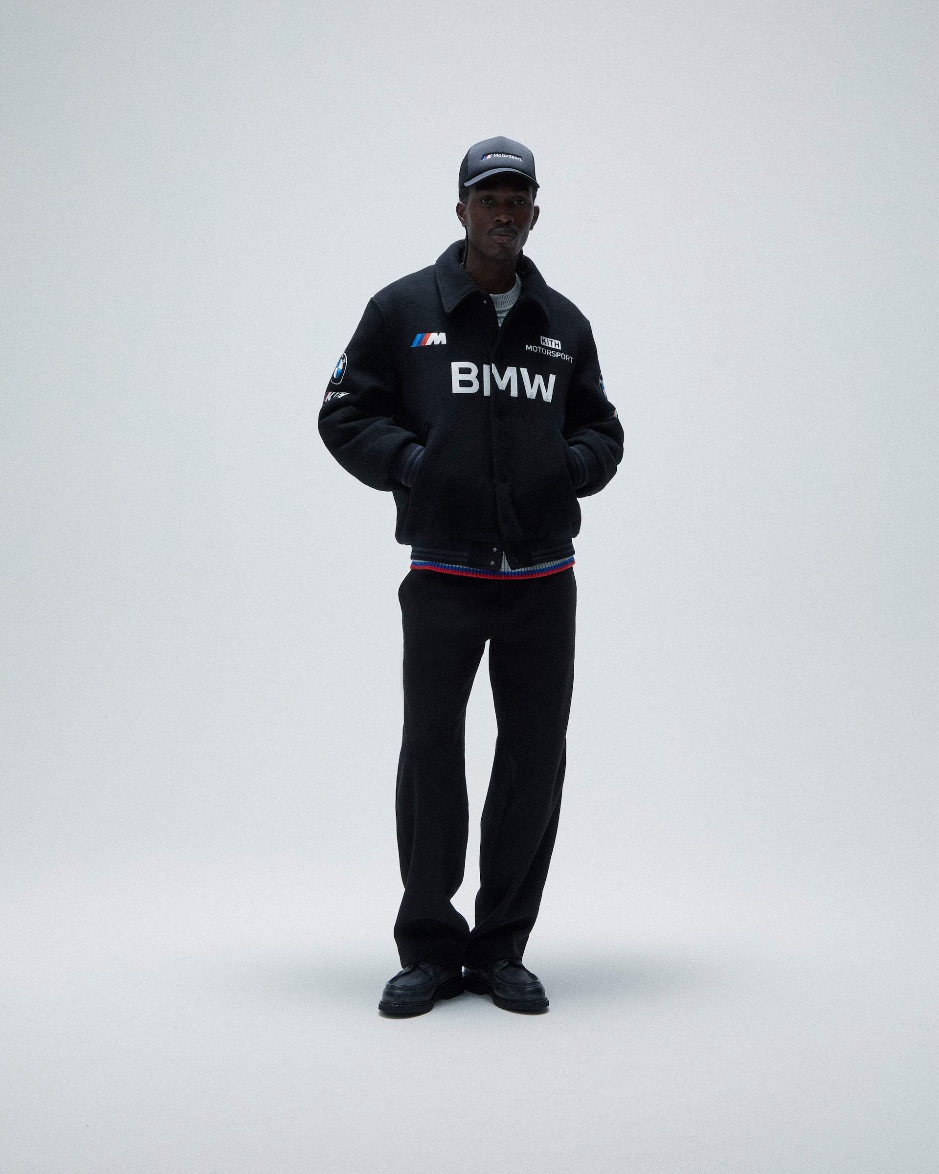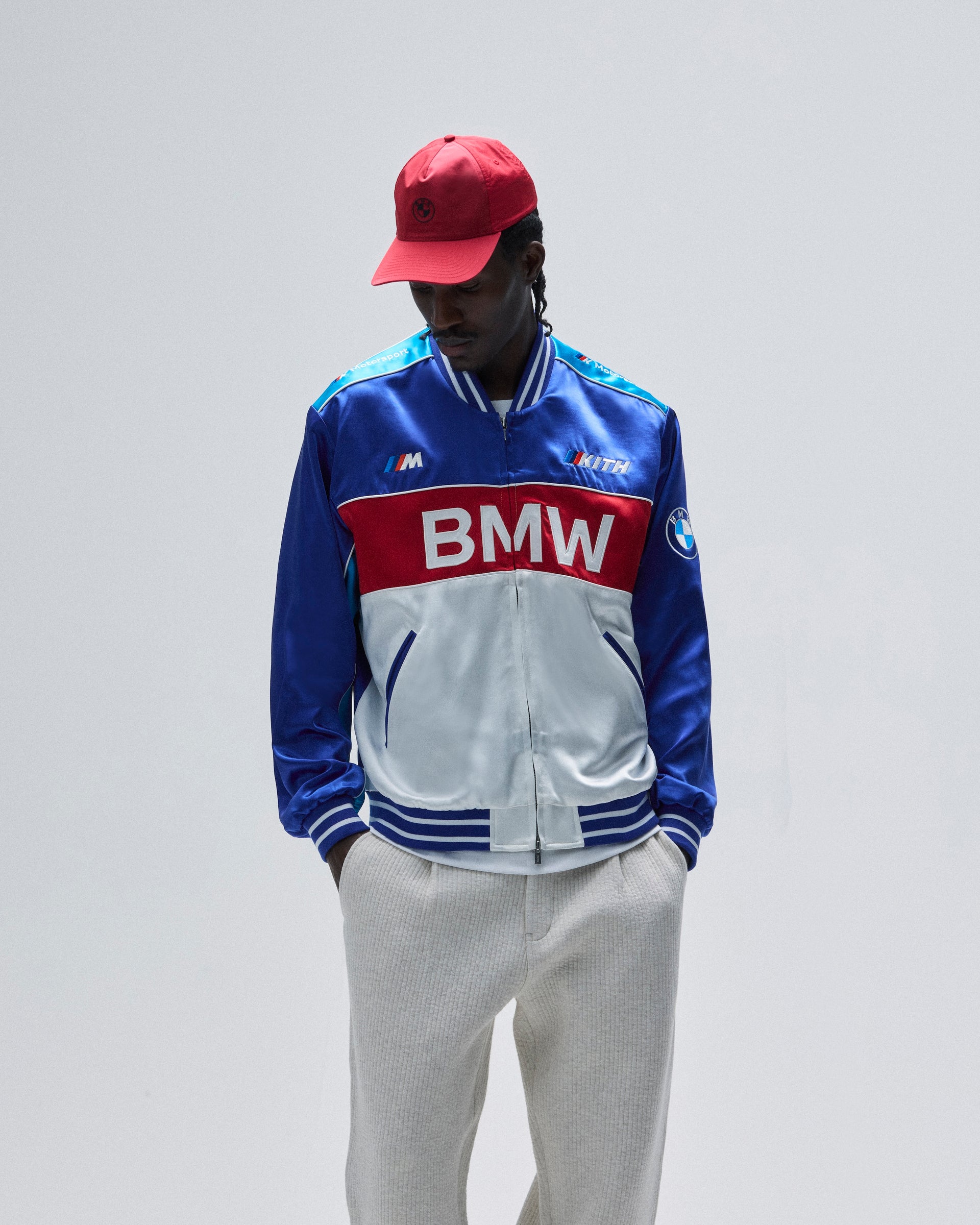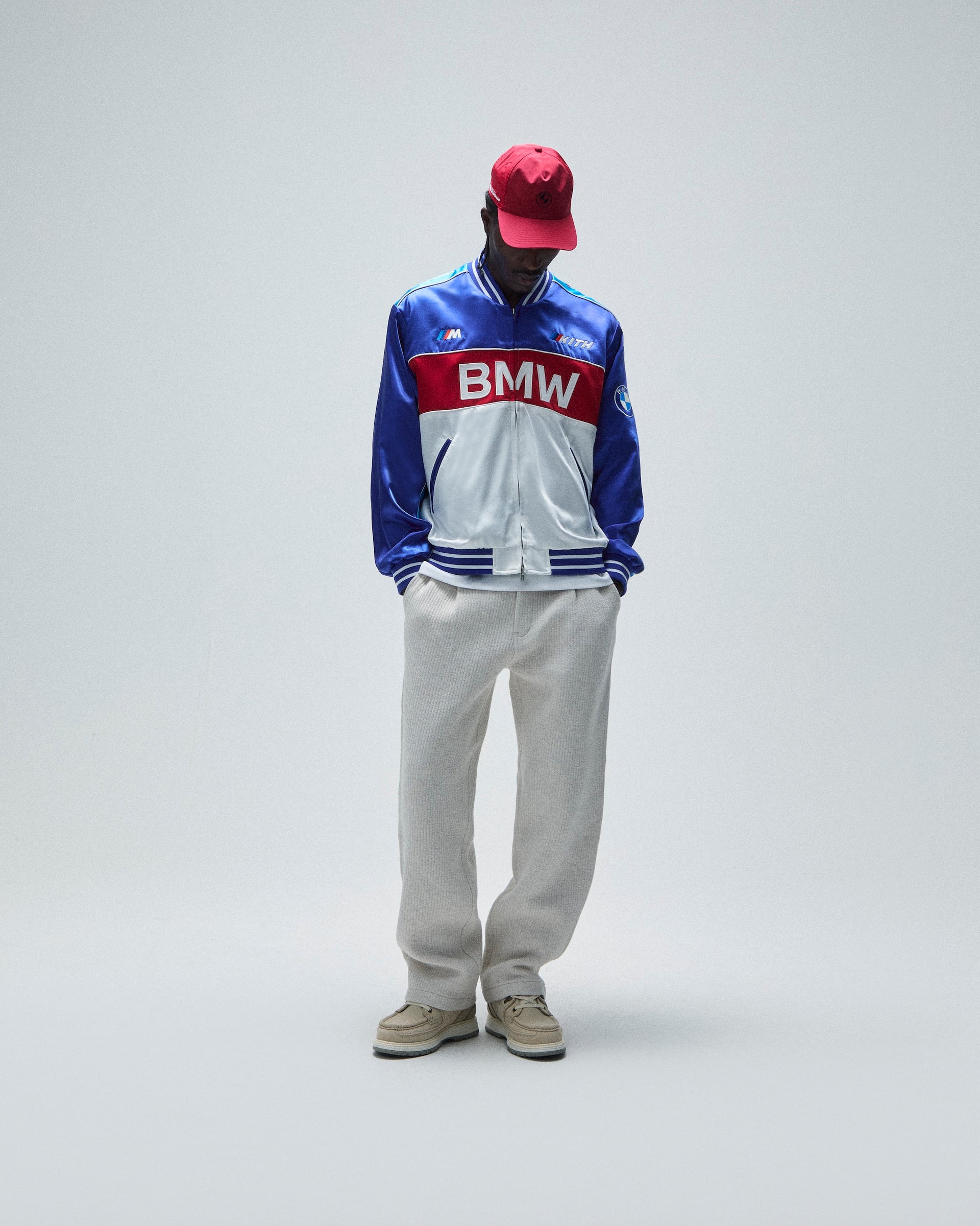 The apparel combines Kith’s staple silhouettes and custom-milled fabrics with updated interpretations of BMW’s classic iconography. Standouts include the Souvenir Moto Jacket, Kieran Coaches Jacket, Timo Windbreaker and SS Moto Jersey. Premium jackets are seen in Italian leather, double-faced wool, and silky suede executions. The apparel is rounded out with co-branded sweaters, crewnecks, hoodies, rugbys, pants and a range of vintage tees.