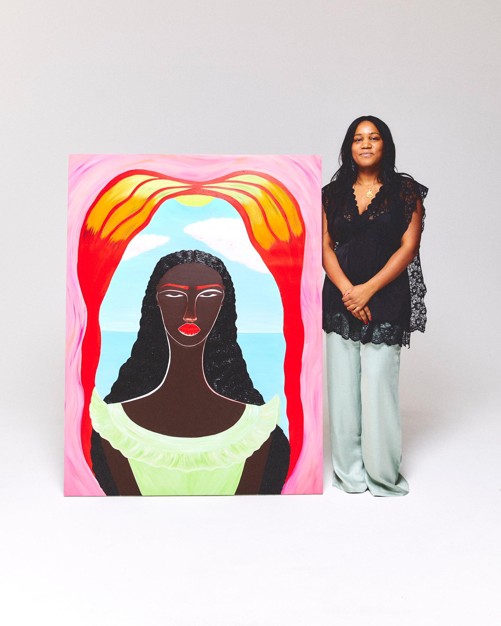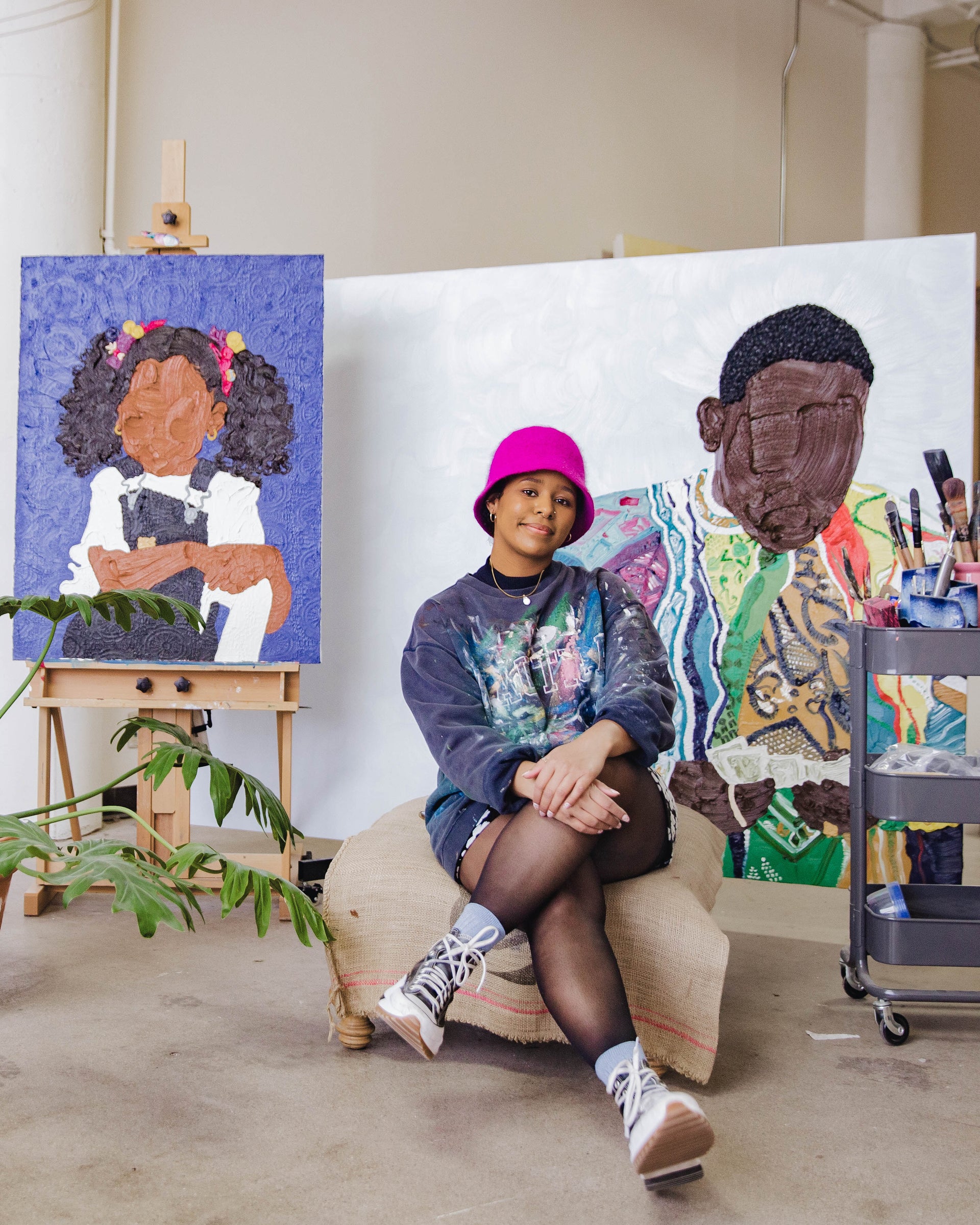 Delphine Desane is a painter and sculptor whose portraits are gorgeous depictions of Black womanhood that are rarely found in a large-scale, mainstream way. Her experiences as a woman, mother, and immigrant in the United States collectively inform her work.